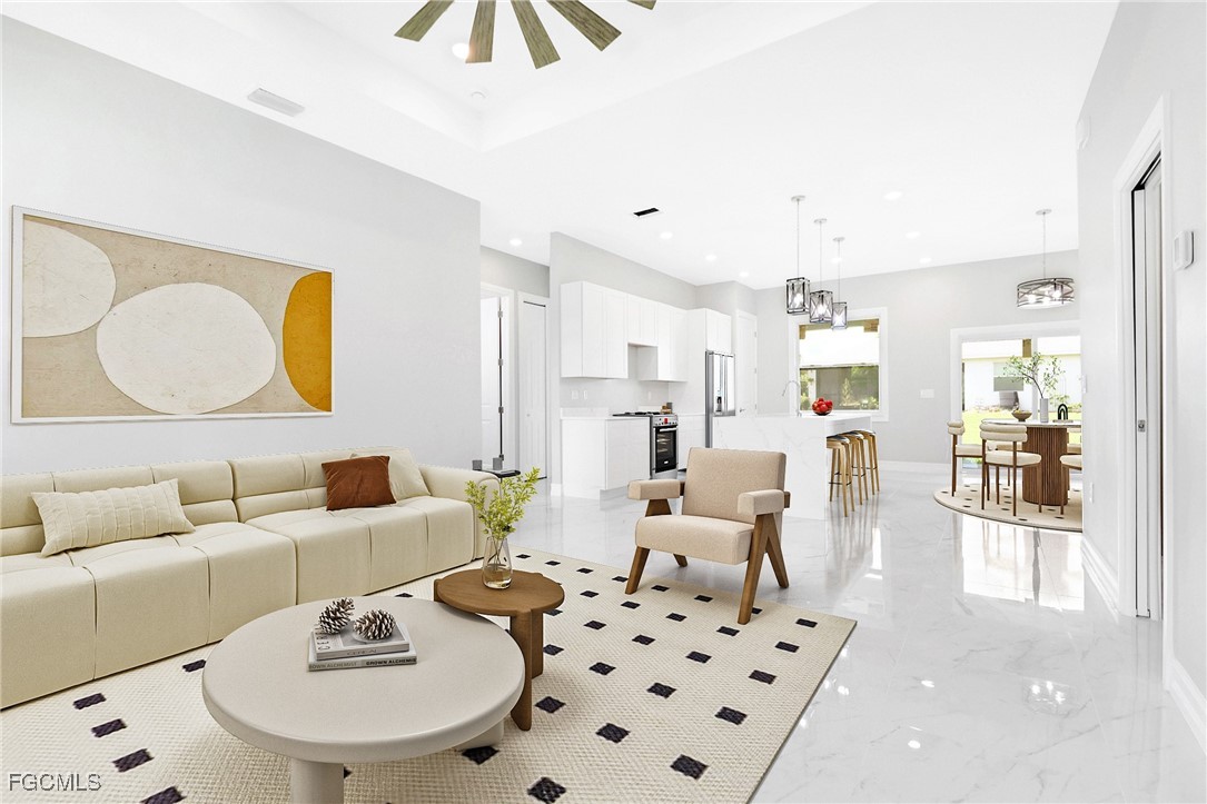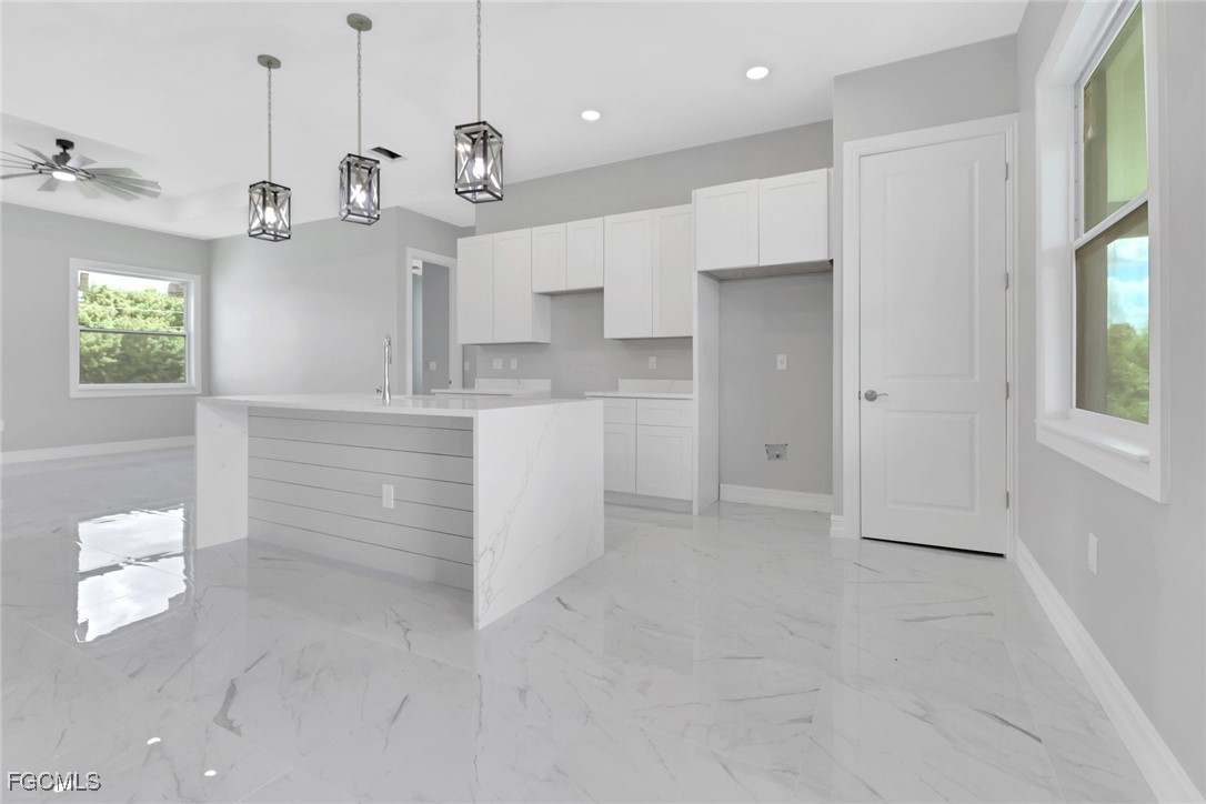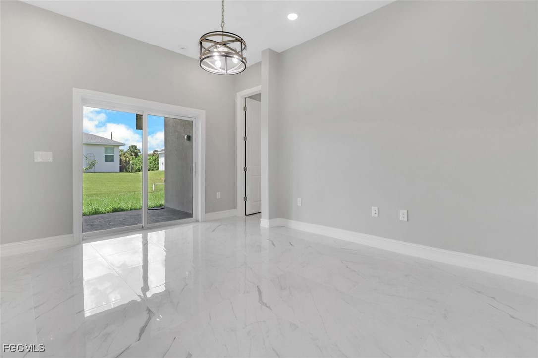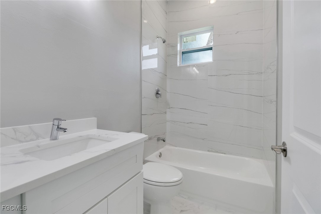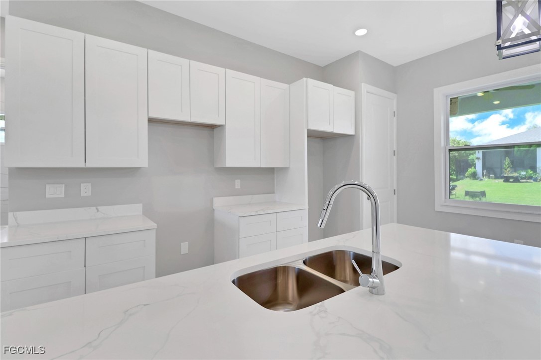 Beautiful new Construction in Fort Myers. 3-bedroom, 2-bathroom home, almost 1600 sq feet. Offers a 2 car garage, Lanai, and in-home laundry. Upgrades throughout include Hurricane Impact windows and doors, coffer ceilings, Tile floors throughout, Quartz countertops and soft close wood cabinets throughout. Kitchen has an Island with waterfall quartz sides, breakfast bar, pantry, and Stainless-Steel appliances (to be installed). Master Bedroom has 3 closets for extra storage! Including large 2 walk-ins with custom shelving. Master bathroom features 2 separate sinks and vanities, and a walk-in shower. No Flood insurance or HOA fees to worry about.