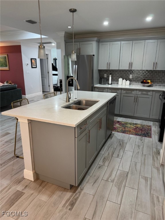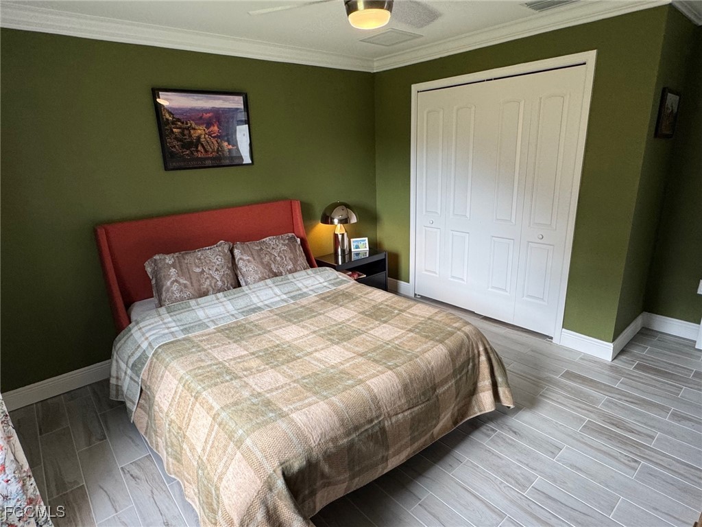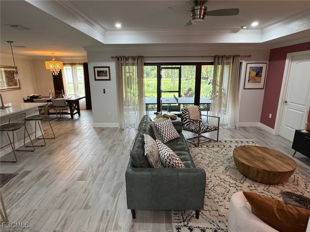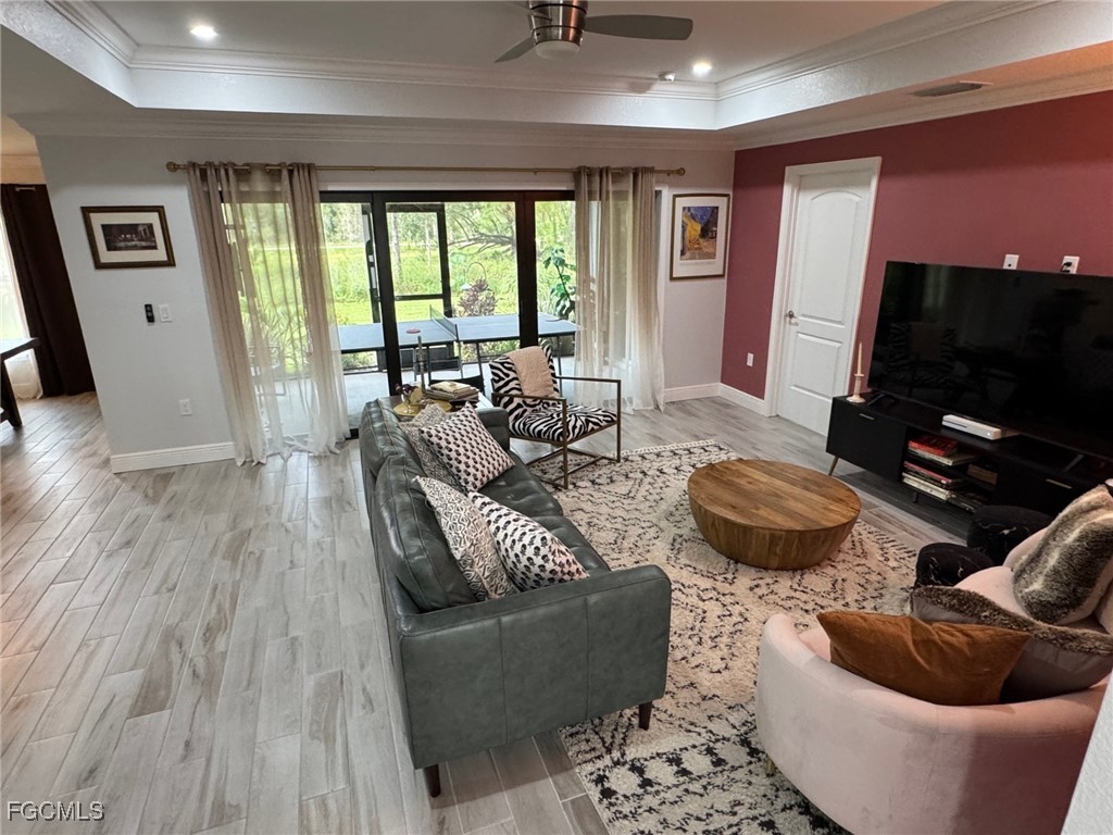 This home is priced to sell and upgraded to impress. You are going to love the wood look tile floors throughout the entire home even in the bedrooms! Every room has crown moldings, even the guest bedrooms and baths. The entry, living room, dining room and main bedroom all have recessed ceilings and crown moldings. The home has hurricane impact windows, no having to put up hurricane shutters here and the home is not in a flood zone, so no flood insurance required. The gourmet kitchen has quartz counters, stainless appliances, cabinet hardware, a nice sized pantry and tons of beautiful light grey cabinets. The main bedroom suite has a luxury bath with separate free-standing tub, frameless shower enclosure, beautiful accent tiles in the large shower, double sinks, lots of counter space and two nice sized closets. The guest bedrooms are split from the main suite and are large with a bath between them to share. The home is located on a quiet street and backs up to a vacant lot that's partially wooded. There is plenty of room for a pool or outdoor entertaining. The covered lanai is large and screened in as well. Come see this amazing home, you'll want to call it yours.