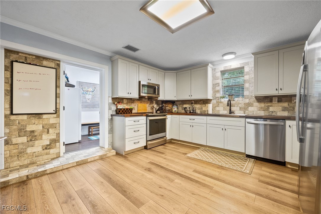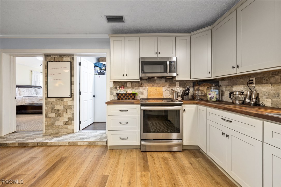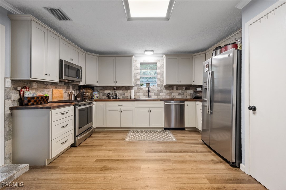 Seller Is Motivated and offering a home warranty! Welcome to this beautifully updated 3-bedroom, 2-bath home, perfectly situated on 1.17 acres of peaceful living. Step inside to find a spacious open layout with a stylishly renovated kitchen featuring soft-close cabinetry, butcher block countertops, newer appliances, and a convenient in-home laundry with washer and dryer included. The oversized main bedroom offers a true retreat with a large walk-in closet and a modern en-suite bath. Additional highlights include generously sized guest bedrooms, updated bathrooms, a new electric panel, 2024 A/C, newer water heater, and durable metal roof for peace of mind. Outside, enjoy ample space for hobbies and storage with a 12x20 building plus an additional 10x12 shed. This move-in-ready home blends comfort, updates, and space—ready for you to make it your own!