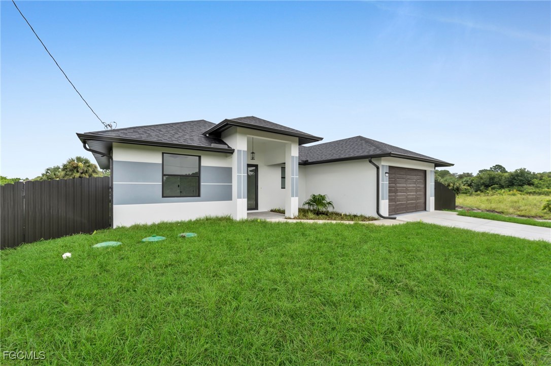 Brand-new 2025 construction in Lehigh Acres, perfectly located near Highway 82 for easy access to shopping, dining, and commuting. This stunning home is move-in ready and sits on a fully fenced lot, providing privacy and security. Featuring modern finishes, open-concept living spaces, and a spacious layout perfect for families or entertaining.