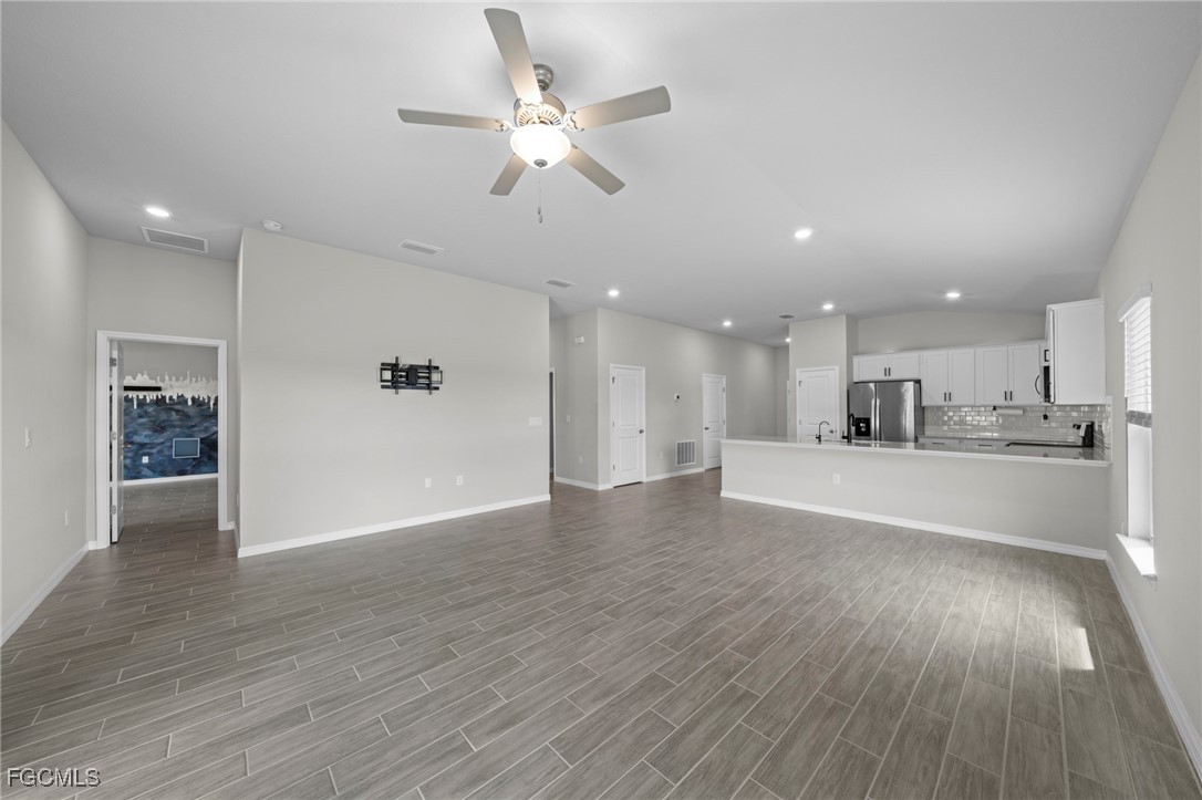 2022-built FGBC Green Certified home on a triple lot! Featuring 4 bedrooms, 2 bathrooms, and 3 car garage. There's room for everyone, or you can easily use a bedroom as a home office, playroom, or guest suite. The fenced-in oversized lot with gates is ideal for boat storage, a future pool, or transforming the large yard into your outdoor oasis! At the heart of the home is the kitchen featuring upgraded 36” painted cabinets, elegant quartz countertops, and stainless-steel appliances. The expansive counter space and bar top seating for up to 4-5 people! The kitchen flows seamlessly into the great room, where soaring 10-foot ceilings and abundant natural light create an inviting atmosphere. The master suite serves as a private retreat with a spacious walk-in closet and a luxurious master bathroom complete with a walk-in shower and dual vanities. Wood-look ceramic plank flooring. Tile throughout - No Carpet! Step outside to a covered lanai overlooking the oversized, fully fenced backyard with dual entry gates for easy access and added convenience. This private outdoor space is perfect for relaxing, entertaining, or planning your future pool. Premium upgrades include a whole-house water filtration system, a generator transfer switch (great for when there is a power outage!), hurricane-rated screens and fabric panels, rain gutters, an irrigation system, and a utility room with extra storage and laundry space. The 3 garage offers plenty of room for vehicles, boats, or storage. With all the upgrades included, this home is in like-new condition but a much better value - think of the tens of thousands you would have to spend to get all that comes with this house! Located in one of Cape Coral’s fastest-growing areas, this home is minutes from exciting future developments. The upcoming Cape Coral Grove, a 131-acre mixed-use town center, will feature upscale retail, dining, hotels, public parks, and community events projected to generate over $1.3 billion in economic impact. The anticipated Seven Islands Project will bring restaurants, boutique shops, marinas, green spaces, and possibly even a beach area, creating a premier waterfront destination. Also The Cove at 47th, the Bimini Basin Project, and Slipaway Marina, offering waterfront dining, boutique shopping, boat slips, nightlife, and entertainment. The reimagined Cape Coral Yacht Club. This location also provides quick access to shopping, dining, top-rated schools, and parks. A quick drive takes you to Fort Myers, pristine beaches, and Golfers will be near Palmetto Pines Country Club & Coral Oaks Golf Course.