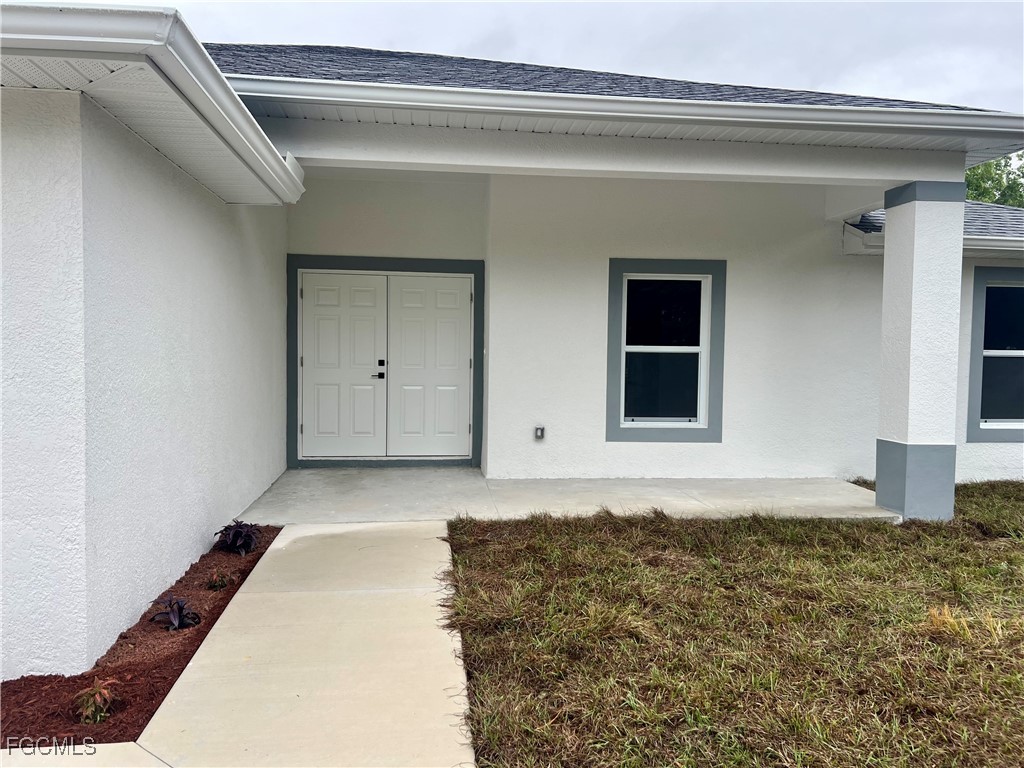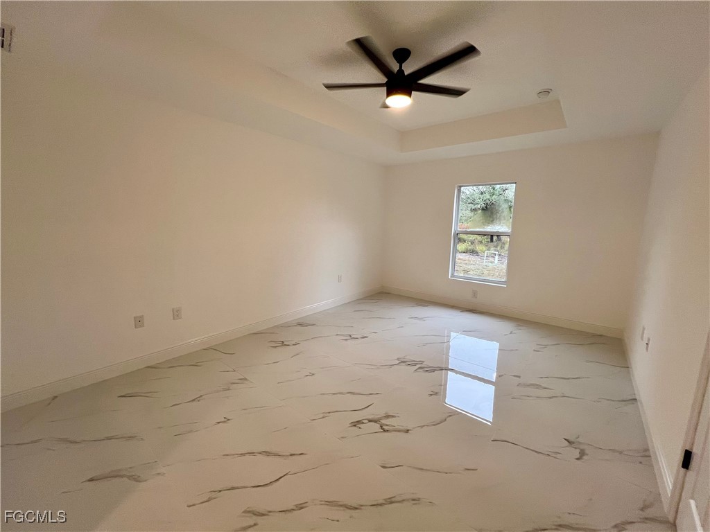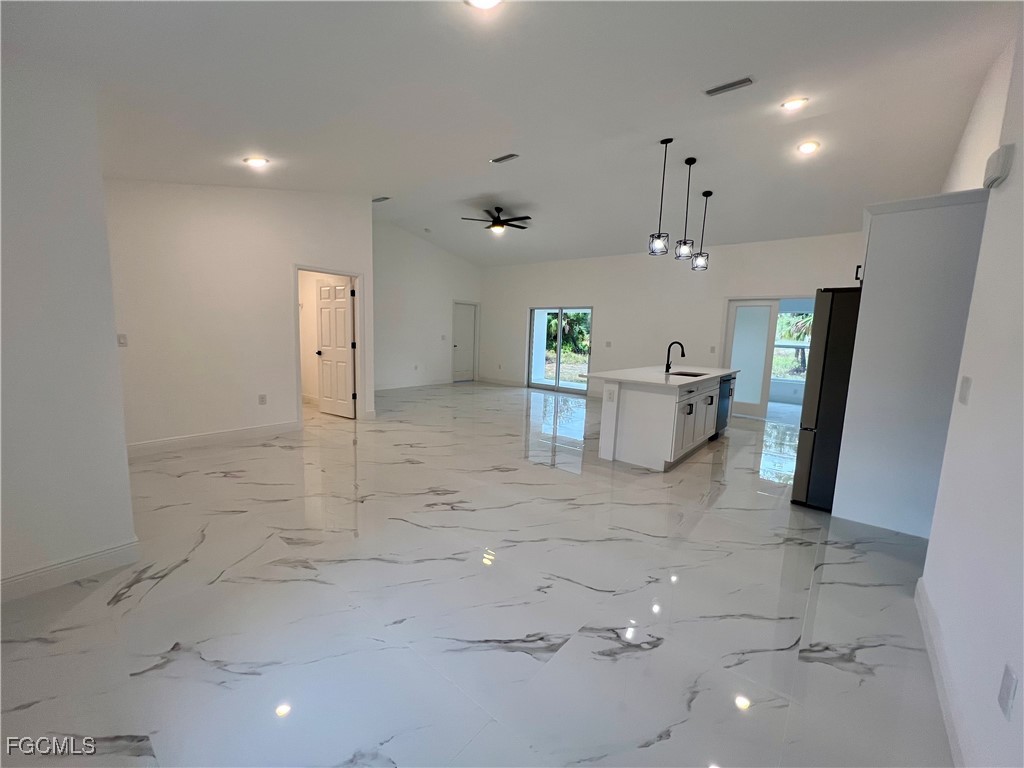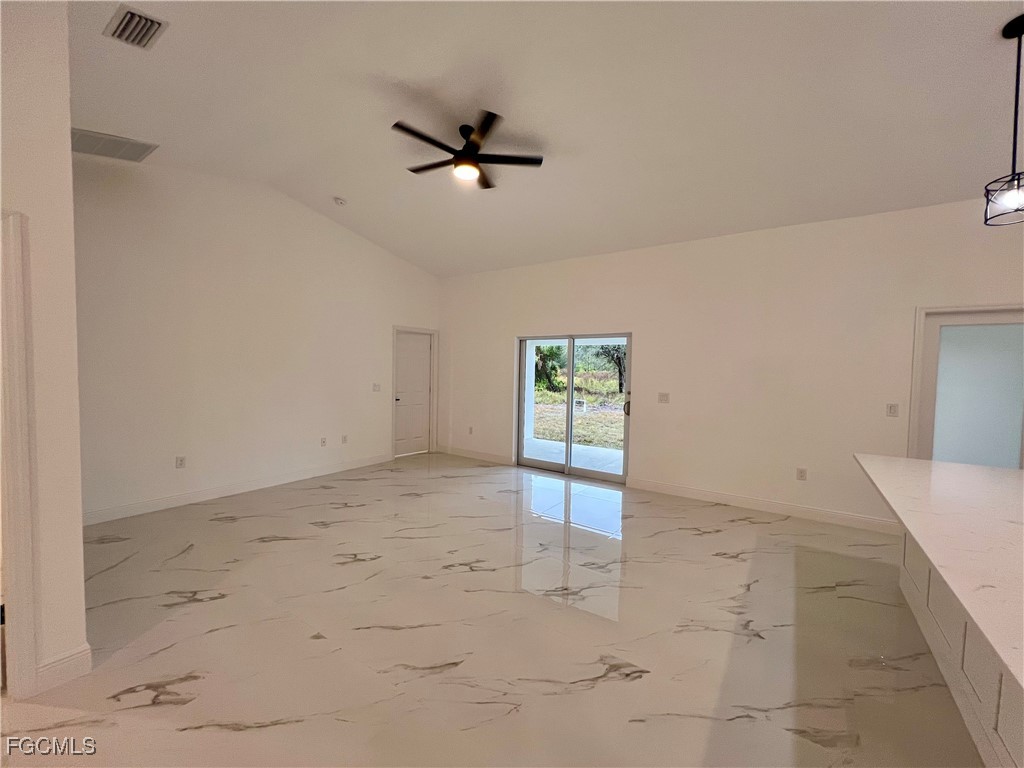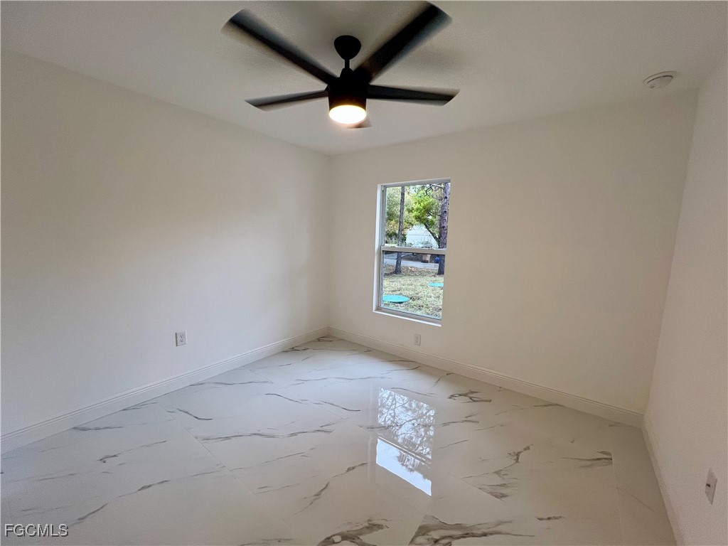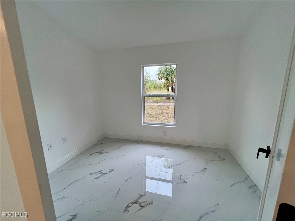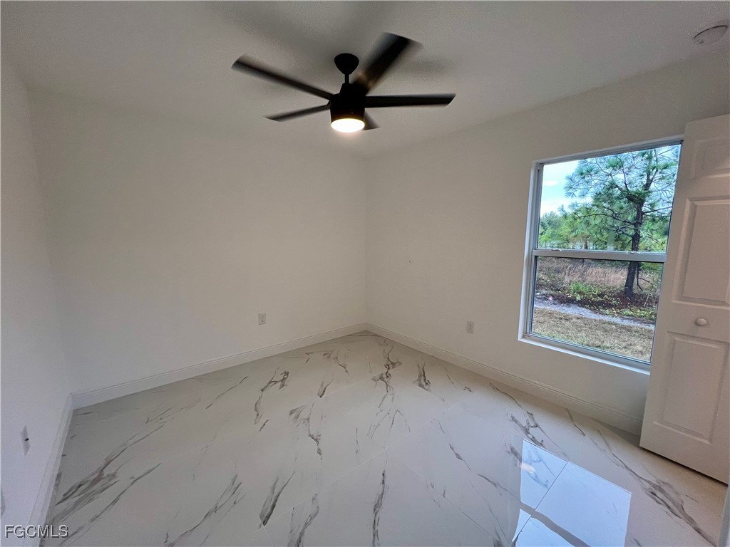 Brand New Home located in Northeast Lehigh on a HALF ACRE LOT at the end of a QUIET DEAD END STREET, MOVE IN READY 3 BEDROOM 2 BATH WITH A DEN with a closet that may be used as 4TH BEDROOM. C.O. HAS BEEN ISSUED, double door entry to the den for privacy, 32 X 32 POLISHED PORCELAIN TILE FLOORS THROUGHOUT THE ENTIRE HOME with 5 inch baseboards, impact resistant windows, covered front porch leads to large great room, high ceilings throughout with tray ceilings in the living room and master bedroom, shaker cabinets with soft close doors and drawers, pendant lighting over breakfast bar, QUARTZ TOPS in kitchen and baths, stainless steel appliance package, pantry, large dining area off of the kitchen, spacious master bedroom with walk in closet, private bath with dual sinks and tiled walk in shower, indoor laundry room, covered porch in rear overlooking the HALF ACRE backyard with plenty of privacy, double garage with auto opener, extra long driveway with plenty of parking, excellent location just minutes to SR 80, I-75 and Ft Myers.
