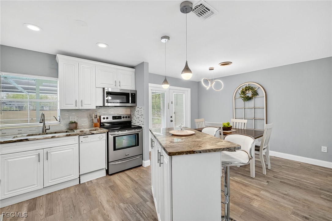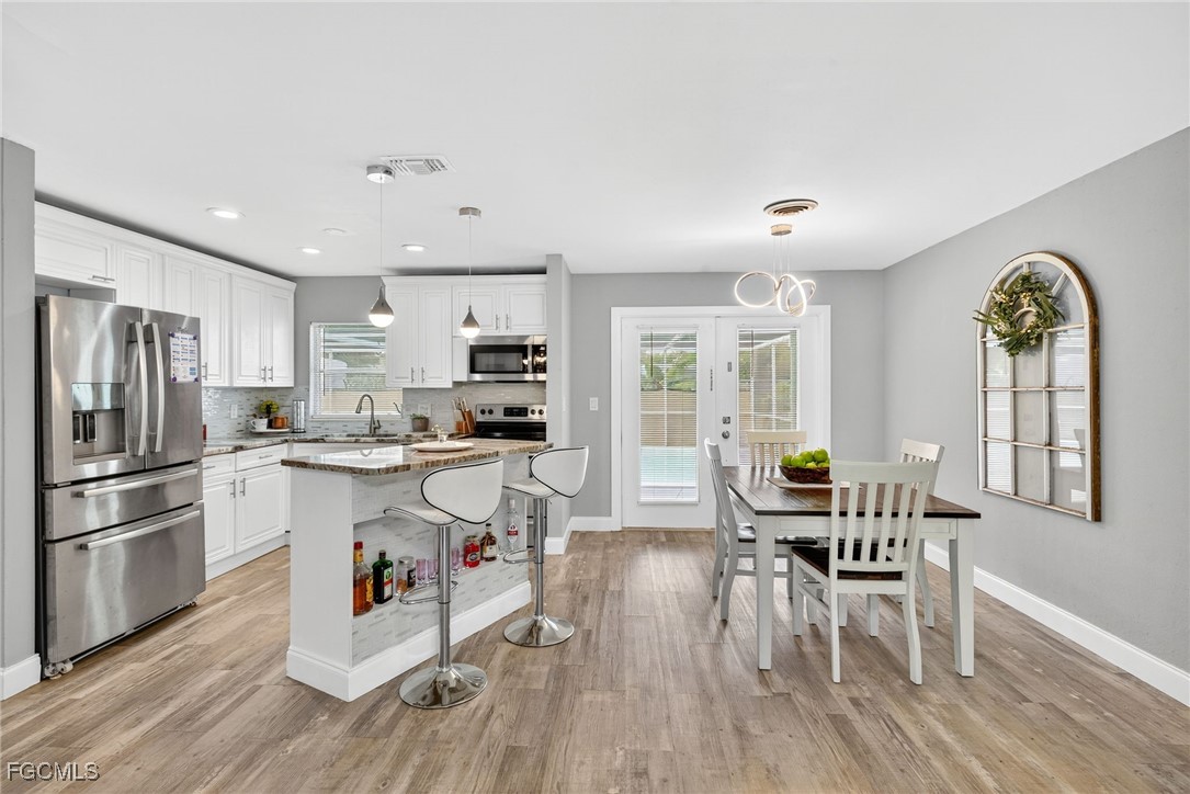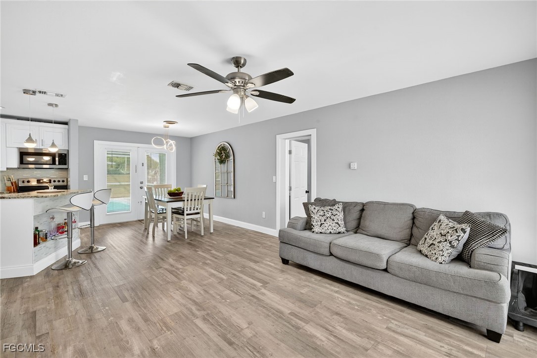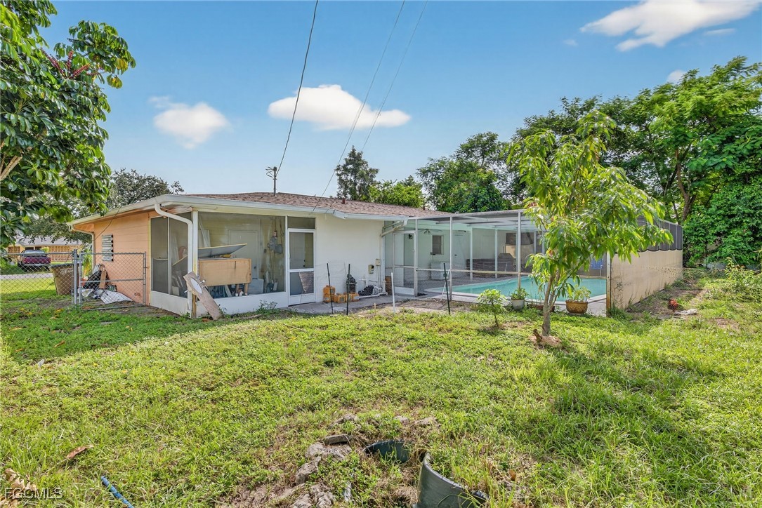 Welcome to this charming and fully renovated home in Lehigh Acres! County records reflect 3 bedrooms and 1 bath, but this amazing property has been updated to feature a 4th bedroom, and a 2nd bathroom for added convenience. Updates include a contemporary kitchen, upgraded bathrooms with quality finishes, new flooring throughout, a new AC system (2020), and a roof replaced (2017). The drain pipes were replaced with 4 inch PVC in 2021. The backyard is fully fenced and screened, perfect for family gatherings, pets and relaxing by the pool. Conveniently located near schools, shopping and dining this home offers comfort and modern upgrades in a quiet and well connected neighborhood.