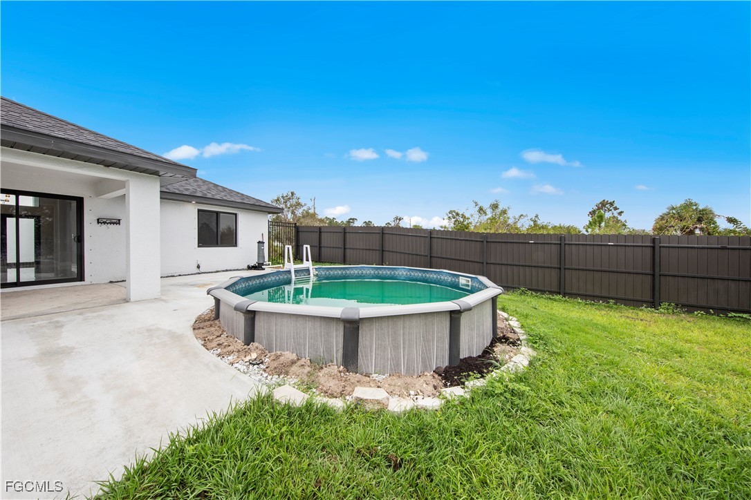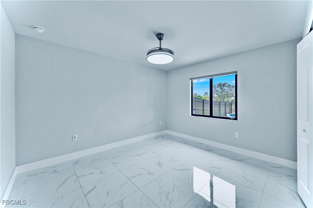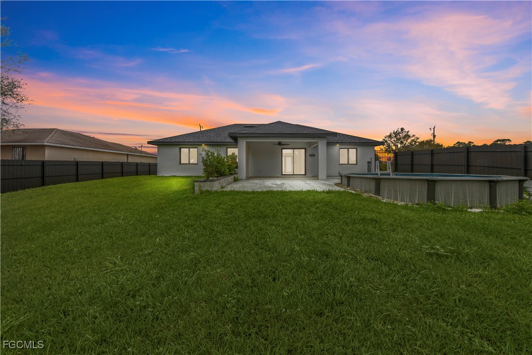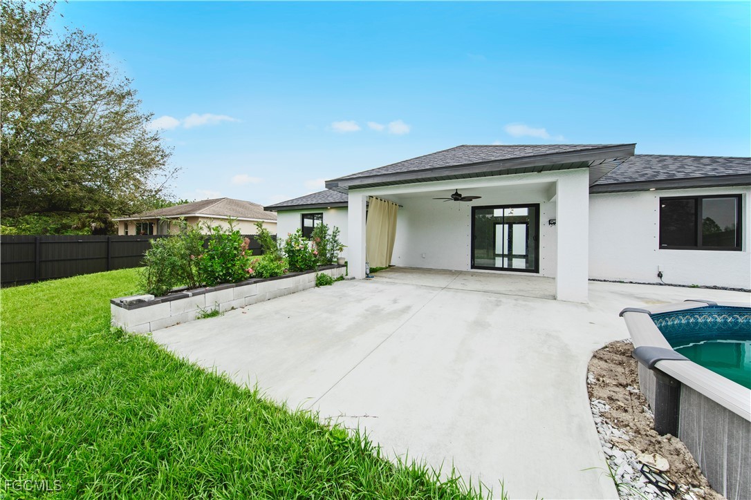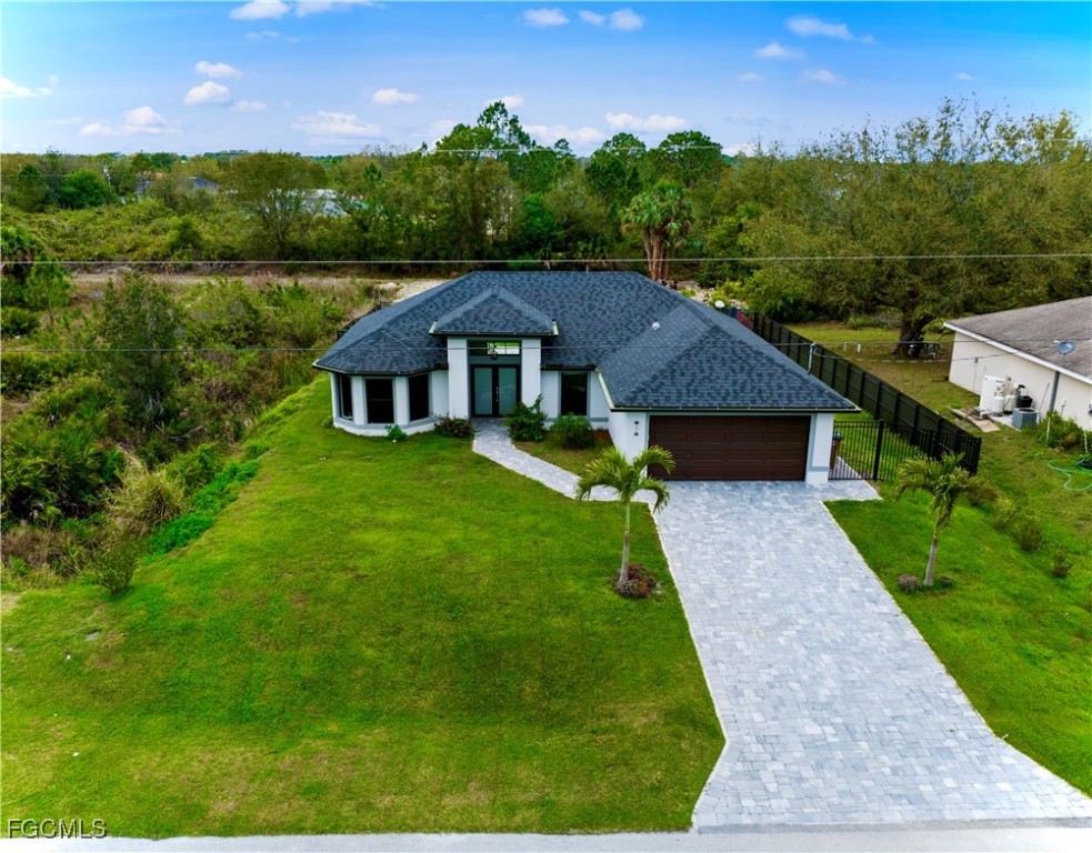 Welcome home to this MAGNIFICENT (2024) BUILT 3/2 + Den 6 ft. FENCED property with an extended patio plus decorative retaining wall & a POOL great for entertaining. This open floor plan spotlights an enticing OVERSIZED porcelain tile throughout, gorgeous rainfall QUARTZ countertops & backsplash with an awarding breakfast bar, desirable European high-gloss cabinetry with generous floating vanities, and an admirable frameless glass tiled shower with Rainfall & jetted shower system. The GRAND elevation with cathedral ceilings highlights IMPACT & refreshing BAY WINDOWS, flattering glass French doors, dual closets, premium STAINLESS STEEL appliances, and Upgraded fixtures & hardware. It has been nicely landscaped & also features, dual sinks & closets, under cabinet lighting, appealing illuminated mirrors, Recessed & pendant lighting, EPOXY garage flooring, window treatments, desirable built-in bath niches, an irrigation system, and the laundry room is under air with storage cabinets. This peaceful property is nestled away on a quiet paved street backed to a canal just minutes to major amenities & a quick commute to Fort Myers. Schedule your showing today! **This property is subject to a short sale.**