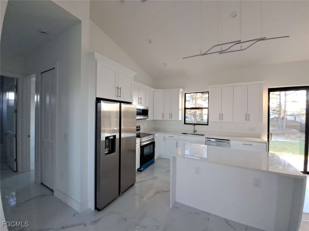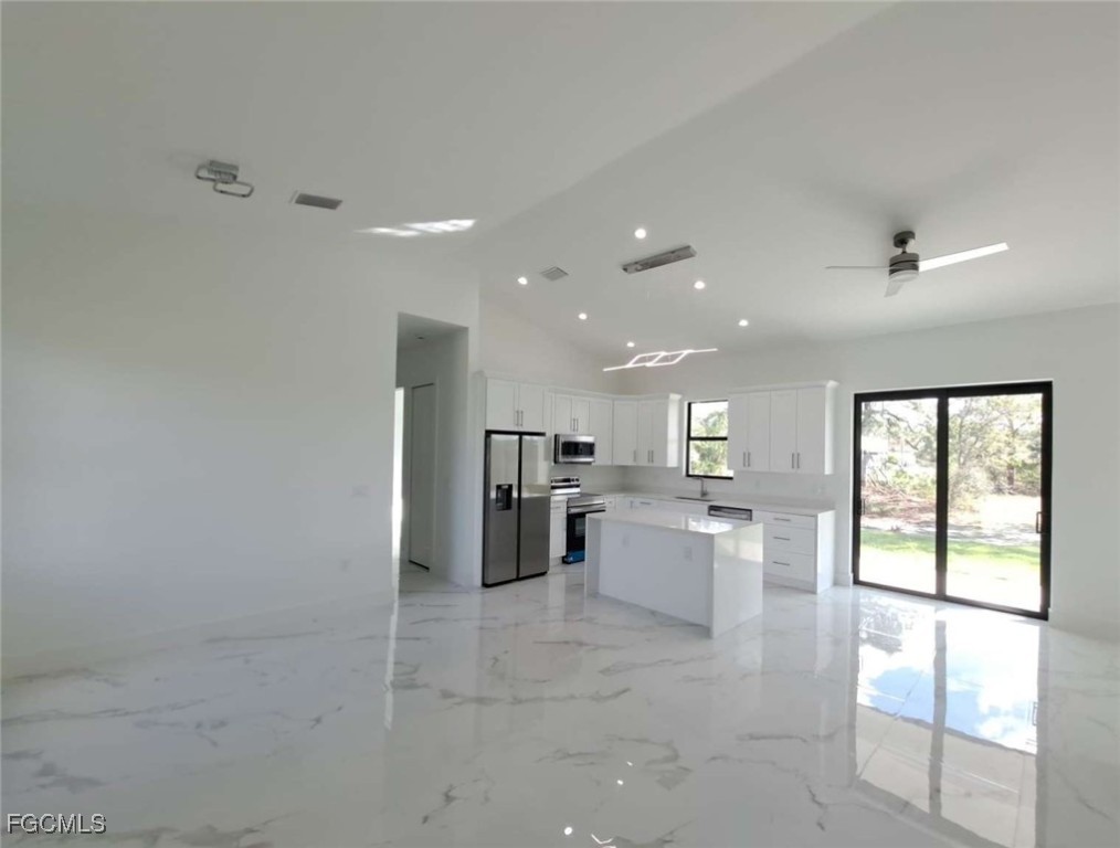 BRAND NEW HOME – MOVE-IN READY! In Lehigh Acres FL, Excellent home to live in a great and quiet area, near schools, commercial areas, offering added privacy and tranquility. With 3 large bedrooms and big closet, plus open DEN, 2 bathrooms, dining room, living room, and 2-car garage. This home features 9.5” ceilings, the kitchen boasts Quartz countertops, a breakfast bar, pantry, stainless steel appliances, under-cabinet led lighting, pantry coffer ceilings, soft 42” close cabinets. Bathrooms Quartz countertops complete with shower and huge freestanding soaking tub, glass doors in shower, great walk-in closets, ceiling fans in every bedroom and Great Room. Built with quality materials, good finishes and impact windows and doors. Enjoy the outdoor covered patio with no flood zone. This home was built with quality materials, meeting county and city requirements for energy calculation (efficient glass), painted with primer and finish, among other materials, and custom-built. It is being sold directly from the owner, but your real estate person is welcome to buy. Sell price according with the market. Schedule and welcome your visit.