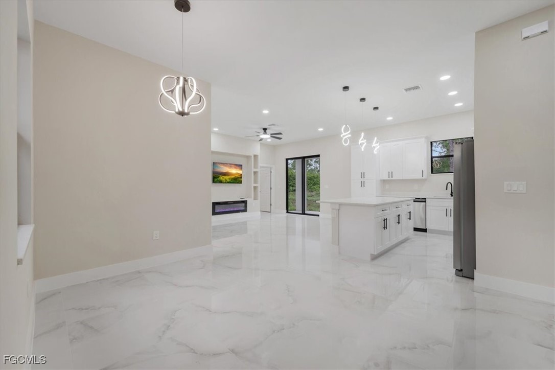 The open, airy layout makes daily living effortless, while the two-car garage with side entry adds both practicality and charm. Inside, relax by the modern digital fireplace or enjoy the already-installed 60-inch TV—perfect for game days and movie nights.