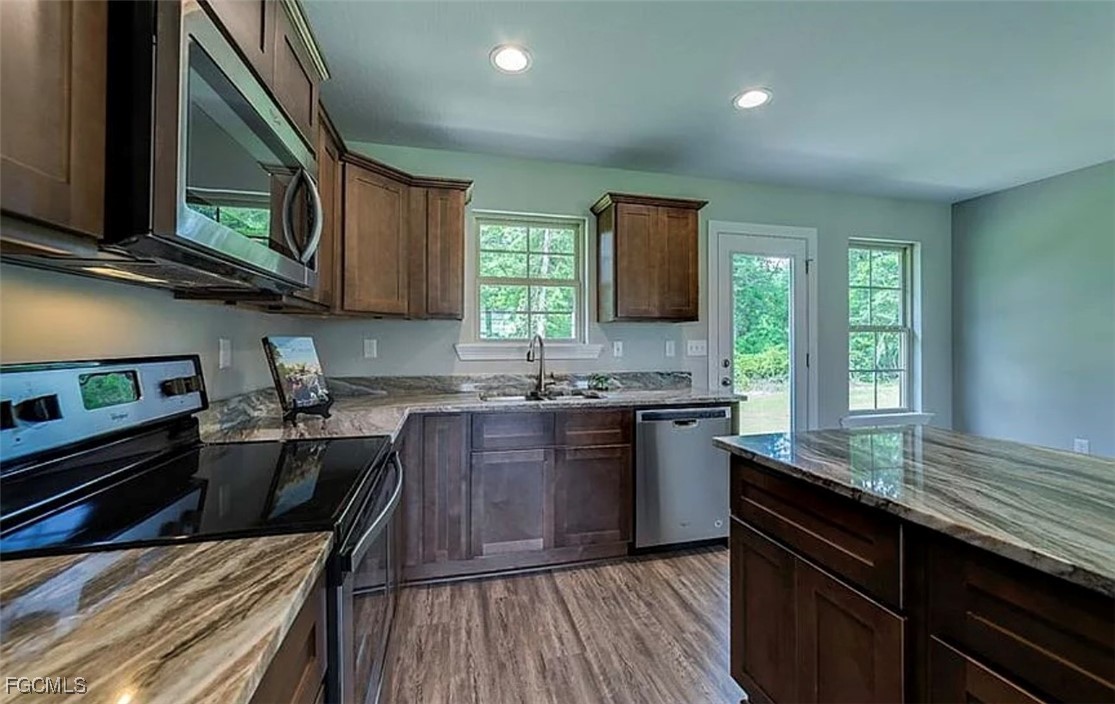 New construction metal frame home with hurricane impact windows and doors. Features 3 bedrooms, 2 bathrooms, and 2-car garage on a .24 acre lot. High and dry, no flood insurance required. Upgrades include wood cabinets with soft-close drawers, granite counters, vinyl plank flooring with carpet in bedrooms, and tankless water heater. GE stainless steel appliance package included. Washer/dryer hookup and room for pool.