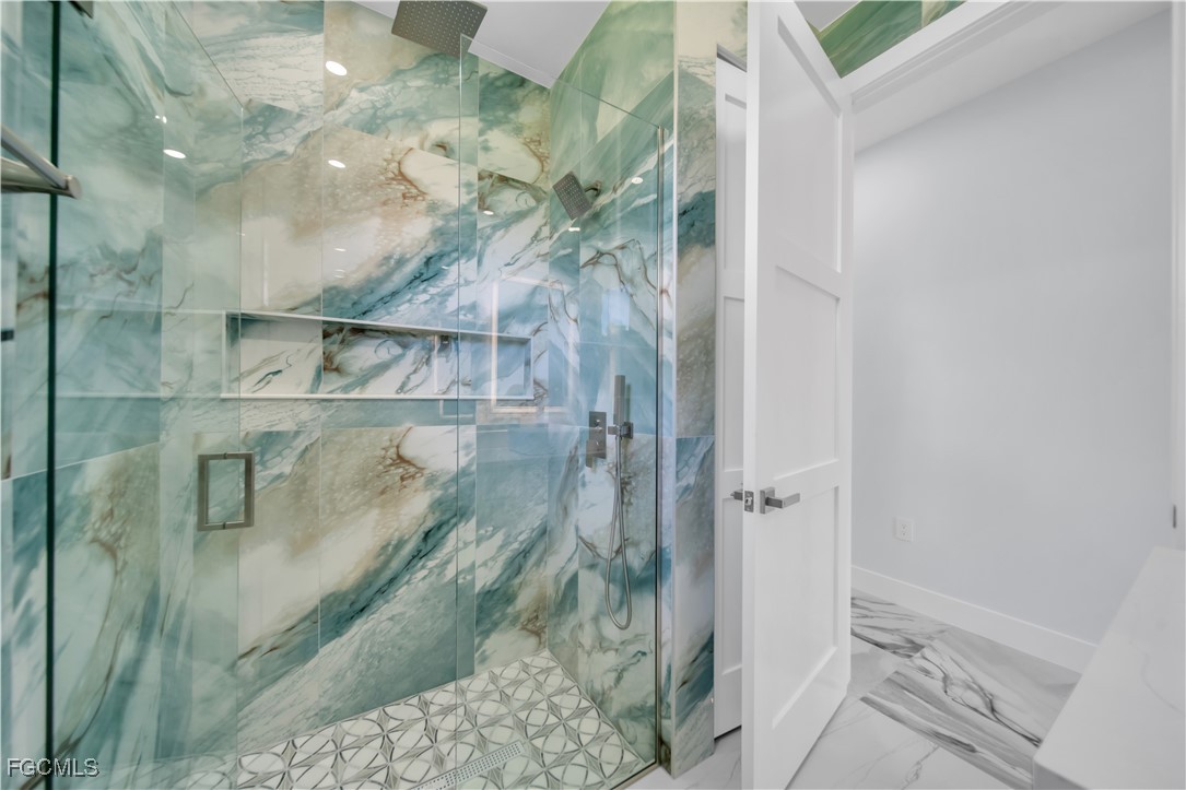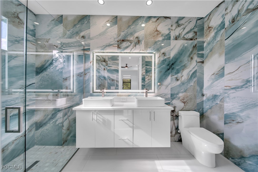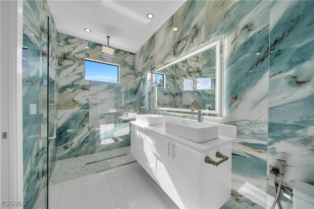 Indulge in a one-of-a-kind luxury bathroom, showcasing Italian custom tiles from floor to ceiling. Every detail has been thoughtfully designed to create a spa-inspired retreat that combines sophistication, style, and comfort.