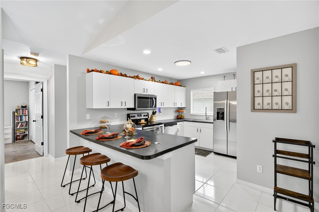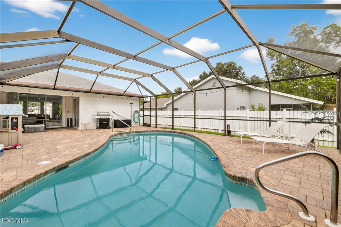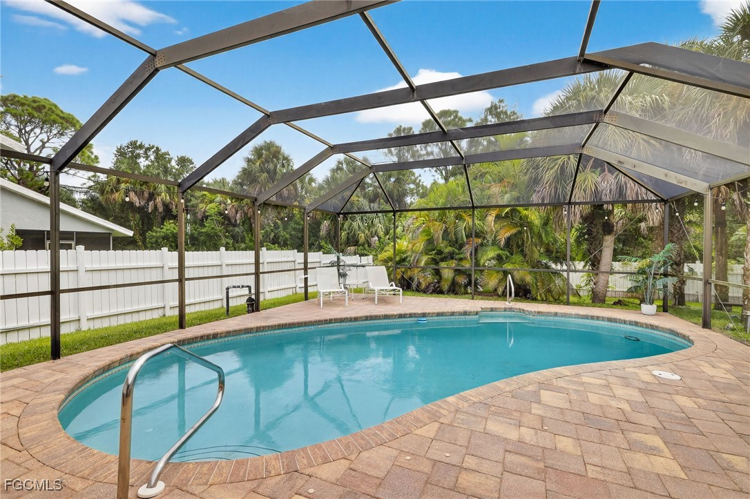 Updated Pool Home on Nearly ¼ Acre – No HOA! This beautifully updated 3 bedroom, 2 bath pool home in Bayshore Estates checks every box for today’s family or first-time buyer, combining upgrades, space, and peace of mind with the rare reassurance of zero hurricane damage through the last three storms. Set on nearly a ¼-acre lot with lush tropical palms, preserve-like privacy, and a family-friendly neighborhood feel, the home offers 1,564 sq. ft. of living spacewith soaring ceilings, an open flow, and a split-bedroom design that makes everyday living both comfortable and functional. The huge primary suite is a true retreat with his-and-hers closets, private entry to the pool, and a fully remodeled bathroom, while the second bathroom is also beautifully updated to match. The kitchen and living areas are equally impressive with brand-new stainless steel appliances, a newer washer/dryer, and new flooring in all bedrooms. Major systems have been taken care of so you can move in without worry: all-new plumbing, new electric panel, and a 2024 water heater provide lasting value and peace of mind. Step outside and the Florida lifestyle comes alive with your own private pool, expansive screened lanai, and a backyard perfect for entertaining, pets, or play in a mostly fenced yard with a 14x8 storage shed for tools, hobbies, or toys. Best of all, there’s no HOA, so you have the freedom to truly enjoy your property your way. And while the setting feels private, you’re just 1 minute from Publix, 5 minutes to the brand-new Aldi’s, and close to gas stations, parks, and walking trails. Commuting is easy with quick access to both US-41 and I-75, putting you just 12 minutes from Downtown Fort Myers as well 25 minutes from both RSW Airport or Punta Gorda Airport. If you’ve been searching for the perfect blend of updates, privacy, family-friendly living, and a great location with proven storm safety, this move-in ready home is the one—schedule your showing today before this hidden gem is gone!