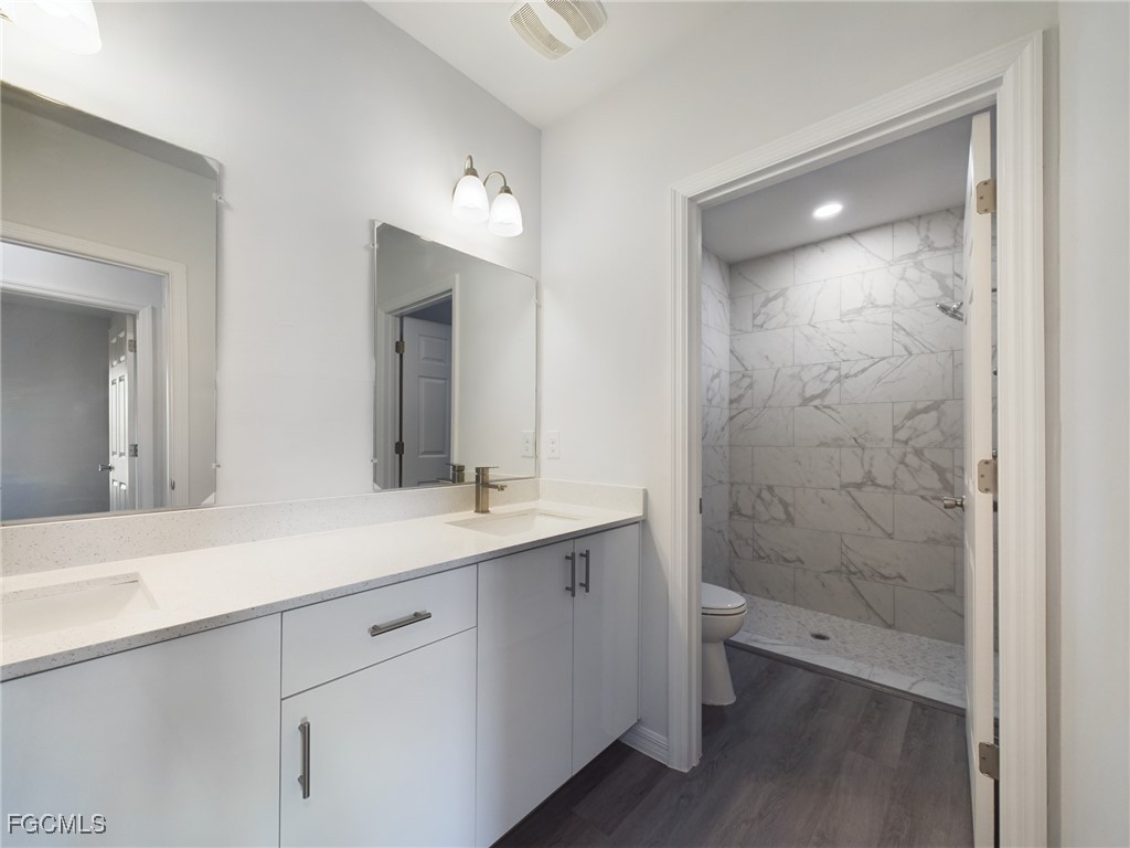 Welcome to this stunning 2023-built modern home in the highly sought-after Country Club Estates community of Lehigh Acres. No HOA. The open-concept floor plan is filled with natural light, highlighted by LED lighting and sleek wood-look laminate flooring throughout. The heart of the home is the gourmet island kitchen, complete with quartz countertops, stainless steel appliances, and a walk-in pantry—perfect for entertaining or everyday living, bonus half-bath. The primary suite features a generous walk-in closet and a private bath designed to be your personal retreat. Concrete block construction, storm-impact windows, and an inside air handler ensure efficiency, easy maintenance, and long-term durability. Situated on a ¼-acre lot with city water and septic, this home blends modern convenience with peace of mind. Don’t miss your opportunity to own a stylish, move-in ready home in a prime location close to shopping, schools, parks. No Flood insurance required. Seller is offering closing cost concessions.