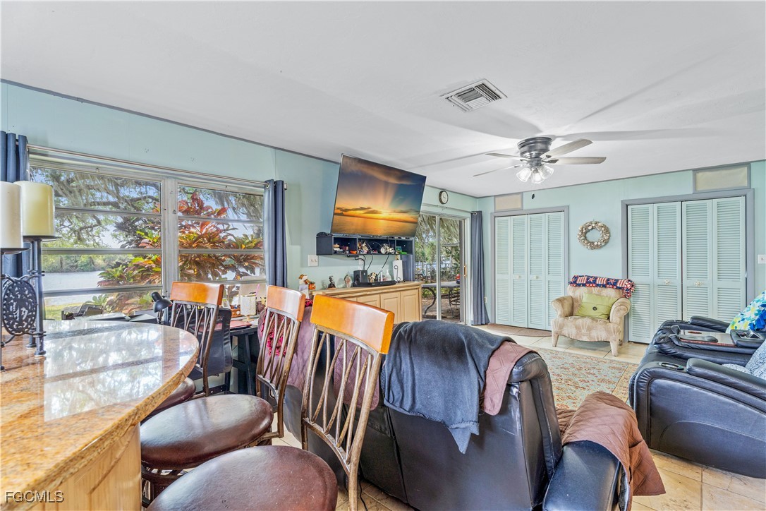 HERE IS YOUR CHANCE TO BE LOCATED ON CALOOSAHATCHEE RIVER!! This charming 2-bedroom, 2-bath single family home is situated on .45 acre lot with 81' of shoreline in Alva. Built in 1963, this 1,562 sq ft residence offers a blend of comfort and potential. Features include a large family/flex room, plenty of storage, tile & carpet flooring, central electric heating/cooling, a carport and 2 storage sheds, one with electricity. Set up for 30 Amp RV Parking under carport. 2023 New Roof; 2024 250 Gallon Reverse Osmosis System, Water Heater & Dishwasher. If you're seeking a peaceful lifestyle with convenient access to local amenities.. this home is it!! Also within steps to public boat access. NOT IN A FLOOD ZONE! Home Sold As Is.