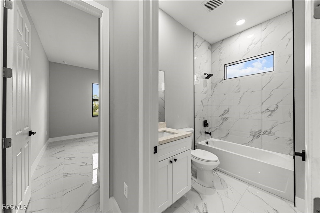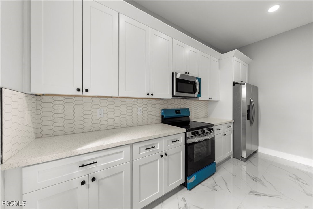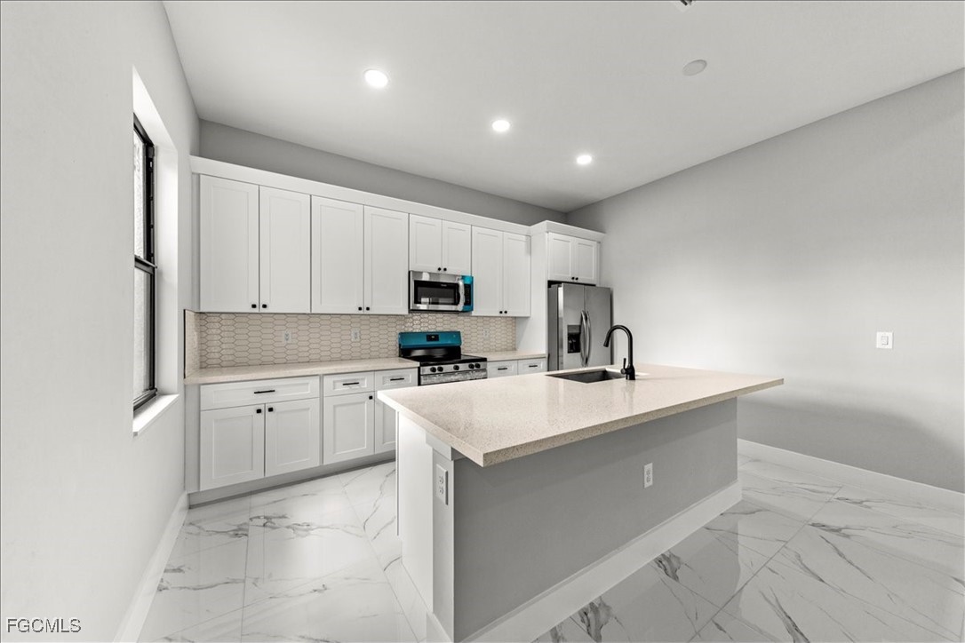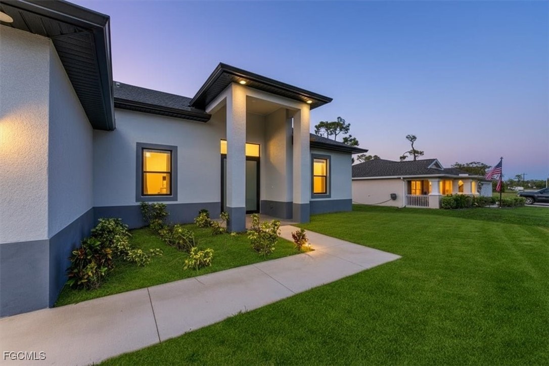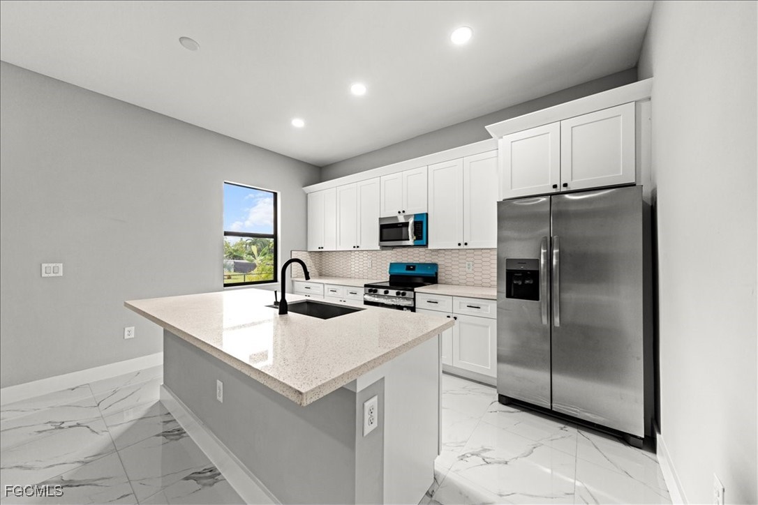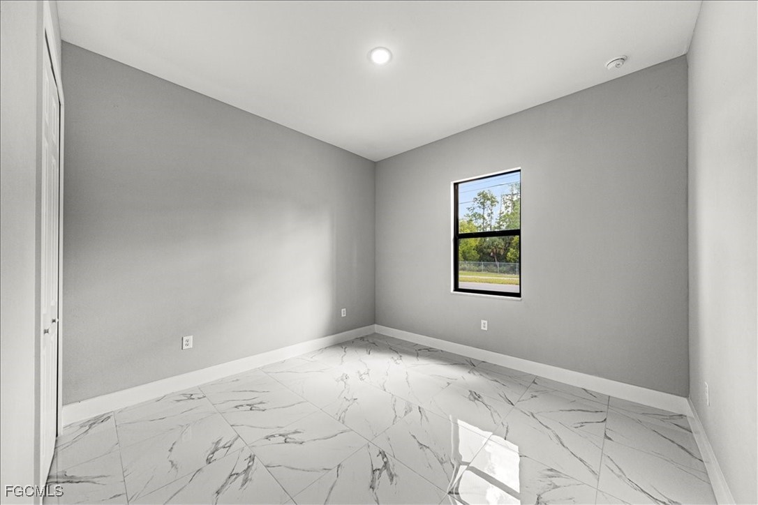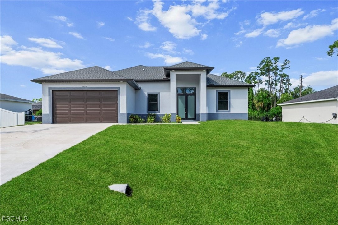 Step into modern elegance with this newly built 4-bedroom, 2-bath home featuring 1,960 sq. ft. under air and a total of 2,458 sq. ft. including a spacious lanai and 2-car garage. Located in the fast-growing northeast Cape Coral corridor, this property blends sleek design with everyday functionality, soaring ceilings, hurricane-impact windows and doors, quartz countertops, shaker cabinets, and oversized tile flooring throughout. The spacious master suite showcases tray ceilings, dual walk-in closets, and a walk-in shower. The laundry room includes washer/dryer hookups and extra storage space. The covered lanai is ideal for adding your own outdoor summer kitchen. Whether you're looking for a full-time residence or a seasonal getaway, this home offers stylish living in a convenient location just minutes from schools, parks, and local dining. Your next home is waiting—schedule a tour today!