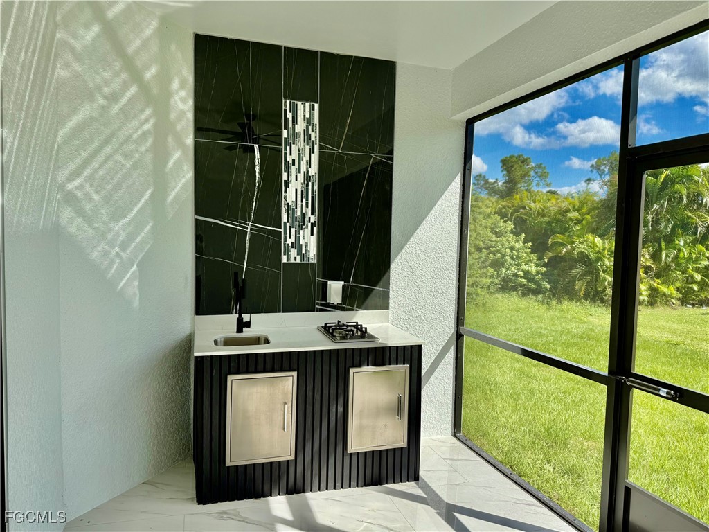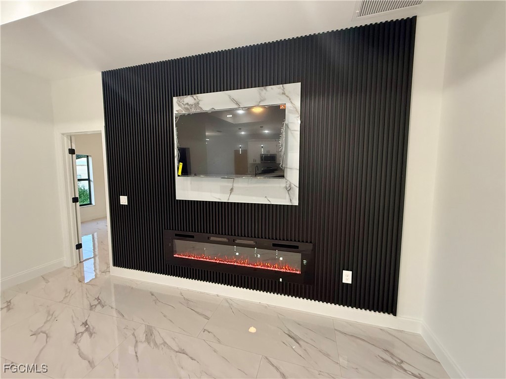 BRAND NEW MOVE IN READY 4 BEDROOMS 3 FULL BATHROOMS with TWO MASTER SUITES, EXCELLENT FOR IN LAW QUARTERS, C.O. HAS BEEN ISSUED, Excellent location in area of larger estate sized homes by Mirror Lakes Elementary school, 48" X 24" POLISHED PORCELAIN TILE FLOORS THROUGHOUT THE ENTIRE HOME with 5 inch baseboards, impact resistant windows and doors, covered front porch with tile floors lead to large great room, high entry foyer with UPGRADED LED LIGHTING THROUGHOUT, DECORATIVE ENTERTAINMENT WALL WITH MOUNTED TV, MARBLE AND DECORATIVE WOOD BACKGROUND, BUILT IN ELECTRIC FIREPLACE, high ceilings throughout with tray ceilings in the living room and master bedroom, shaker cabinets with soft close doors and drawers with crown molding on top, pendant lighting over breakfast bar, QUARTZ TOPS in kitchen and baths with QUARTZ WATERFALL TOPS ON EACH SIDE IN THE KITCHEN WITH OVERSIZED BREAKFAST BAR EXCELLENT FOR ENTERTAINING, stainless steel appliance package, QUARTZ backsplash, large dining area off of the kitchen, spacious master bedroom with two walk in closets, private bath with dual sinks and tiled walk in shower with frameless glass door, multiple shower heads including rainfall, LED MIRRORS WITH BUILT IN LIGHTING IN ALL BATHROOMS, 4th bedroom guest quarters off of the kitchen area with it's own private bathroom, indoor laundry room, screened lanai in the rear with tile flooring and BUILT IN SUMMER KITCHEN WITH BURNERS AND SINK WITH TILE ACCENTS, covered front porch with tile floors as well, auto irrigation on well, double garage with grey seal coated floors, excellent location just minutes to SR 82, I-75, Ft Myers and the International airport as well as walking distance to schools. NO FLOOD INSURANCE REQUIRED HERE. LEHIGH IS THE HIGHEST ELEVATION IN LEE COUNTY.
