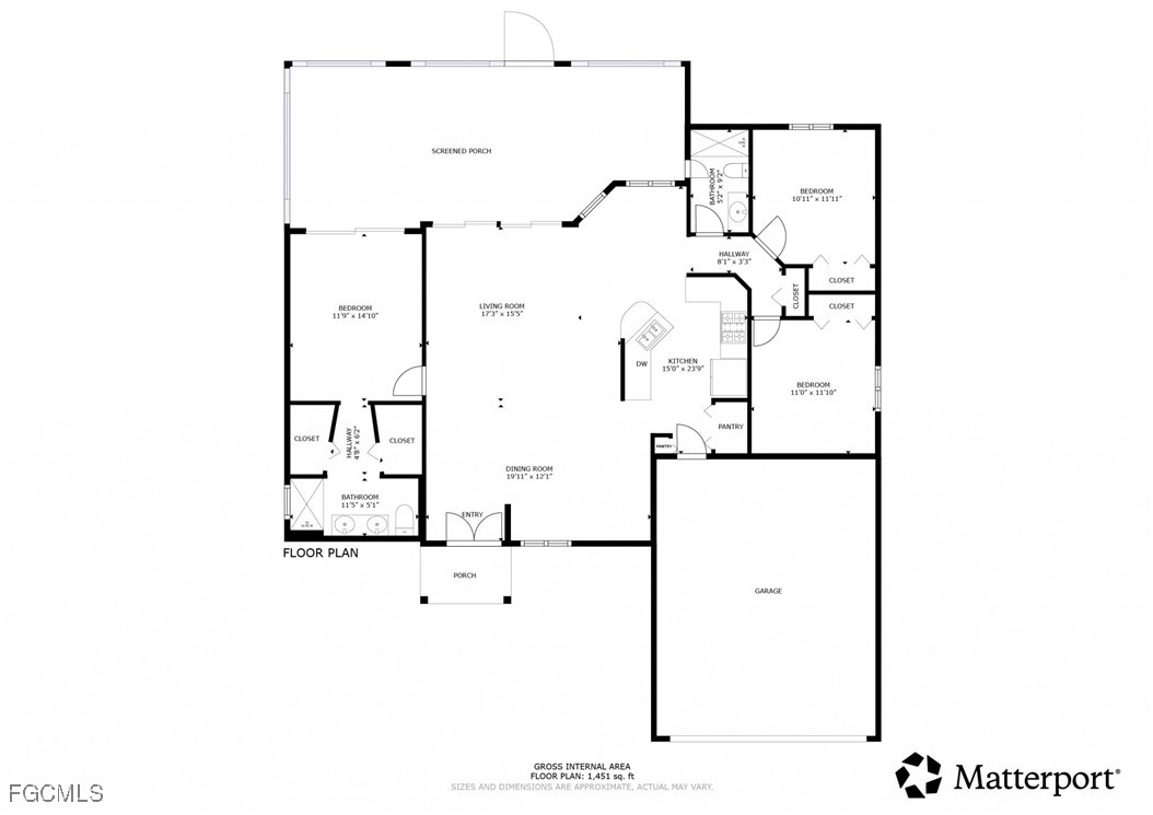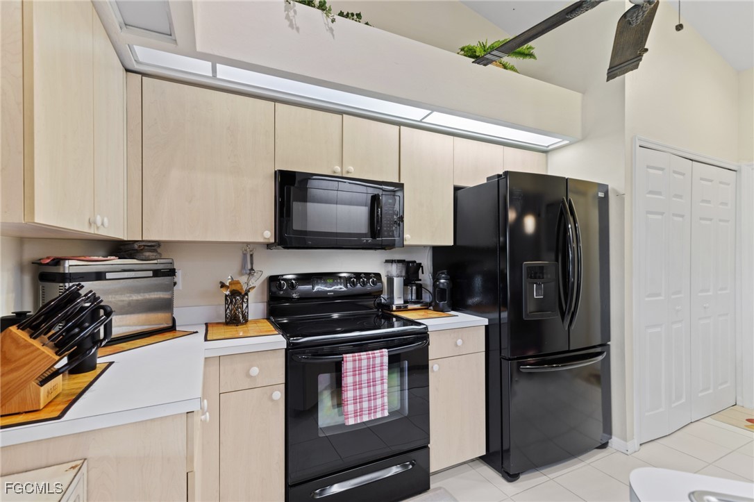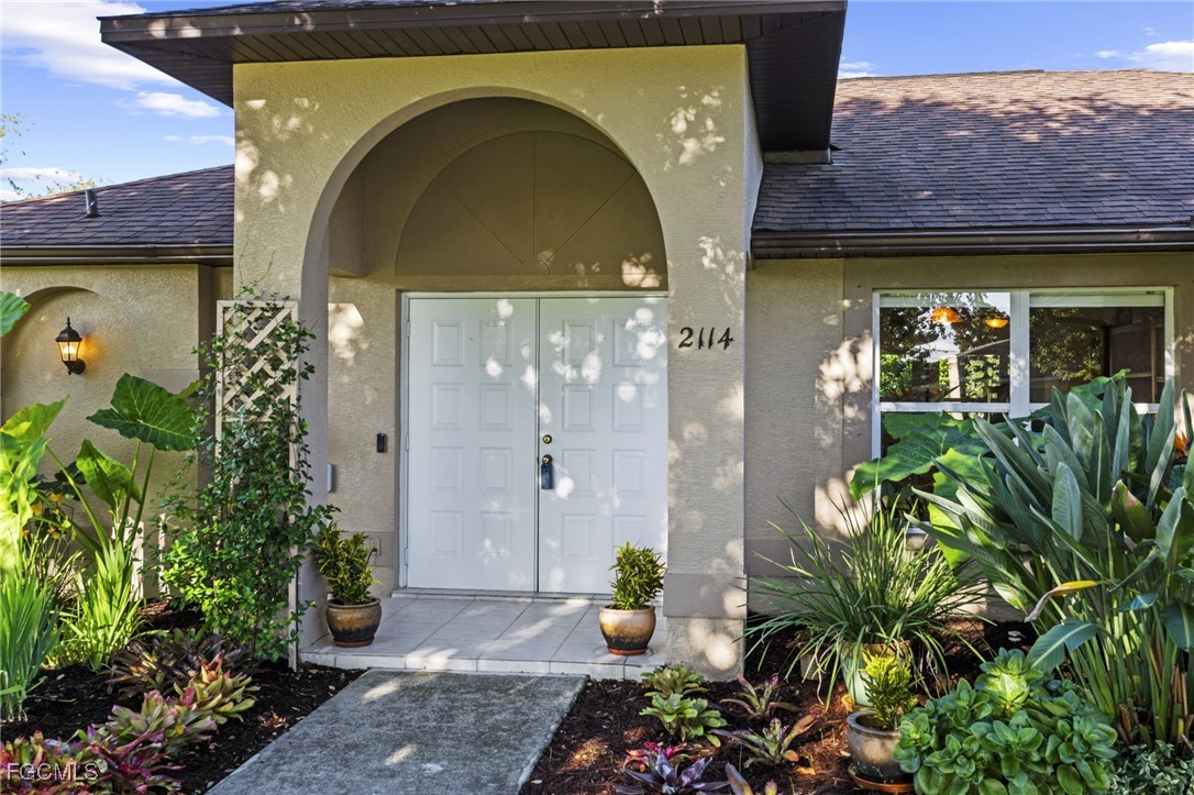This 3-bedroom, 2-bathroom home with no HOA offers bright, open living with soaring vaulted ceilings and wood floors throughout the main living areas and primary bedroom. The living/dining area provides plenty of space for both casual meals and a more formal dining setup. The kitchen features ample storage, a pantry, a breakfast bar, and a cozy breakfast nook, along with a convenient laundry closet with full-sized washer and dryer that convey. The split-bedroom layout provides privacy, with a spacious primary suite offering lanai access, dual walk-in closets, and an ensuite bath with dual vanities and a walk-in shower. Both bathrooms were updated in 2023, and the guest bathroom also provides lanai access. Additional bedrooms feature durable LVP flooring and large closets. Relax or entertain on the generously sized screened lanai overlooking a fully fenced backyard with room for a pool. Accordion storm shutters added in 2023 enhance peace of mind, while extensive upgraded landscaping adds curb appeal. Major systems include a new roof (2018) and new AC (2017). With a 2-car garage and thoughtful updates throughout, this home is ready for you to enjoy the ultimate Florida lifestyle.