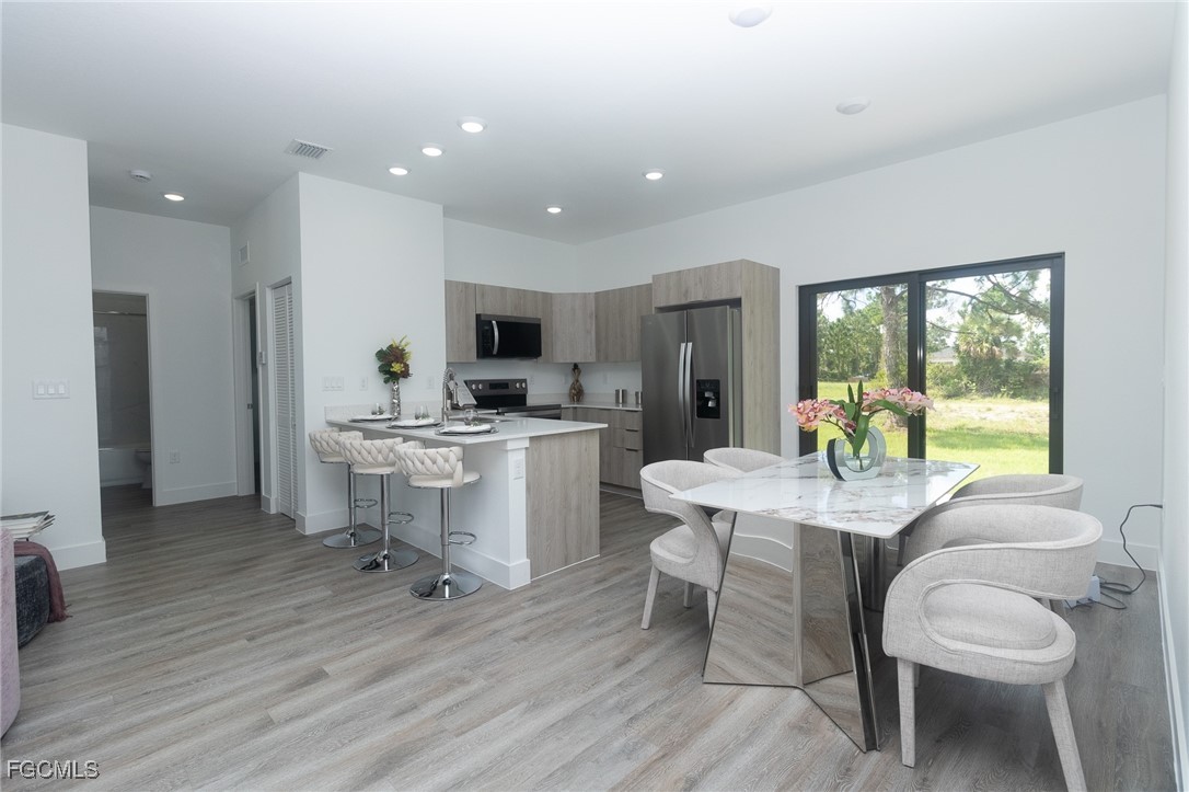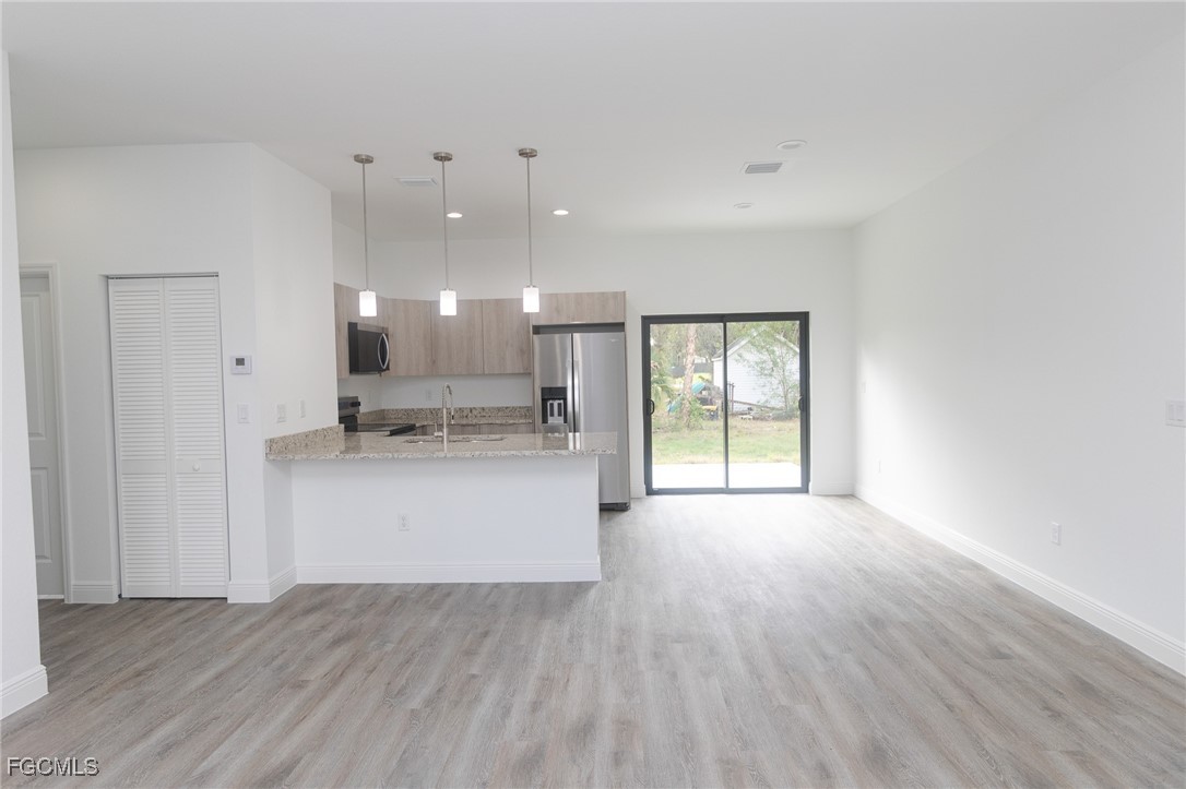 SELLER INCENTIVES TO BUYERS!! Welcome Home! This brand-new, thoughtfully designed single-family residence in Lehigh Acres offers modern living with a touch of Southern charm. Boasting 3 spacious bedrooms, 2 bathrooms, and 1,698 square feet of building area, this home is perfect for families and entertaining. Enjoy the open-concept floor plan featuring a gourmet kitchen with quartz countertops, sleek stainless steel appliances, and kitchen peninsula. The master suite includes a walk-in closet and an en-suite bathroom with dual vanities and a luxurious walk-in shower. Additional highlights include energy-efficient windows, a spacious one-car garage, and a private backyard ready for your personal touch and home automation. Located near schools, dining, and outdoor recreation, this property offers convenience and a tranquil lifestyle. Don't miss the opportunity to make this stunning new home yours! Schedule your private showing.