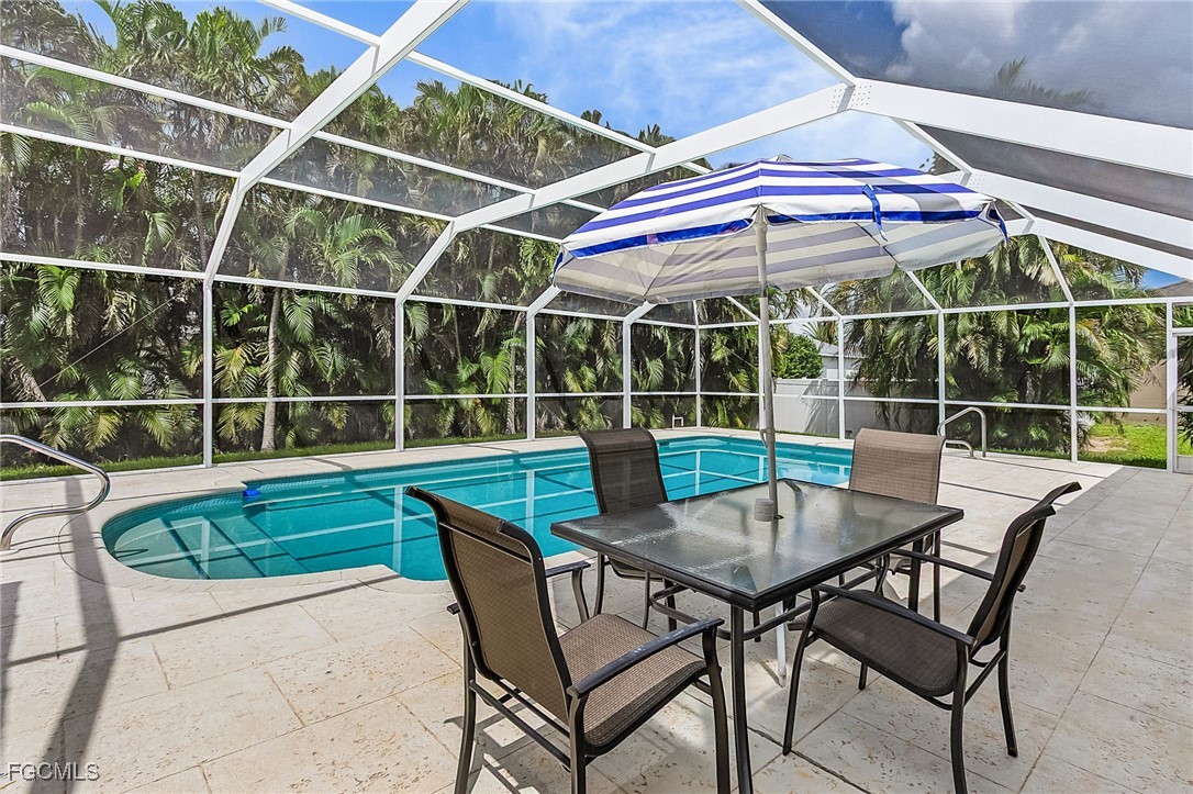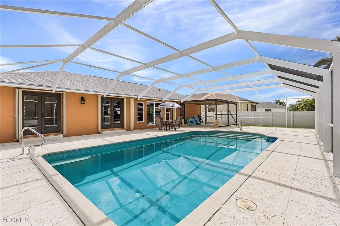 Outside, your private paradise awaits: an oversized pool with a spacious screened lanai and a shaded gazebo area, perfect for year-round outdoor living.