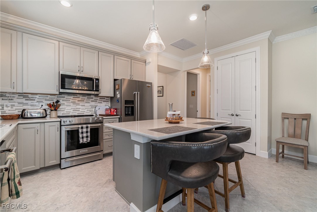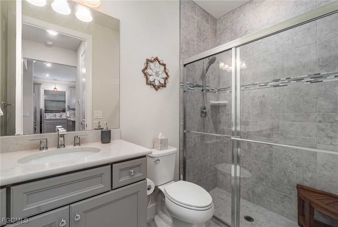 Beautiful, better than new construction, Pulte Ellenwood Villa in River Hall Country Club. This highly upgraded model has hurricane impact windows and an 8' impact resistant entry door so there is no need to ever put up shutters. River Hall Country Club is an 18-hole Davis Love III designed bundled golf community. Rolling Rock neighborhood is the most sought-after street as they have weekly golf, bocce ball and pickleball leagues for Rolling Rockers. Plus, they have an annual golf tournament complete with a pre-tournament team party at the Bunker Bar. If you are interested in belonging on a street where everyone knows your name and there are daily activities this is the Villa for you! You can unwind on your lanai overlooking the 18th hole with a NE exposure. The extended lanai has a full outdoor kitchen with plenty of seating to entertain your friends when they visit. The Ellenwood floor plan offers a split floor plan includes 2 spacious bedrooms, a versatile den, 2 bathrooms with tiled showers, and a 2-car garage with epoxy finish. Of the many upgrades there is crown molding in the living areas, upgraded tile flooring, and 8' solid interior doors. The kitchen features upgraded quartz countertops, upgraded solid wood cabinets with crown molding, upgraded stainless steel appliances, and a tile backsplash. In the spacious owner's retreat, you will find a large walk-in closet, dual sinks, large, tiled shower. Enjoy the total peace of mind that comes with owning a new construction home that has already been updated to include all the after-build features you would expect. Living in River Hall Country Club means embracing a bundled golf and resort lifestyle which features the Caloosa Grille Clubhouse with the golf shop. The community also offers a resort-style heated swimming pool at the Bunker Bar (Tiki Bar) a short walk from this Villa. The Town Hall Amenity Center features Bocce courts, Har-Tru tennis courts, Pickleball courts, and an Activities Director who ensures there's always something exciting happening. There is a fully equipped fitness center available extended hours with key card to make your exercising fit your busy lifestyle. This home is a perfect choice for those seeking a blend of luxury, comfort, and a very active lifestyle at a price that is affordable compared to other nearby communities. Vibrant downtown Fort Myers is a short distance with great entertainment and dining options. Publix Grocery store and Rooster’s Farmers market are within 1 mile of the River Hall entrance. Flood Insurance is not required on Rolling Rock Blvd., which leads to peace of mind as you enjoy your new relaxed lifestyle. Give me a call to schedule your personal tour of River Hall and all this Villa has to offer.