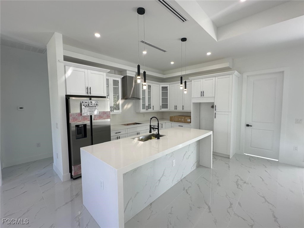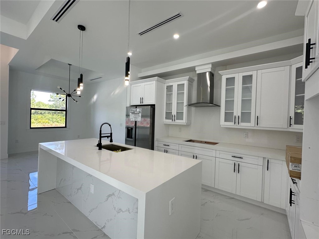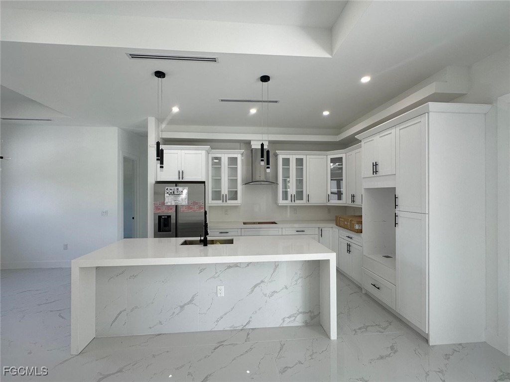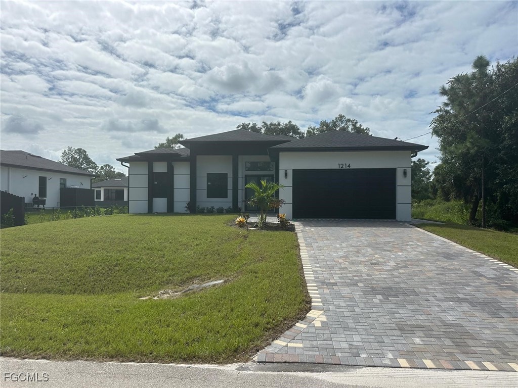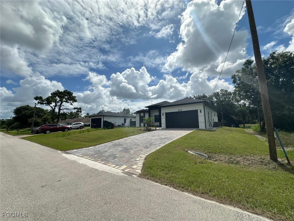 BRAND NEW CONSTRUCTION ON A CANAL LOT! You Will Be Amazed By The Quality Of This Brand New 3 Bedroom/2 Bathroom plus Den and 2 Car Garage Canal Home on An Oversized 1/4 Acre Lot In Lehigh Acres. MOVE IN READY! SELLER CONTRIBUTION FOR CLOSING COST! This stunning new construction home offers modern design and affordable luxury in the heart of Lehigh Acres. The well-appointed kitchen features quartz countertops, soft-close shaker cabinets, and stainless-steel appliances, including a refrigerator, range, dishwasher, and microwave. Designed with convenience and comfort in mind, the home includes impact-resistant doors and windows, ceiling fans in every room, a full size laundry room, the spacious master suite boasts dual sinks and a walk-in shower, while the open floor plan creates a bright and welcoming atmosphere. A two-car attached garage and room for a pool add to the property’s appeal. Also have gutters around all the house and irrigation system. The property is equipped with a surveillance system. The Laundry Room has a quartz countertop, and a full-size sink. Epoxy Coating In The Garage And On The Open Lania. No HOA and CDD