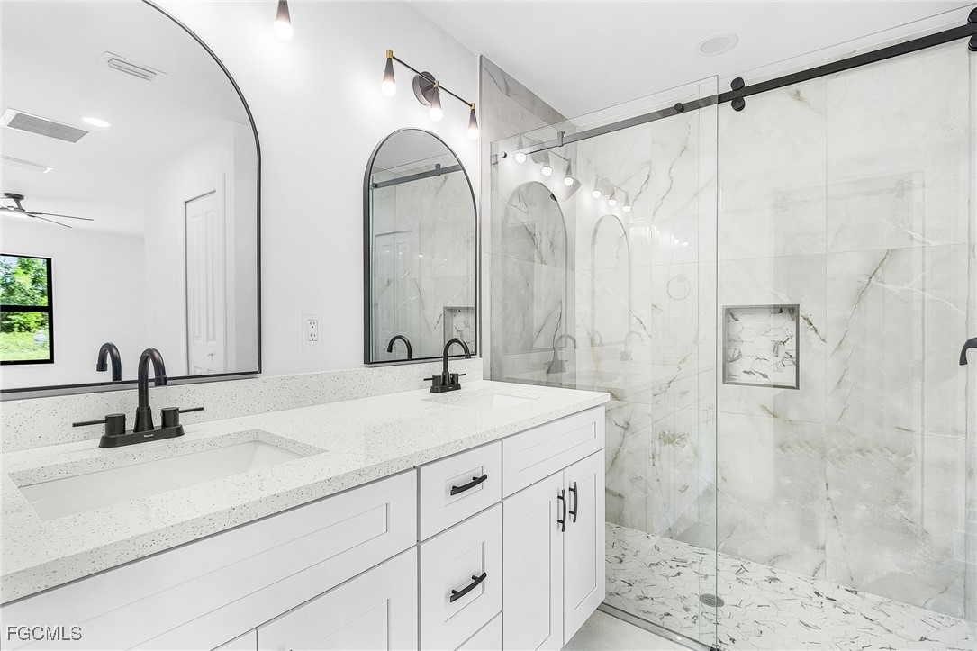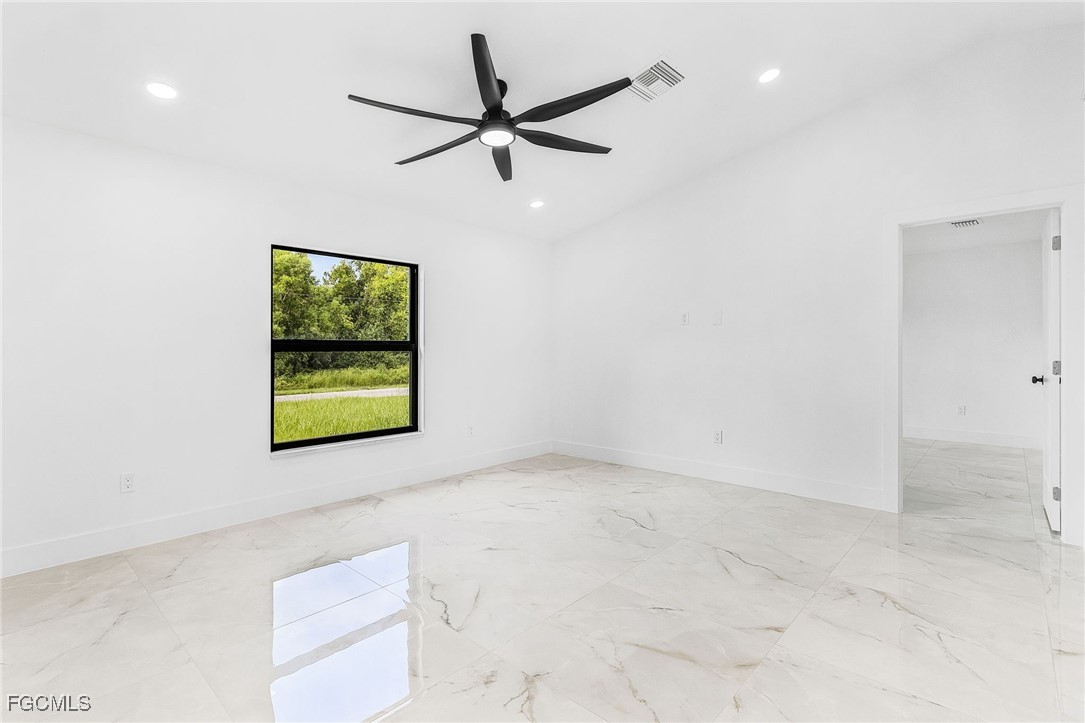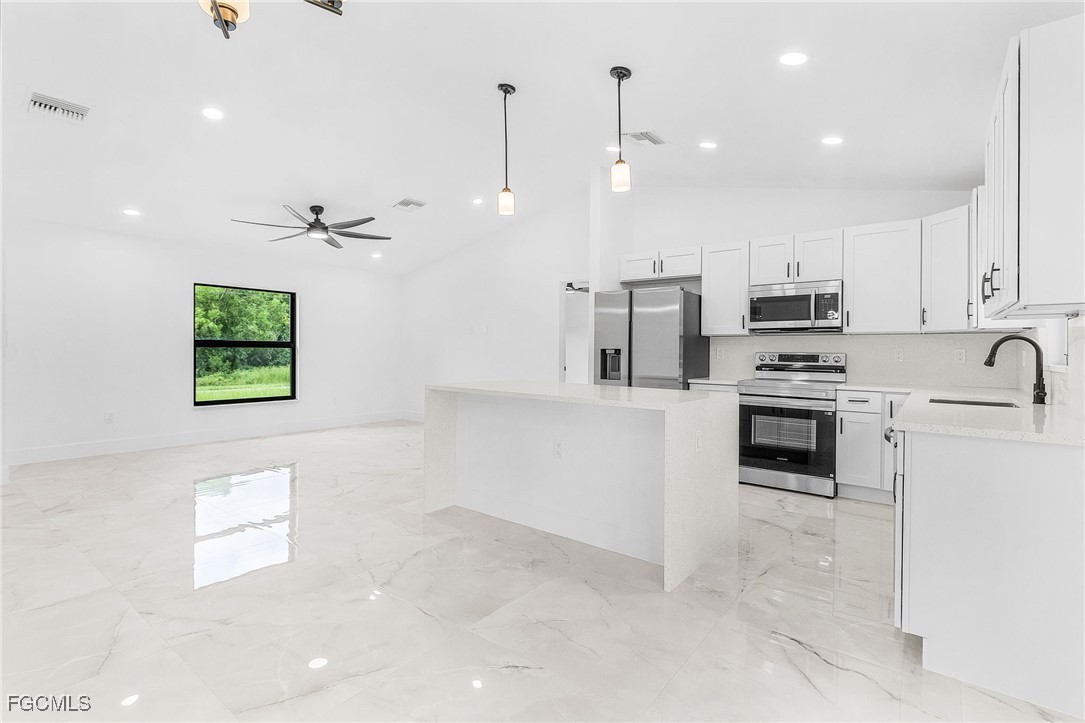 Beautiful and move-in ready 3-bedroom, 2-bath home with a spacious 2-car garage! Featuring an open-concept layout with high ceilings and abundant natural light, this home offers a modern and inviting feel throughout. The kitchen is a true highlight with elegant quartz countertops, custom cabinets, and stainless steel appliances. The primary suite includes a walk-in closet and a private bath with dual sinks and a glass-enclosed shower. Enjoy relaxing or entertaining on the covered lanai overlooking the large backyard — perfect for future pool or outdoor living space. Ideally located close to shopping, dining, and major roads. Immaculate condition and priced to sell quickly!