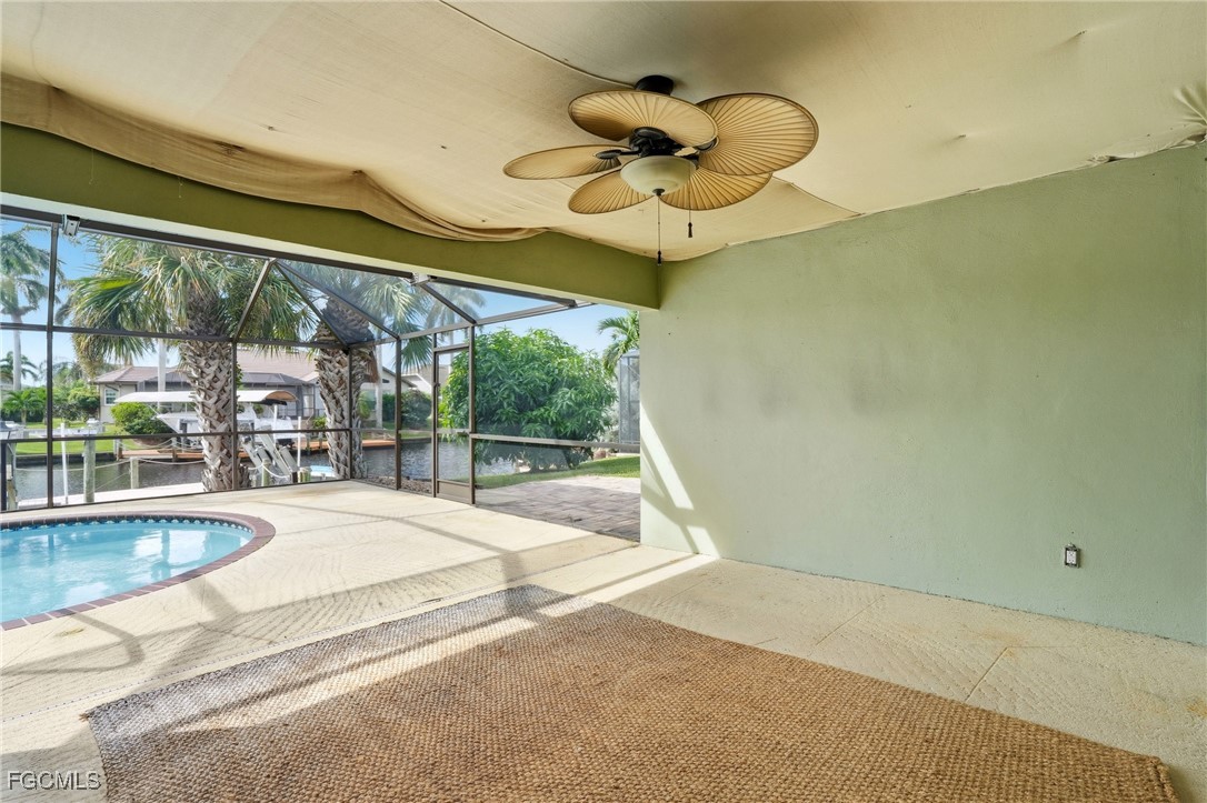 Premium direct sailboat access and a prime Cape Harbour location make this property a standout opportunity for boaters, investors, and custom home builders alike. Situated just minutes to open water with no bridges, this southern-exposure lot offers an unbeatable waterfront lifestyle in one of Cape Coral’s most sought-after neighborhoods. The existing 3-bedroom, 2-bath home was impacted by Hurricane Ian but has already been professionally remediated, creating a clean slate for its next chapter. While the home does require new drywall throughout, the major systems are in working condition, making it livable during renovation or while designing a future build. Whether you choose to renovate and personalize, generate short-term rental income, or maximize the lot value with a new luxury home, the flexibility here is unmatched. Boating enthusiasts will love the deep-water canal, generous turning basin, and two boat lifts (13,000 lb with 32’ slip + 10,000 lb with 19’ slip), perfect for larger vessels and sailboats. A spacious screened pool area enjoys abundant natural light year-round, ideal for entertaining or soaking up the Florida sun. The lush, mature landscaping and intersecting canal views set the stage for an exceptional waterfront retreat. Recent updates include a new roof (2022) with top-grade shingles, newer pool pump, hot water heater, dock improvements, and updated irrigation valves. Surrounded by luxury waterfront communities such as Cape Harbour, Tarpon Point, and The Hermitage, this address places you near some of the best dining and entertainment in SWFL—including waterfront restaurants, live music, local shops, golf courses, and exciting new developments like Bimini Square and The Cove. Whether you’re envisioning your forever home with sweeping water views, an income-producing vacation rental, or a high-value new construction, this property combines location, lifestyle, and endless potential. Opportunities like this are rare—don’t miss your chance to own a piece of Cape Coral’s premier waterfront.