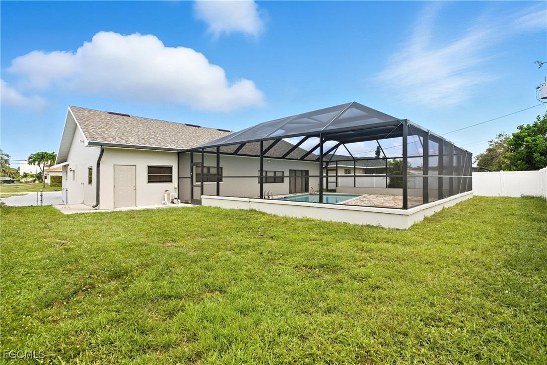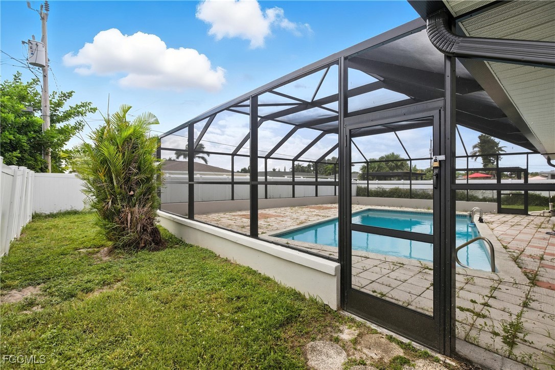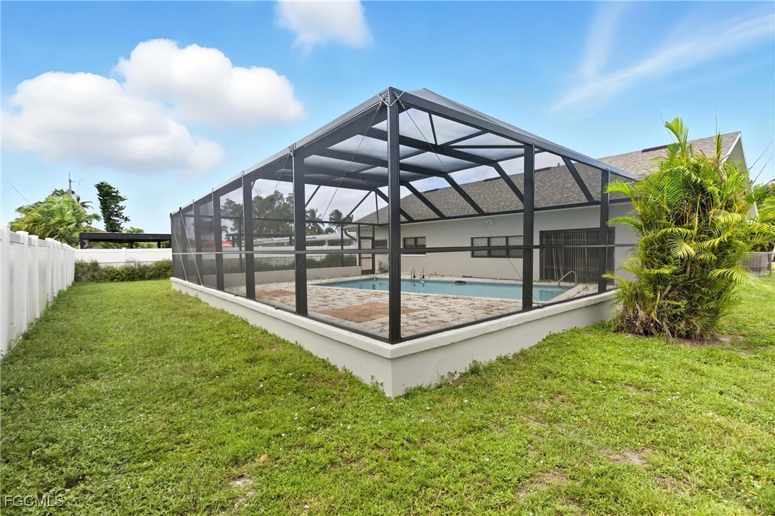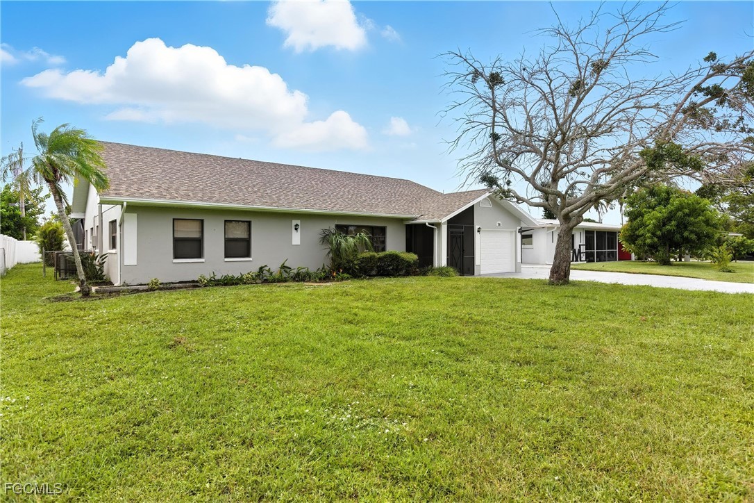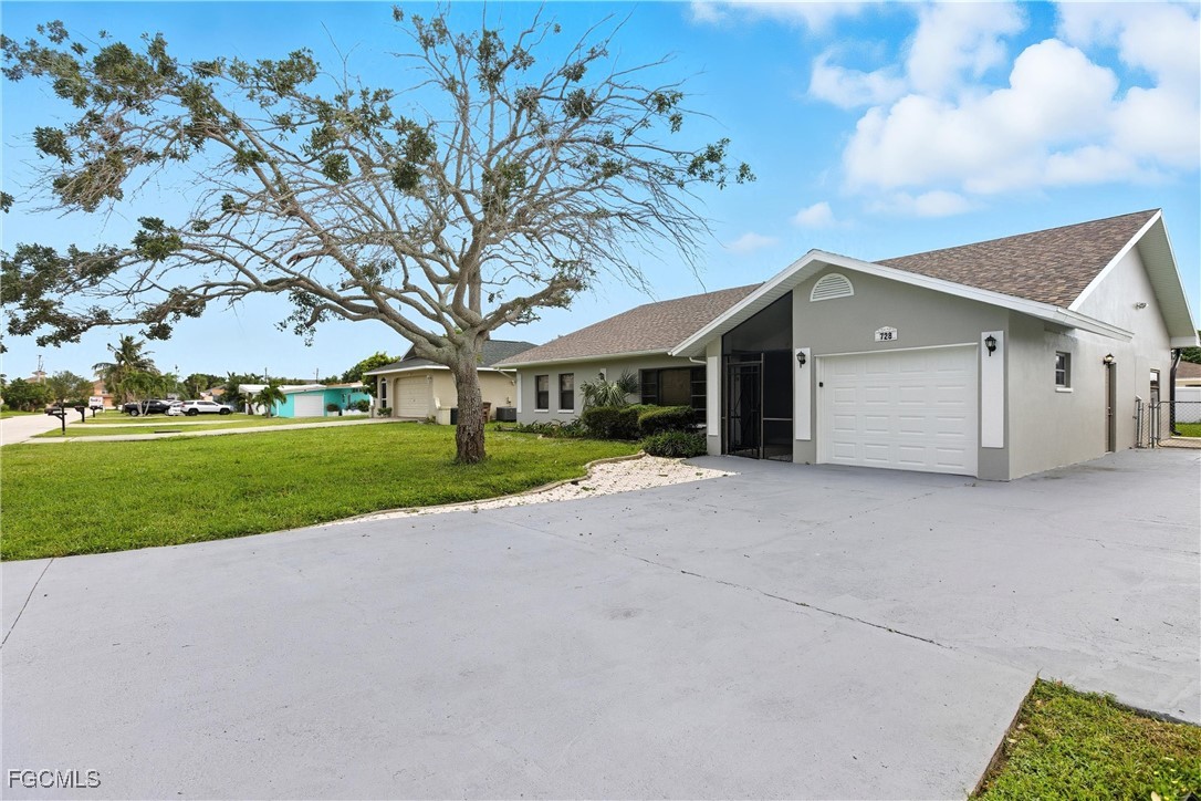 Welcome to 728 Tower Drive, a charming pool home in Cape Coral’s coveted Yacht Club neighborhood — one of the city’s most desirable areas known for its coastal charm, boating lifestyle, and quick access to beaches, parks, and downtown restaurants. This spacious single-level home offers timeless character with smart updates and an ideal layout for entertaining or relaxing in style. The large living room overlooks the pretty, tree-lined street, while the formal dining room features a built-in bar and buffet cabinetry perfect for hosting holidays, game nights, or casual family meals. At the heart of the home, the kitchen offers updated white cabinetry, granite countertops, and black appliances, creating a fresh, modern feel while maintaining the home’s warm character. Just beyond, the den or family/game room with its own bar overlooks the pool area — a perfect setup for entertaining guests — and the nearby pool bath with shower keeps little wet feet from tracking water through the house. The split floor plan provides privacy for both owners and guests, with the spacious primary suite featuring two closets (including one large walk-in) and a private ensuite bathroom with shower. On the opposite side, two guest bedrooms share an updated full bathroom. Tile flooring runs throughout the home, with luxury vinyl in the bedrooms for added comfort, and ceiling fans in every room keep the Florida breezes flowing. The interior is freshly painted, move-in ready, and full of natural light. Step outside to your private backyard oasis — a massive screened lanai with a sparkling pool and plenty of deck space for lounging or hosting weekend barbecues. The fully fenced yard provides privacy and room for pets or play. Additional highlights include a screened front courtyard entry, extra parking space for a boat or second car, and key updates like a new roof in 2022, water heater in 2023, and HVAC system from 2015. Located just minutes from downtown Cape Coral’s vibrant dining, festivals, and parks — and with quick access across the bridge to Fort Myers — this home offers the perfect blend of location and lifestyle. Plus, the beloved Cape Coral Yacht Club Park and beach are just down the road, with exciting redevelopment plans underway to enhance the marina, community center, and waterfront amenities. Whether you’re looking for a full-time residence, seasonal escape, or investment opportunity, this classic Cape Coral home delivers comfort, value, and unbeatable proximity to everything that makes Southwest Florida living so special.