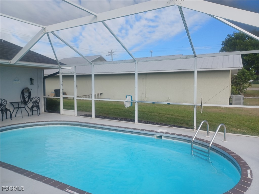 Welcome to the Charming 2/1 with Screened Pool and Dock, located in the vibrant city of Cape Coral, FL. This newly remodeled duplex boasts two spacious bedrooms and a full bathroom, perfect for those who value comfort and style. The home features laminate flooring throughout, adding a touch of elegance and easy maintenance. The large screened lanai is an ideal spot for relaxation, offering a private pool for your enjoyment. The property also includes a concrete dock, a unique feature that adds to its charm, the Gulf is a boat ride away. For your convenience, the home comes equipped with a washer and dryer. Safety is a priority, and this home is fitted with hurricane windows for added protection. Experience the perfect blend of comfort, style, and convenience in this beautiful Cape Coral home.