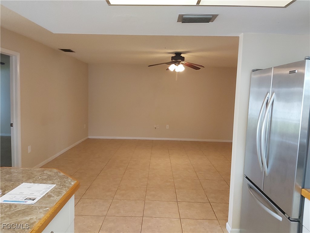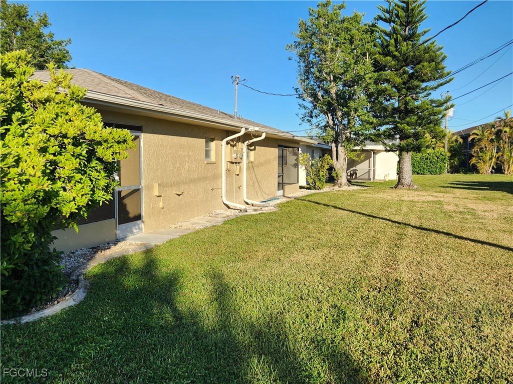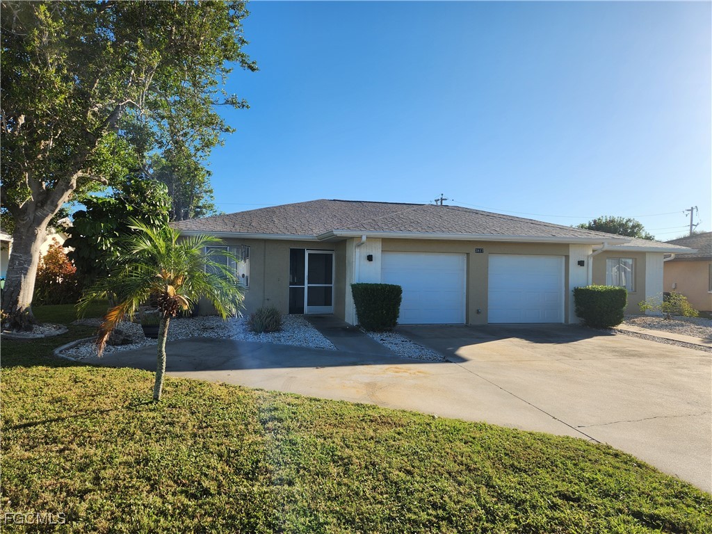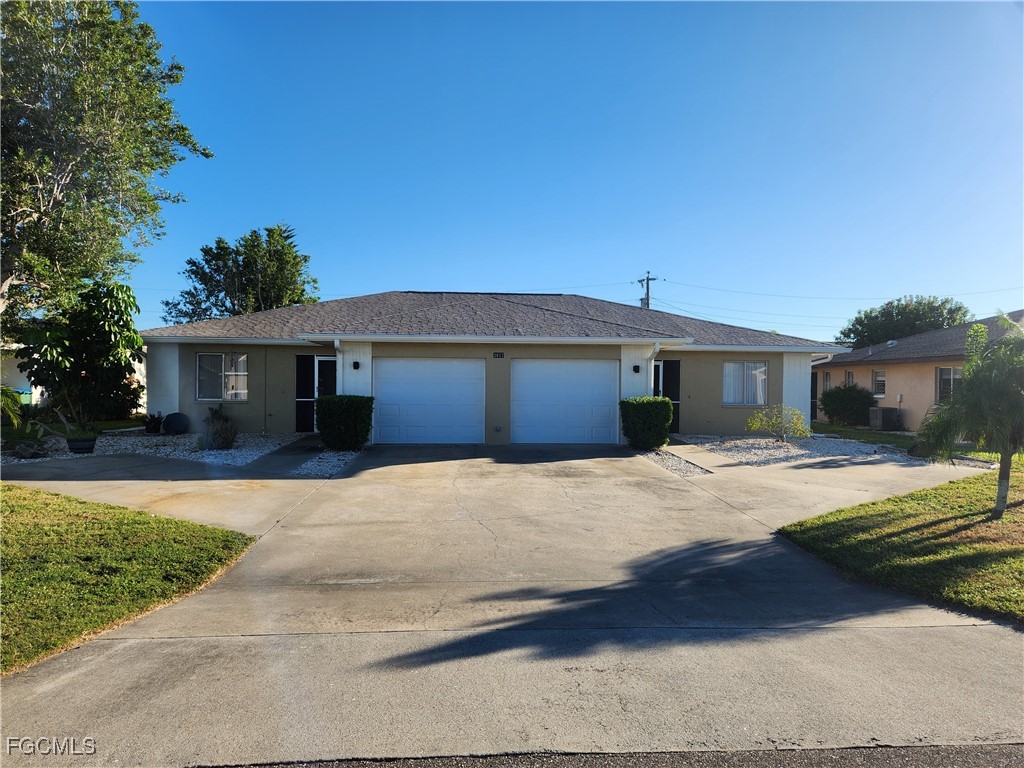 This beautiful 2 bedroom, 2 bath duplex with attached garage features lots of space (Over 1200 SF living area) and a very convenient location, close to everything. You'll love the open layout and space that makes it feel like a single family home. The home features tile throughout for easy upkeep. The kitchen includes all stainless appliances and a large countertop bar with a dining area overlooking the lanai. The spacious Master bedroom has a walk-in closet and ceiling fan. The large lanai gives a nice view of the quiet backyard. It's a great spot for your morning coffee. The home includes an attached garage and extra parking space in the driveway. This SE Cape home just off Country Club Blvd is close to downtown Cape Coral and convenient to schools, restaurants, stores and commuter routes. Pets are permitted with approval. Rent includes lawn service and trash pickup. Come check out your new home.