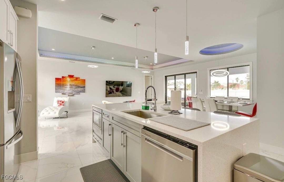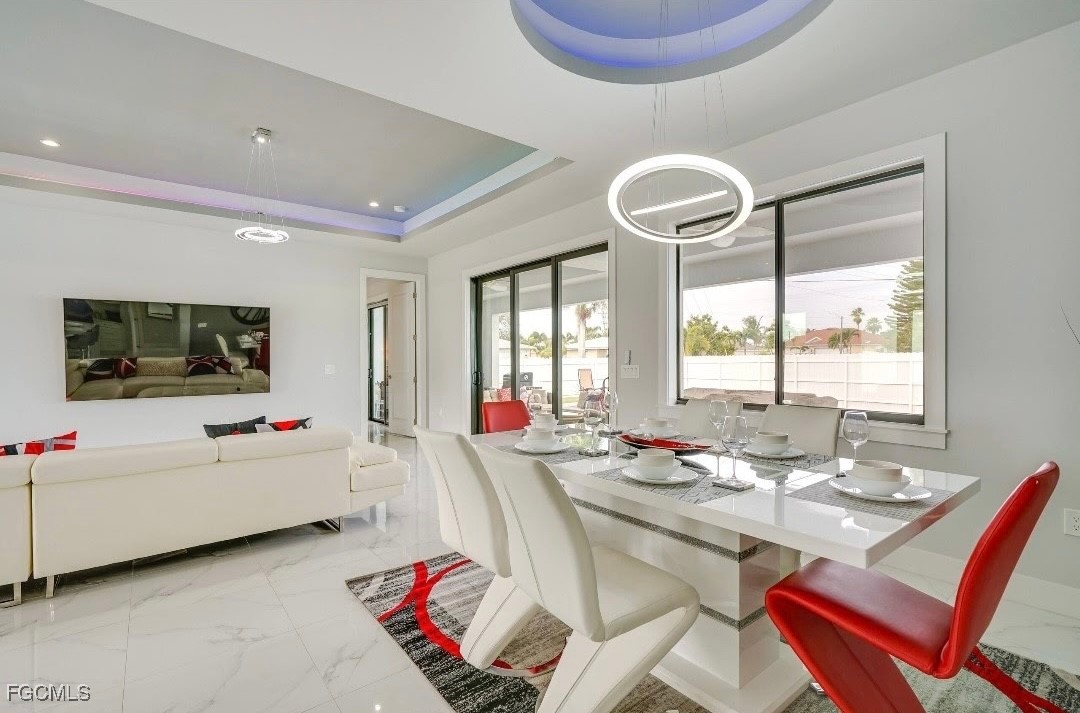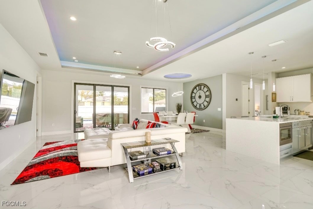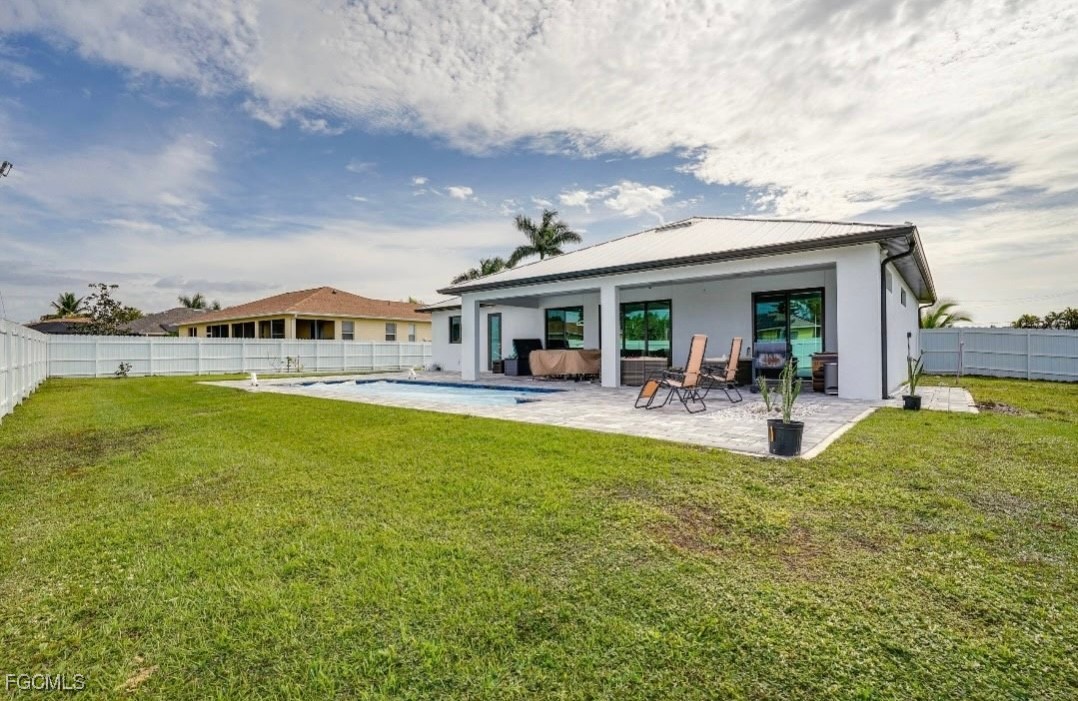 Beautifully furnished newer-built 3-bedroom, 2-bath pool home featuring impact windows, a metal roof, and a fully fenced yard on an oversized corner lot. This stylish home offers modern comforts and thoughtful upgrades, including color-changing LED lights in the tray ceilings, automatic shades in the primary bedroom, and TVs in every room. The open concept living area leads out to a sparkling saltwater heated pool with a convenient pool bath, perfect for entertaining or relaxing. Sleeping arrangements include two twin beds in one guest room, a queen low-profile bed in the second guest room, and a king-size bed in the main bedroom. Enjoy the perfect blend of luxury, comfort, and privacy—all just minutes from shopping, dining, and local attractions.