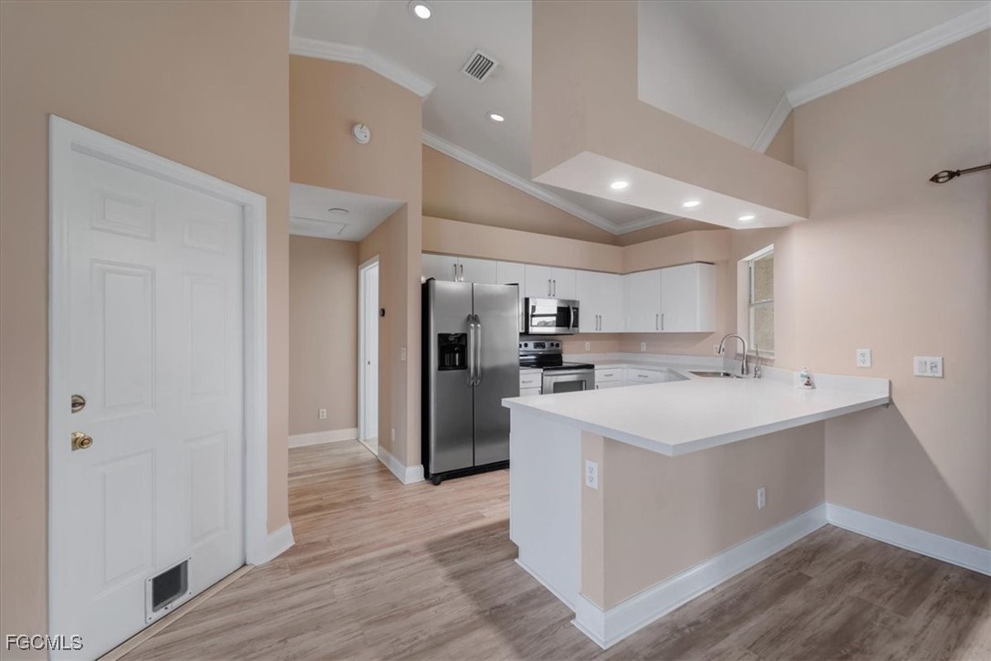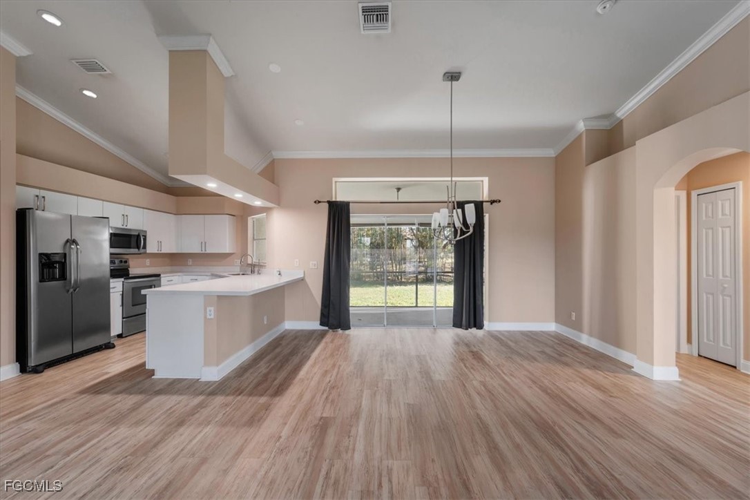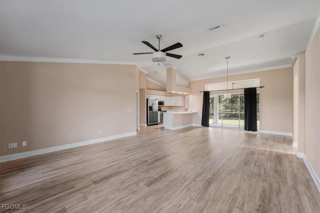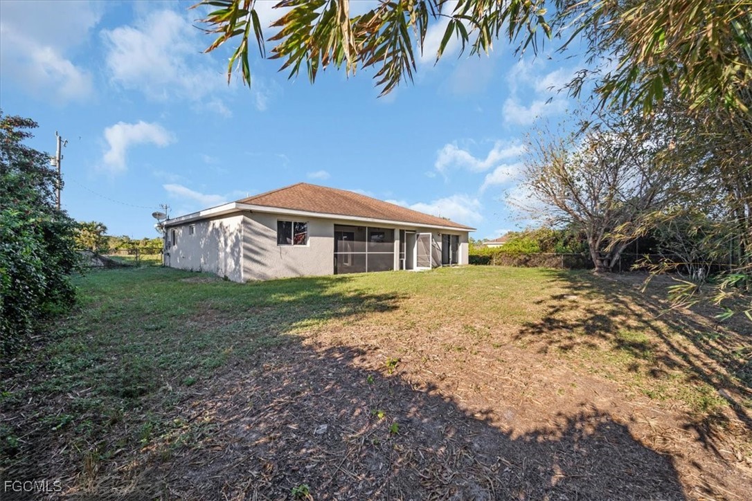 move-in ready condition! Situated on a .25-acre lot with mature landscaping, this recently renovated home boasts 3 full bedrooms, 2 bathrooms and a 2-car garage. As you step inside, you’ll be greeted by an open concept living area with plenty of natural light that creates a warm and inviting atmosphere. The spacious kitchen is equipped with modern appliances, ample cabinet space, and a convenient breakfast bar, The primary bedroom features a walk-in closet and an en-suite bathroom, covered lanai is screened-in and accessible from the living room. The large backyard offers plenty of space for gardening, outdoor activities, or even adding a pool. Located in the heart of Lehigh Acres, this home is close to shopping, dining, schools, and parks. With easy access to major highways, you’re just a short drive from all that Southwest Florida