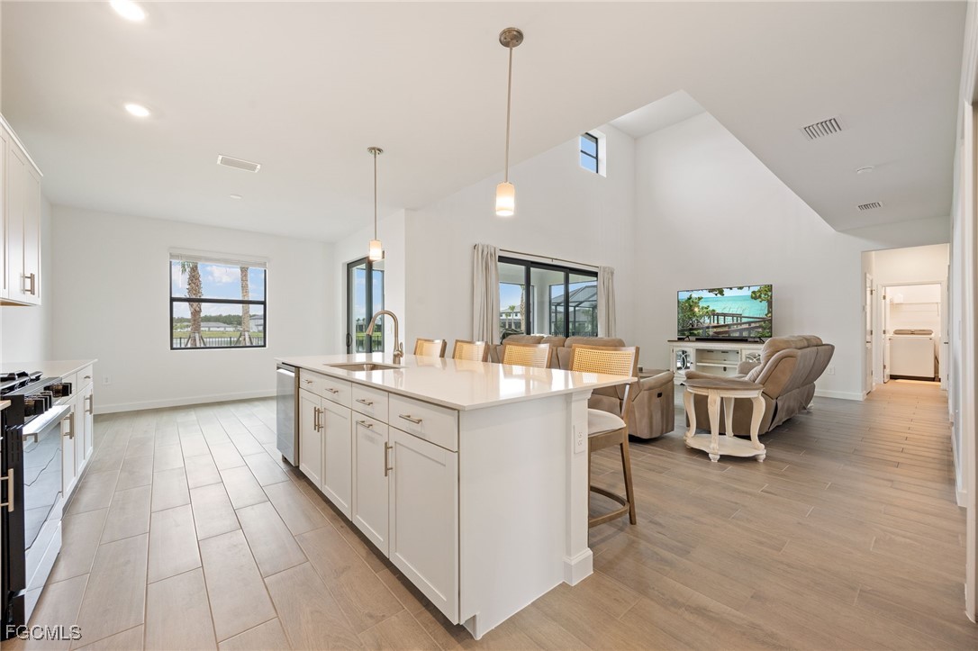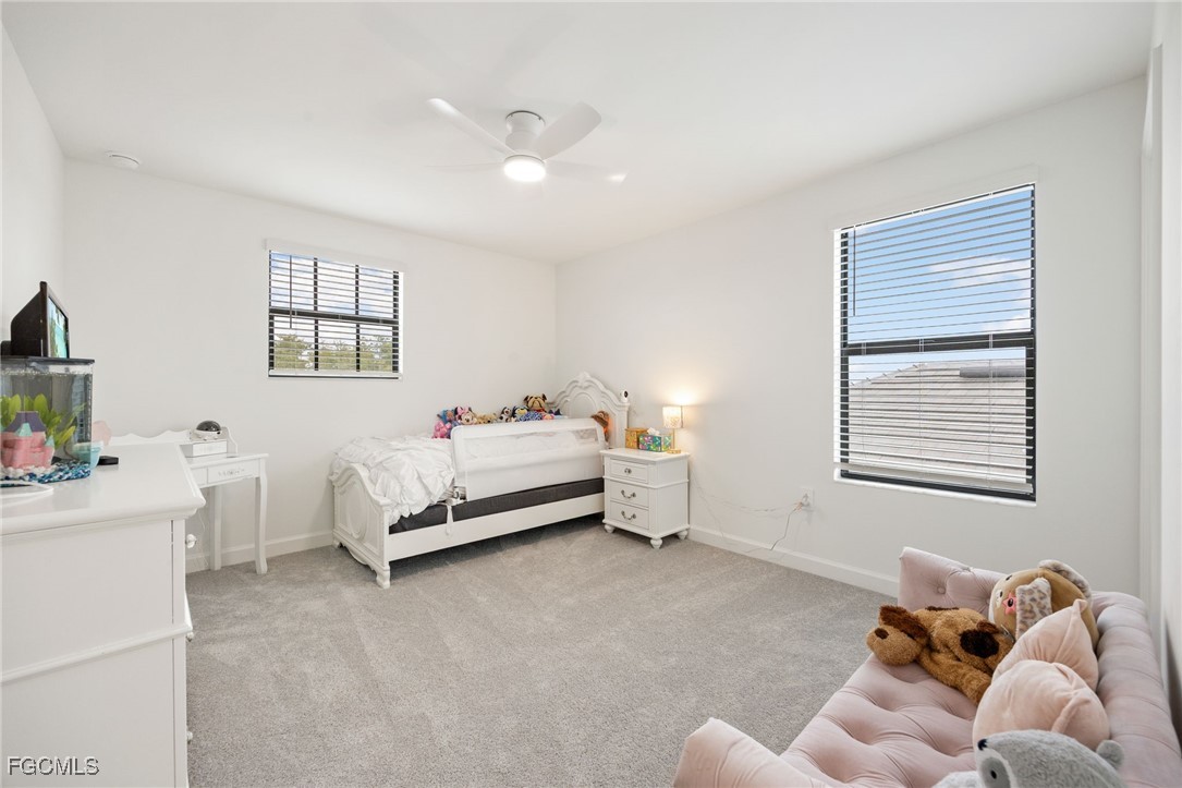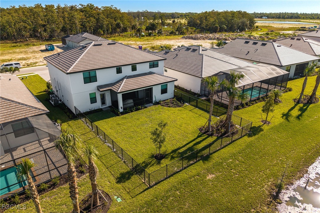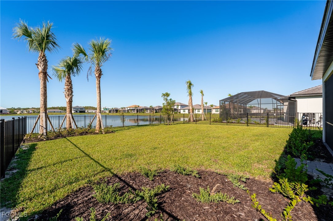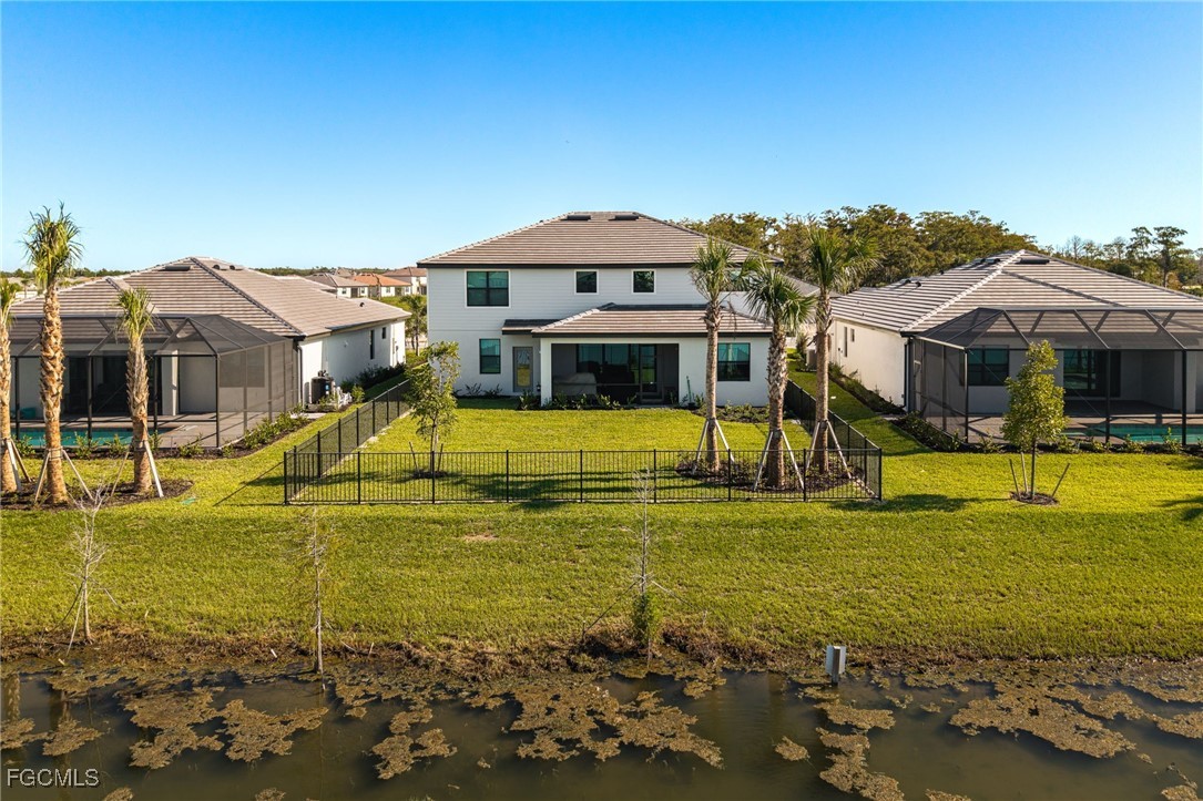Welcome to this move in ready 5 bedroom and 4.5 bathroom home located in the highly sought after community of Verdana Village. This light and bright, two-story lakefront offers a fenced-in yard and SW exposure for some of the best sunsets SWFL offers. The main level of this home offers so much versatility with the amount of multi-functional space. Kitchen has upgraded gas appliances, eat in kitchen that overlooks the lake, oversized pantry and pass through to the formal dining area. First floor ensuite is perfect for guests or multi generational living. Under stair storage and laundry on the first level. Upstairs offers a spacious loft and the other four bedrooms. The oversized primary suite overlooks the lake and features a huge walk-in closet, dual vanities, a private toilet room and large shower. There's room for a pool and plans are available! As a resident of Verdana Village, you'll get to enjoy a resort style pool and spa, full fitness center, yoga room and lawn, indoor and outdoor pickleball and tennis courts, basketball, dog park, playground, restaurant, craft beer lounge and cafe. This golf cart-friendly allows you to ride to the amenity center or just outside the gates to The Shoppes at Verdana Village, where you'll find Publix and more. All of this and you are only a short drive to I-75, Miromar Outlets, RSW Intl Airport and much more! Estero is centrally located between Naples and Fort Myers so the opportunities for shopping, dining and the beaches are at your fingertips!