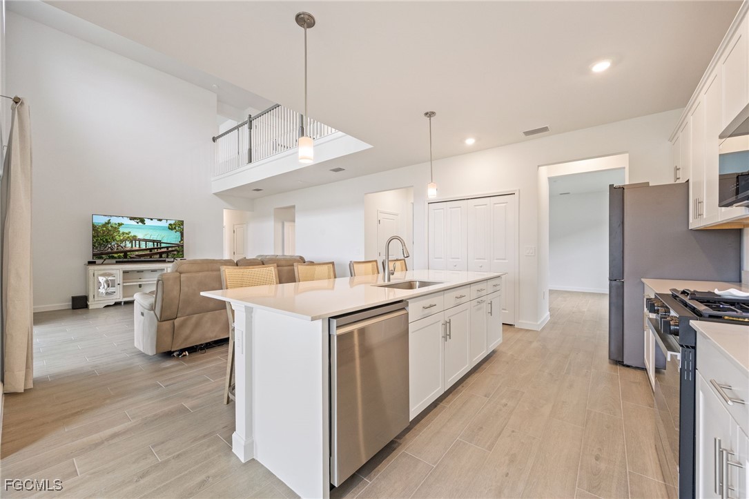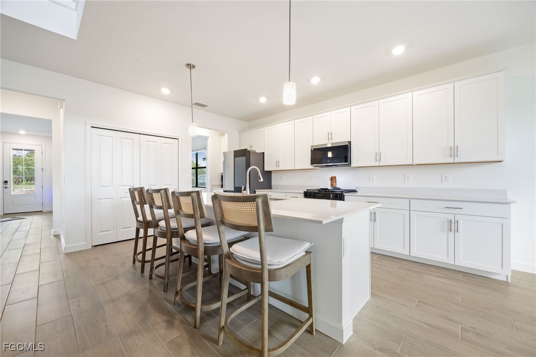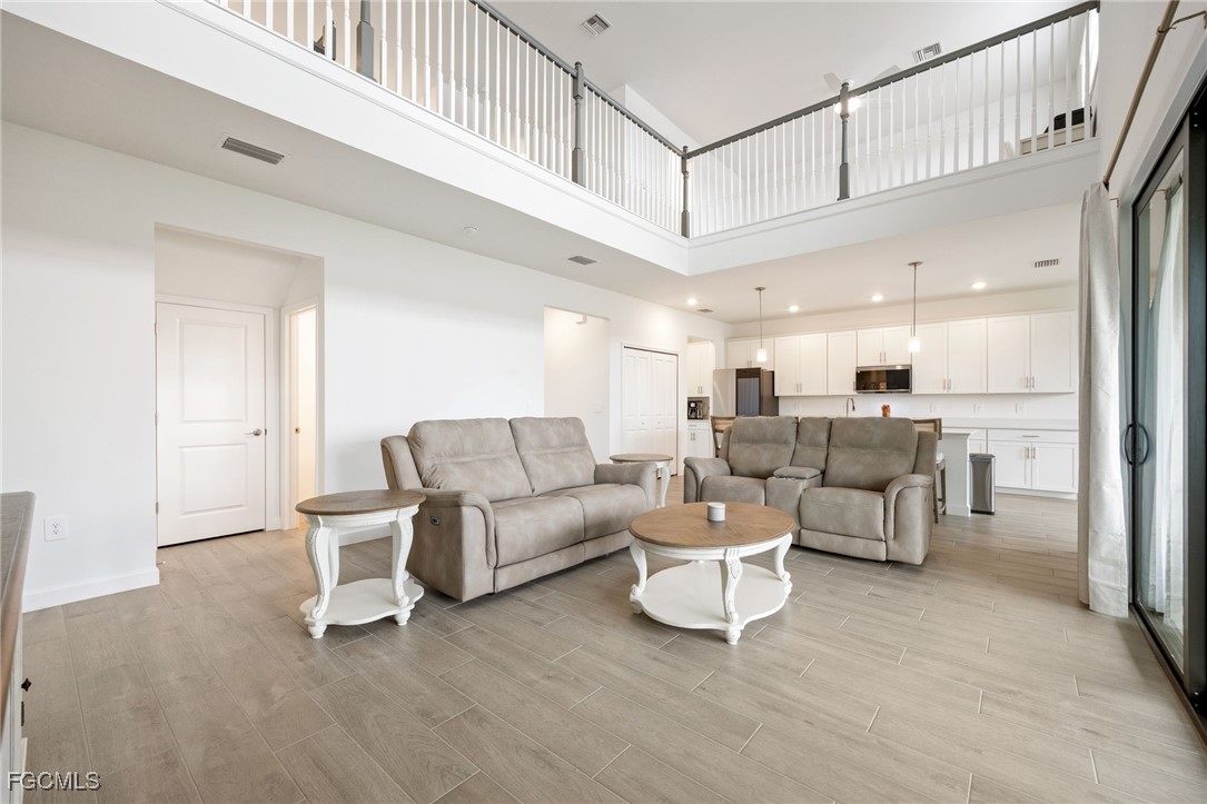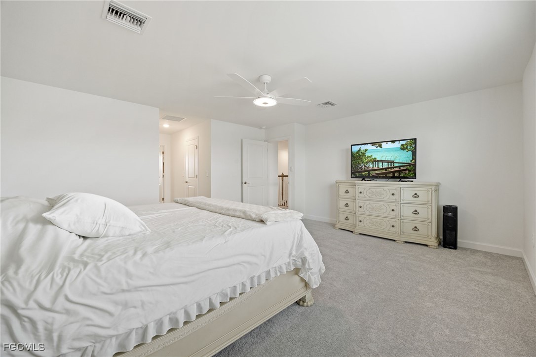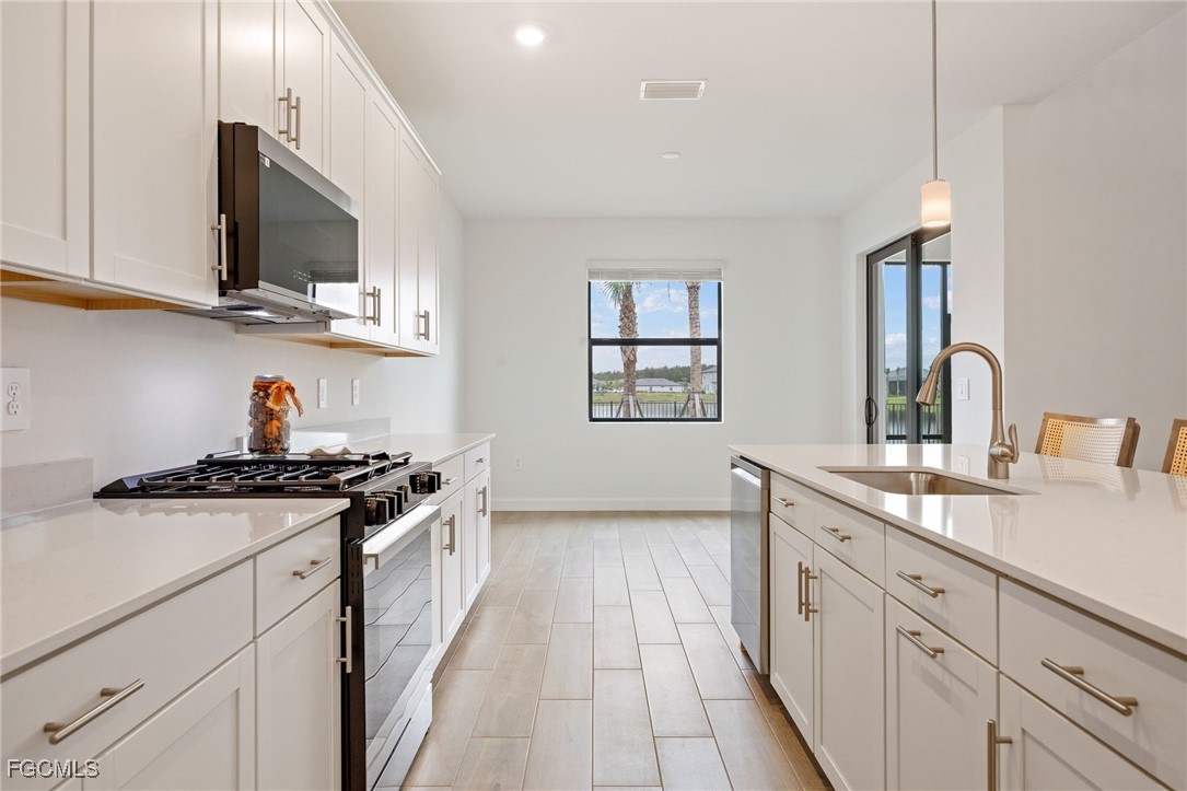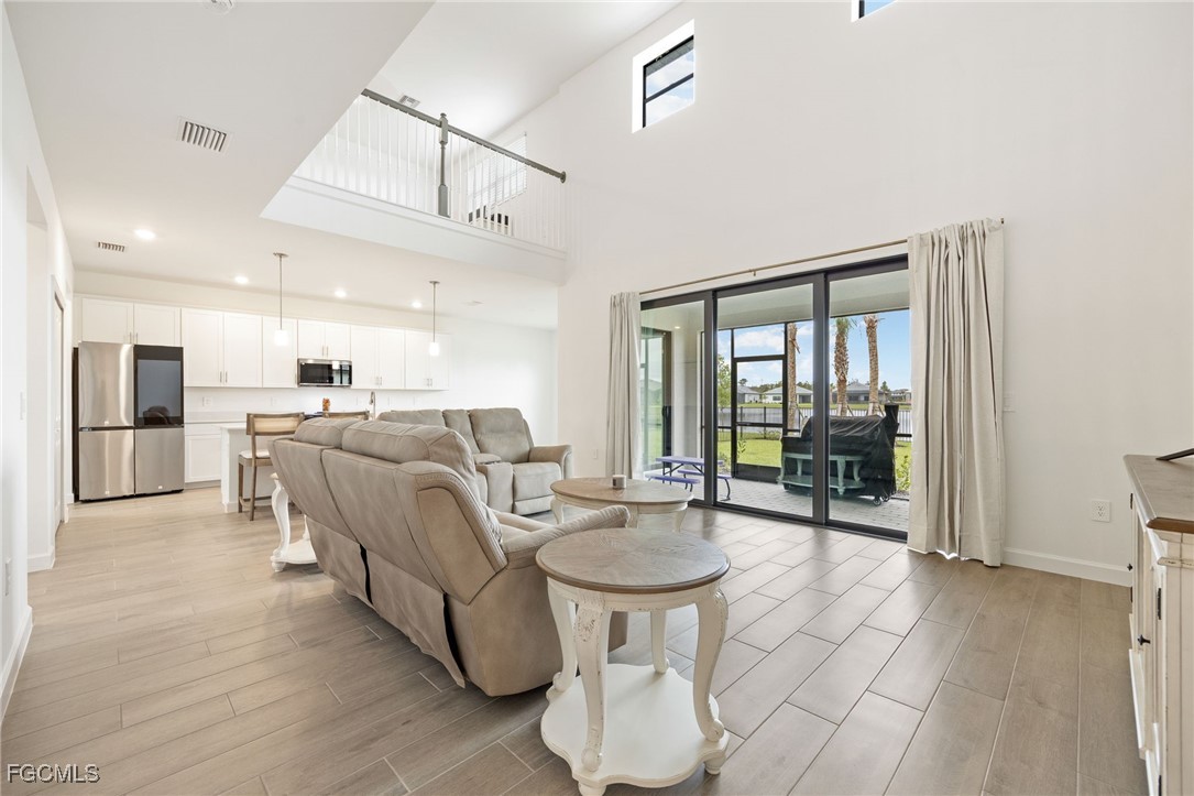 Welcome to this move in ready 5 bedroom and 4.5 bathroom home located in the highly sought after community of Verdana Village. This light and bright, two-story lakefront offers a fenced-in yard and SW exposure for some of the best sunsets SWFL offers. The main level of this home offers so much versatility with the amount of multi-functional space. Kitchen has upgraded gas appliances, eat in kitchen that overlooks the lake, oversized pantry and pass through to the formal dining area. First floor ensuite is perfect for guests or multi generational living. Under stair storage and laundry on the first level. Upstairs offers a spacious loft and the other four bedrooms. The oversized primary suite overlooks the lake and features a huge walk-in closet, dual vanities, a private toilet room and large shower. There's room for a pool and plans are available! As a resident of Verdana Village, you'll get to enjoy a resort style pool and spa, full fitness center, yoga room and lawn, indoor and outdoor pickleball and tennis courts, basketball, dog park, playground, restaurant, craft beer lounge and cafe. This golf cart-friendly allows you to ride to the amenity center or just outside the gates to The Shoppes at Verdana Village, where you'll find Publix and more. All of this and you are only a short drive to I-75, Miromar Outlets, RSW Intl Airport and much more! Estero is centrally located between Naples and Fort Myers so the opportunities for shopping, dining and the beaches are at your fingertips!