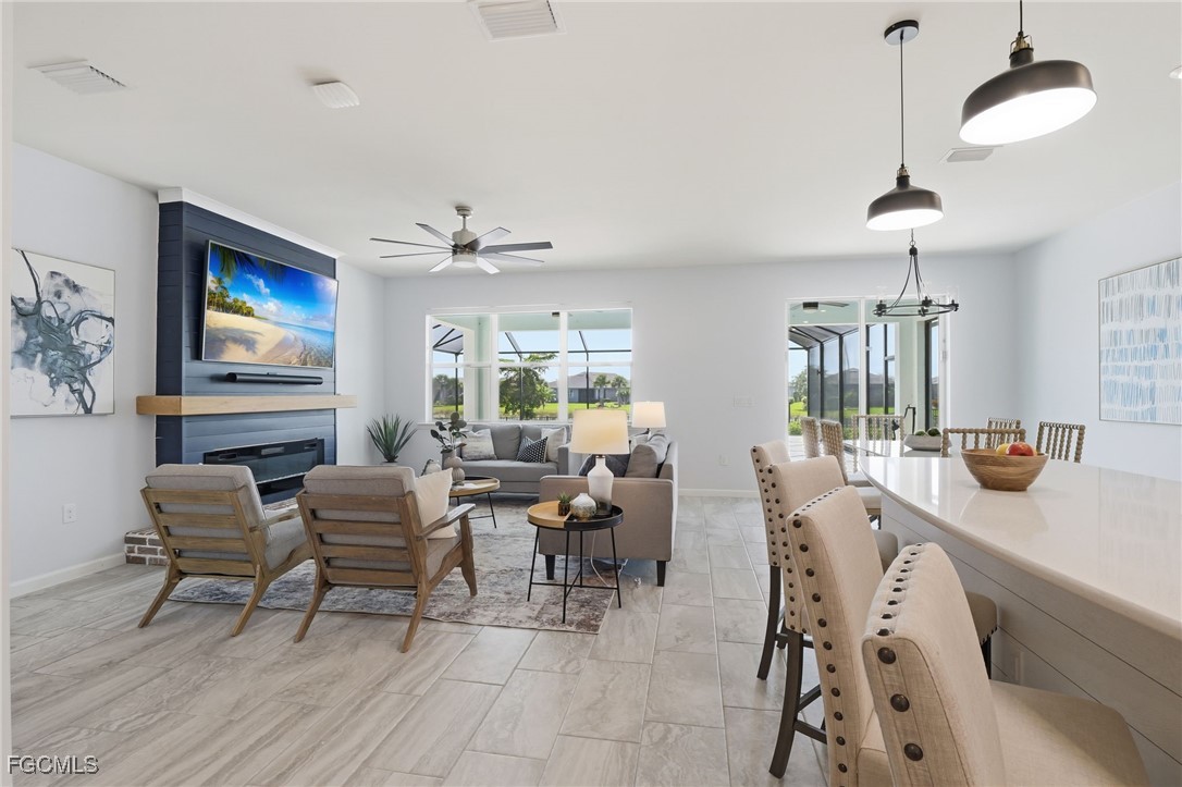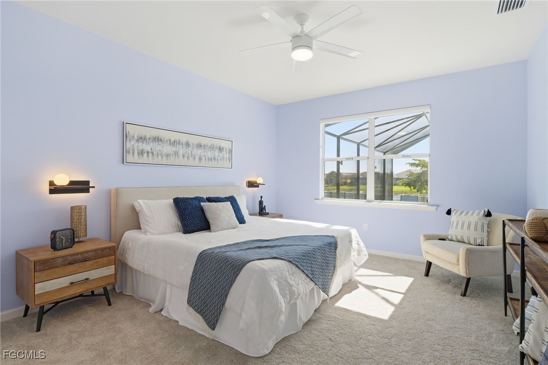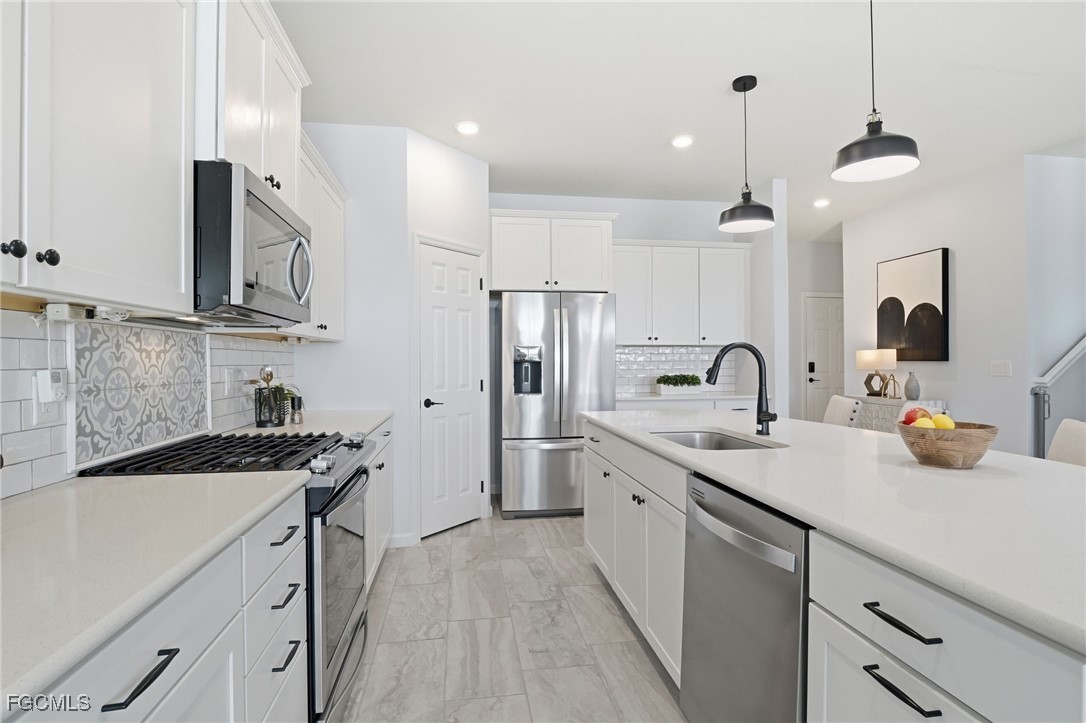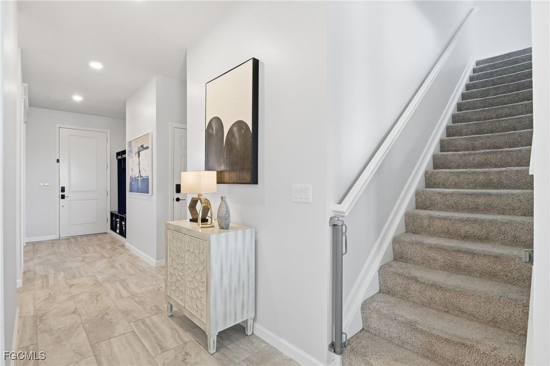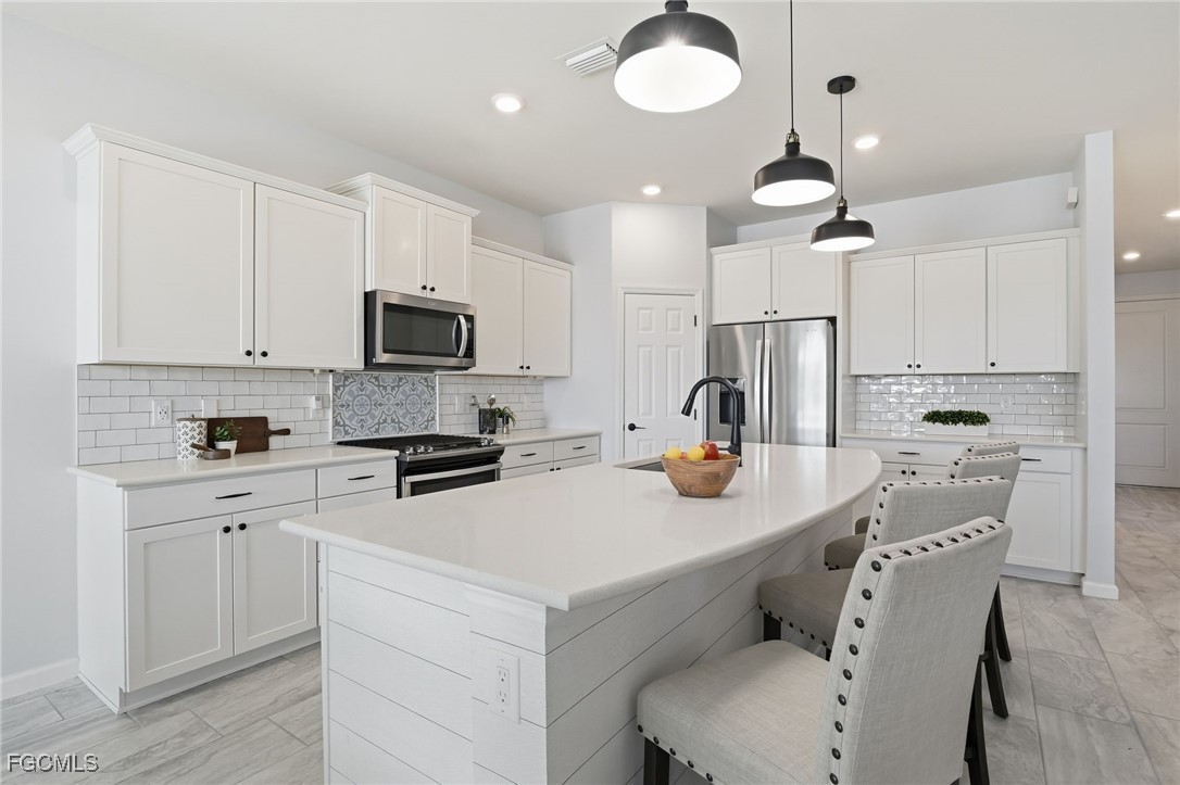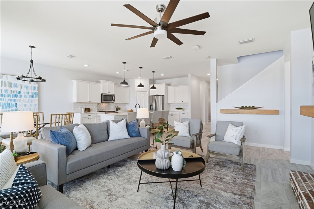 When you enter this stunning Pulte-built Citrus Grove home, featuring four bedrooms and an owner's suite on the main floor, plus a den and loft overlooking the lake, you'll feel right at home! Located at the end of a cul-de-sac. Enjoy beautiful southwest sunset views. Immerse yourself in the luxury of a custom-designed pool featuring a soothing hot tub, a spacious sunshelf perfect for lounging, and intricate mosaic designs that add a touch of artistic elegance. This home boasts beautiful finishes, including an oversized quartz island, gas stove, corner pantry, custom drop zone for shoes and bags, high-end woodwork in the den, a custom fireplace, a tile backsplash, upgraded appliances, and additional upgrades that set this home apart. The downstairs owner's suite has double sinks, a large walk-in custom closet, and a spacious shower with a glass barn door, making it a perfect retreat, while three more bedrooms and a loft on the second floor provide comfort for family or guests. This well-designed home perfectly combines luxury, convenience, and waterfront living. The two-car garage has an epoxy floor and overhead storage. You are conveniently located within walking distance to Founders Square and Telegraph Park, where you can enjoy Food Truck Fridays with live music or Farmer Market Sundays. Babcock Ranch is the first solar-powered town, offers a welcoming community and beautiful nature, and features modern technology, ranking among the top 50 places to live in the United States.