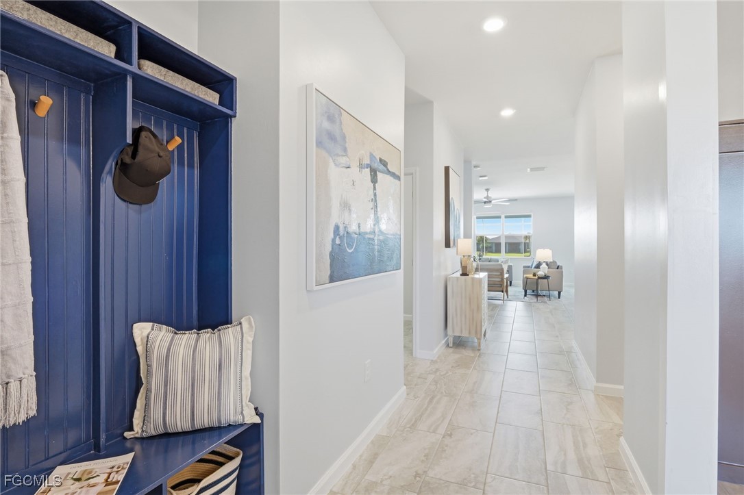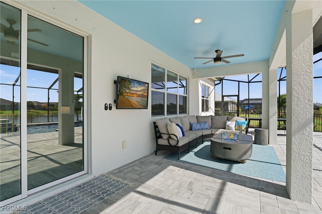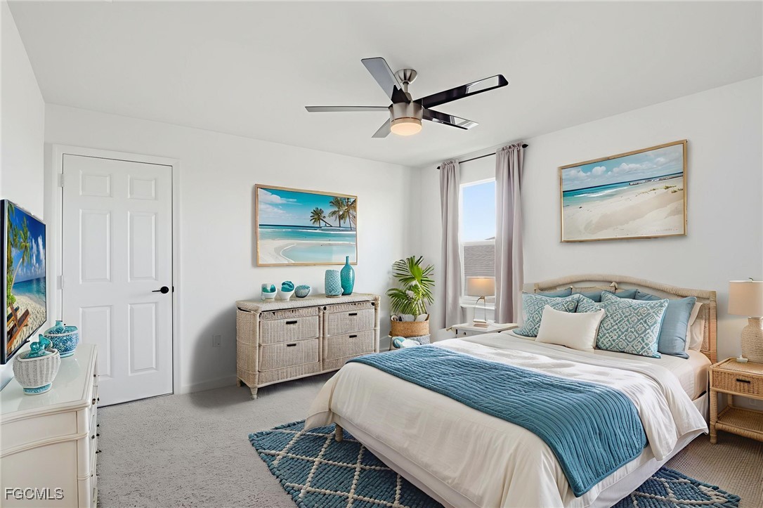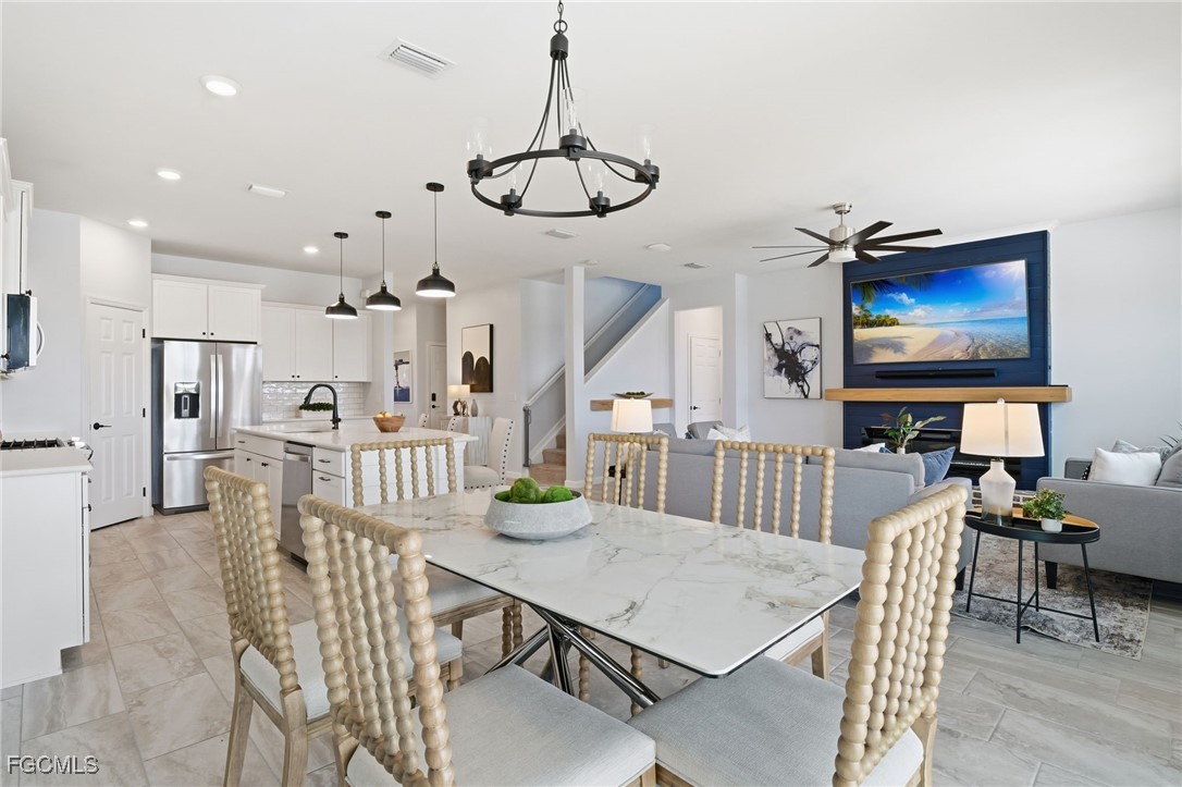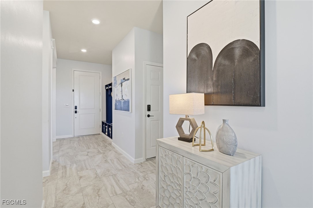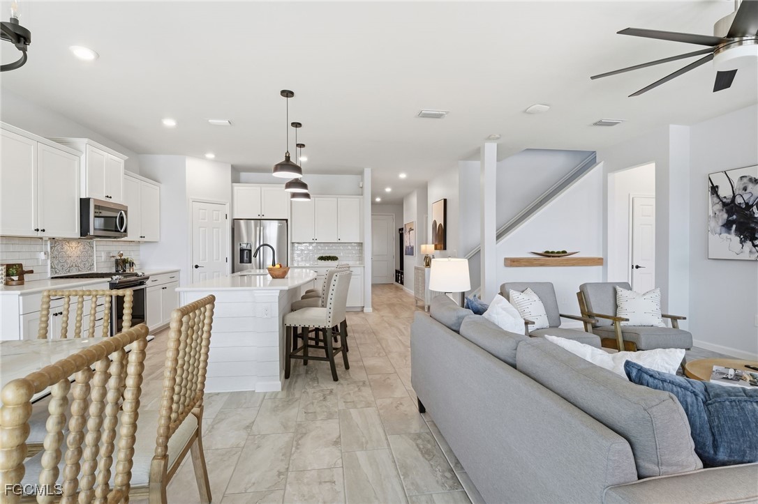 When you enter this stunning Pulte-built Citrus Grove home, featuring four bedrooms and an owner's suite on the main floor, plus a den and loft overlooking the lake, you'll feel right at home! Located at the end of a cul-de-sac. Enjoy beautiful southwest sunset views. Immerse yourself in the luxury of a custom-designed pool featuring a soothing hot tub, a spacious sunshelf perfect for lounging, and intricate mosaic designs that add a touch of artistic elegance. This home boasts beautiful finishes, including an oversized quartz island, gas stove, corner pantry, custom drop zone for shoes and bags, high-end woodwork in the den, a custom fireplace, a tile backsplash, upgraded appliances, and additional upgrades that set this home apart. The downstairs owner's suite has double sinks, a large walk-in custom closet, and a spacious shower with a glass barn door, making it a perfect retreat, while three more bedrooms and a loft on the second floor provide comfort for family or guests. This well-designed home perfectly combines luxury, convenience, and waterfront living. The two-car garage has an epoxy floor and overhead storage. You are conveniently located within walking distance to Founders Square and Telegraph Park, where you can enjoy Food Truck Fridays with live music or Farmer Market Sundays. Babcock Ranch is the first solar-powered town, offers a welcoming community and beautiful nature, and features modern technology, ranking among the top 50 places to live in the United States.
