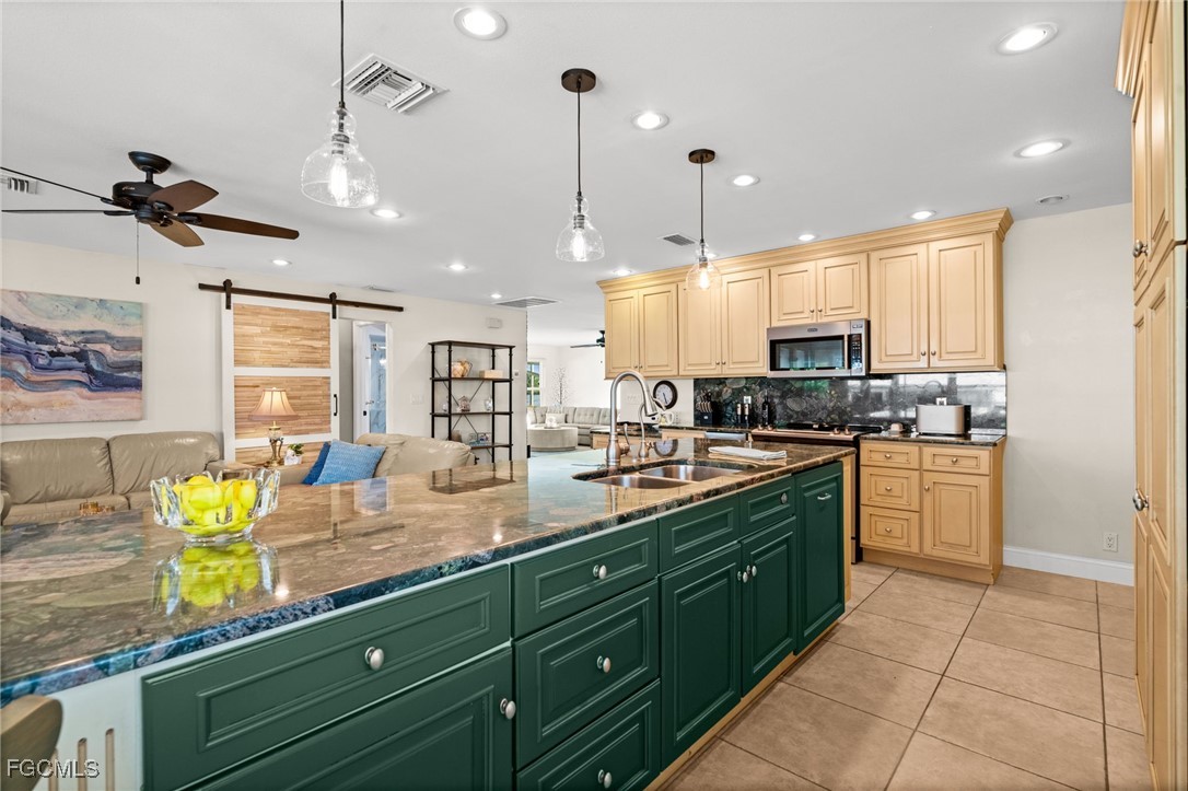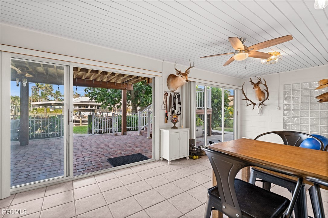 Coastal Chic Island Retreat with Quick Deep-Water Access -- Step into effortless island living at this beautifully updated coastal retreat, where sparkling water views and relaxed elegance define every detail. Perfectly positioned for both tranquility and adventure, this stilted home offers quick deep-water access to Pine Island Sound — with the world-famous beaches of Sanibel, Captiva, Cayo Costa, and Boca Grande just a short boat ride away. Upstairs, light-filled open spaces connect the kitchen, dining, and living areas, creating an inviting flow ideal for entertaining after a day on the water. The kitchen shines with raised wood cabinetry, granite countertops, and stainless-steel appliances — a perfect blend of style and function. French doors open from the family room to a bayfront balcony where you can savor sunset skies, while the back balcony overlooks a peaceful canal. Two spacious primary suites provide private retreats, each featuring walk-in closets, Walk in showers with multiple shower heads, and custom vanities with granite countertops. Downstairs, a full one-bedroom guest suite offers flexible space for family, in-laws, or rental income, complete with a sitting area and private bath. Enjoy the coastal breeze from the covered patio or relax in the fully fenced backyard, complete with fruit trees and plenty of room to add a pool. Additional highlights include a 2-car garage with workshop, Hardie board siding, a new 2023 metal roof, CBS block construction on the lower level, impact windows and doors (upper level), new AC (2023), a new seawall 2015, and whole-house repipe 2016. The 7K boat lift with roof and captain’s walk dock make boating effortless, while space for RV or trailer parking adds convenience. Nestled in a golf cart–friendly community, this home perfectly blends coastal charm with modern comfort — your island escape awaits.
