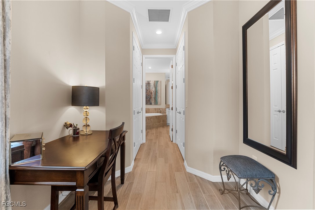 Even the garage has been elevated far beyond builder standard. Features include: A newly installed built-in storage wall system, Custom workbench area, Overhead safe-rack storage, Epoxy flooring for a clean, polished look and a garage refrigerator.
