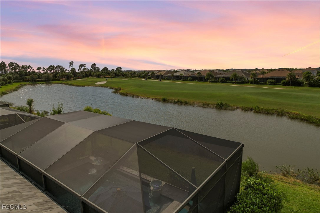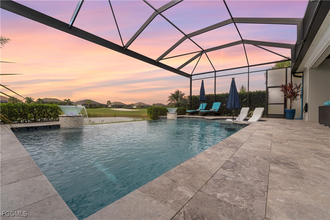 Welcome to one of the most breathtaking GOLF DEEDED homes with a CUSTOM heated saltwater infinity-edge pool and cascading water that blends seamlessly into the serene lake, showcasing an unobstructed lake & golf view on the 12th hole with NO CART PATH behind the property, ensuring serene privacy and postcard-perfect sunsets every evening. THIS HOME HAS $225,000 in custom upgrades, this residence blends refined interior selections, standout architectural features, and an extraordinary resort-style outdoor living experience that truly sets it apart from ANYTHING ELSE ON THE MARKET. Designed for those who crave LUXURY outdoor living, the expansive west-facing pool retreat was expertly crafted to highlight mesmerizing water and golf views while capturing every glowing sunset over the pond.