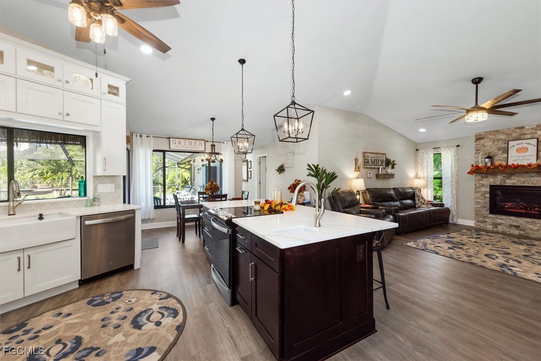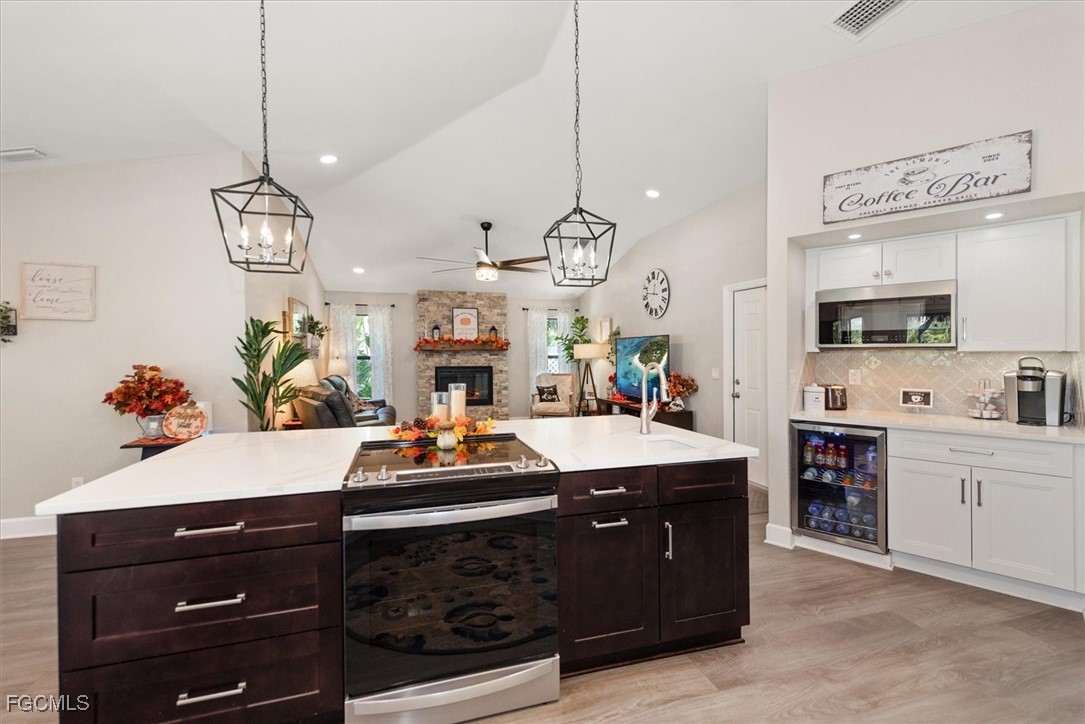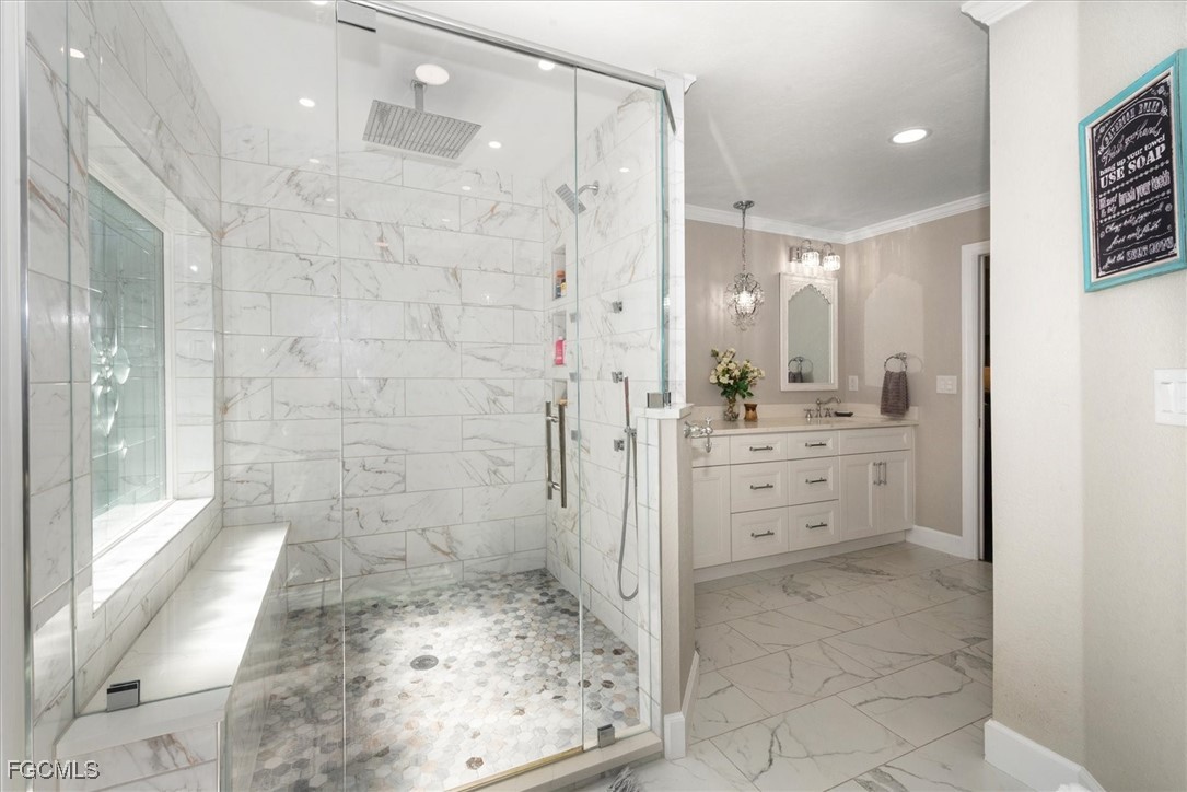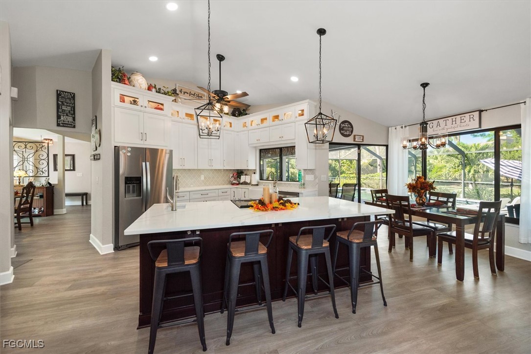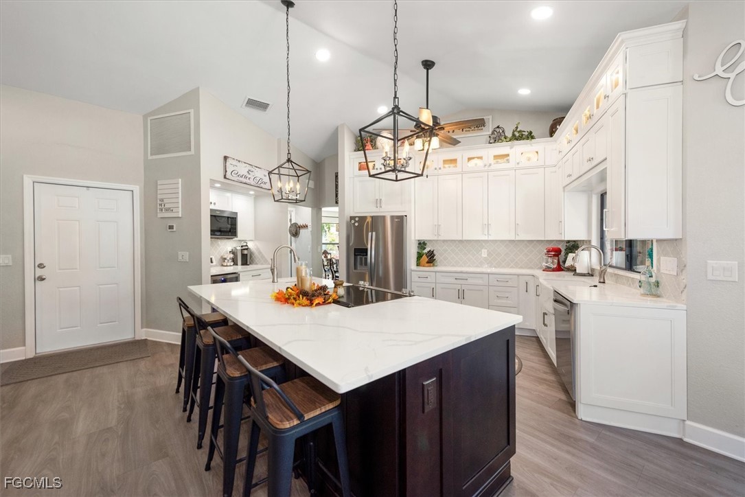 Welcome to McGregor Woods! This highly desirable neighborhood offers an exceptional location, large spacious lots, and a charming atmosphere that sets it apart from many other communities. Its setting evokes the classic Florida lifestyle, featuring streets lined with old growth oaks and native Florida landscaping. This functional split bedroom floor plan featuring 4 beds/2 bath has a natural flow with lots of natural light, views of the sparkling pool from all main living areas, vaulted ceilings and family/formal dining room. The chef will love the newly updated 2023 island kitchen featuring quartz countertops, custom cabinetry, 2 wash sinks, whirlpool stainless appliances, wine fridge & coffee bar. Enjoy the fun and sun pool side in your heated pool surrounded by luscious private landscaping. The spacious newly brick paved lanai and recently resurfaced and retiled pool has a newly added sun shelf and new pool pump. Luxurious master suite features and ensuite bath with large walk in shower with rain head and multiple shower heads, automatic lighted mirrors, soaking tub and private atrium room. Additional upgrades in 2023 include new A/C, New duct work, electrical upgraded to 50 amp service , hot water heater, luxury vinyl plank flooring throughout, new brick paved driveway, new light fixtures and hardware throughout, new interior doors, updated spare bath and much more! A must see