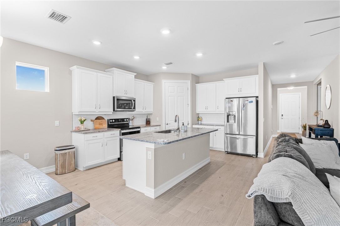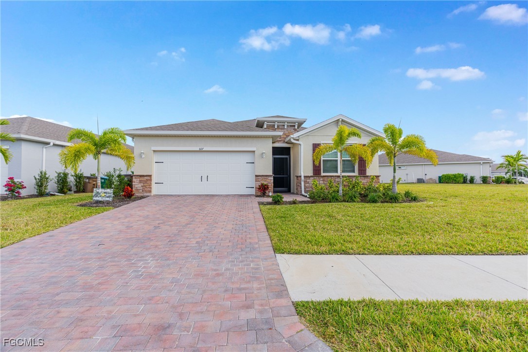 4-bedroom, 2-bath home in Stonewater Community with lakefront views, screened lanai, open floor plan, high ceilings, tile floors in main areas, and carpeted bedrooms. The kitchen features granite countertops and a breakfast bar, while the primary suite offers a walk-in closet, dual sinks, and a large shower. Located on a quiet cul-de-sac in NW Cape Coral near the Pine Island corridor, the community includes a pool, fitness center, playground, and tennis/pickleball courts. Small dogs only - no cats. The home is owner-occupied until January 1st. All appointments must be scheduled in advance. Saturday evenings, Sundays (anytime), and Mondays work best. Please do not walk the property unannounced.