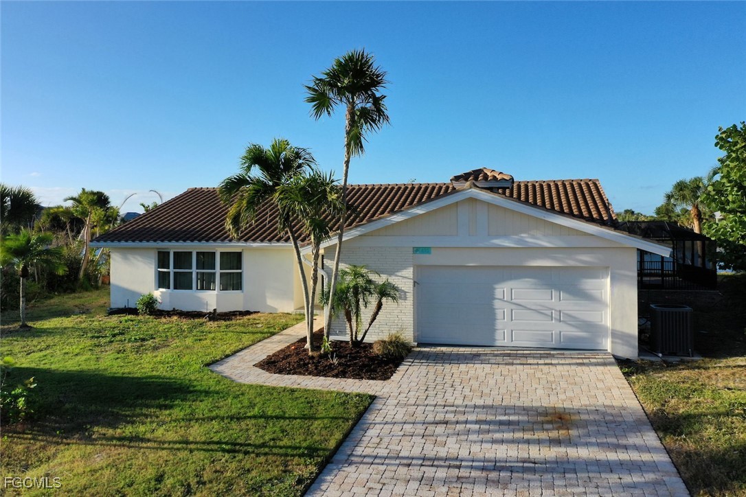 The outdoor area is equally inviting, featuring a screened lanai and sparkling pool—perfect for entertaining or unwinding. The two-car garage adds convenience, offering ample storage space for your beach equipment.