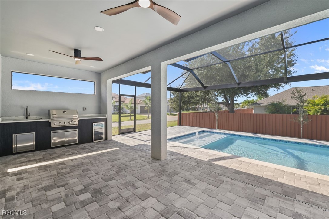 Experience refined living with a private screened pool, outdoor kitchen, and 3-car garage in this modern luxury Cape Coral home located near the highly anticipated Seven Islands Waterfront Community, soon to feature marinas, parks, dining, and resort-style amenities. ***NO FLOOD INSURANCE NEEDED***
