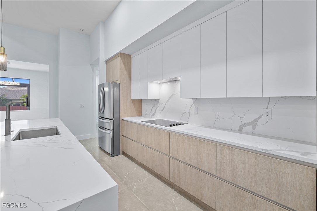 This new construction residence offers 4 bedrooms, 3 baths, 2,420 sq. ft., a 16-ft foyer, wood-beam accents, and an open layout with elegant Spanish porcelain tile throughout. The chef-inspired kitchen showcases quartz countertops, custom cabinetry, stainless steel appliances, and a dedicated wine closet.
