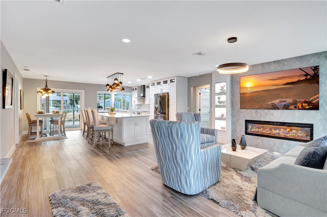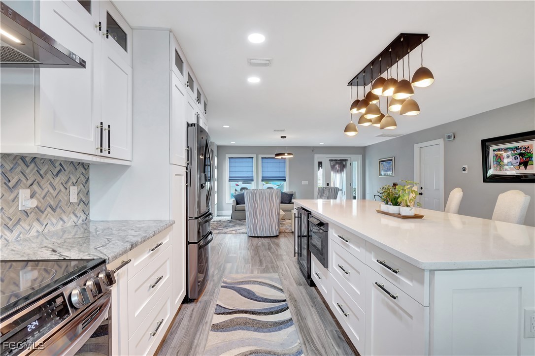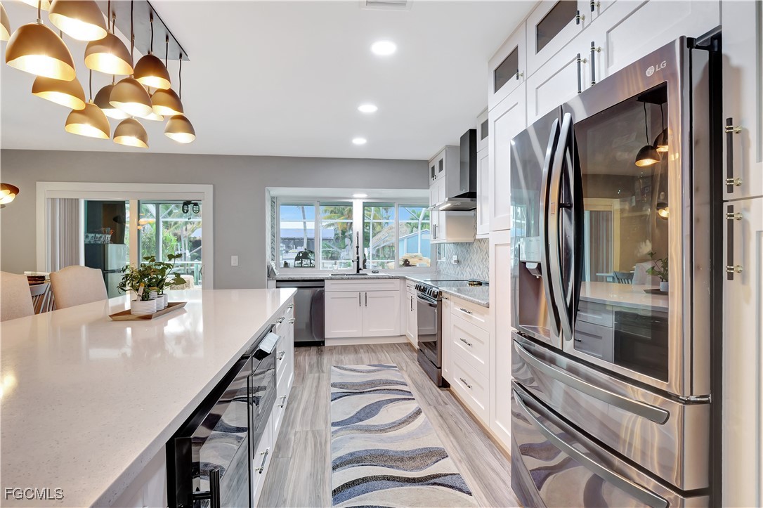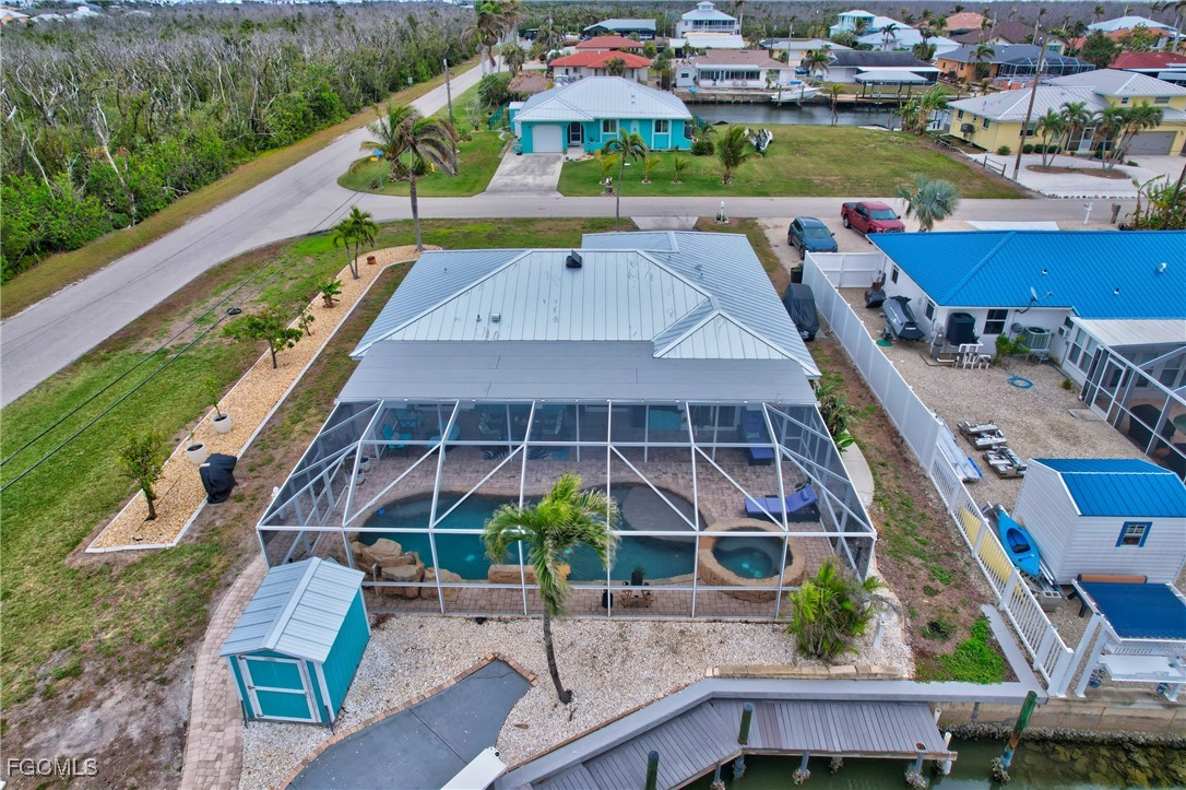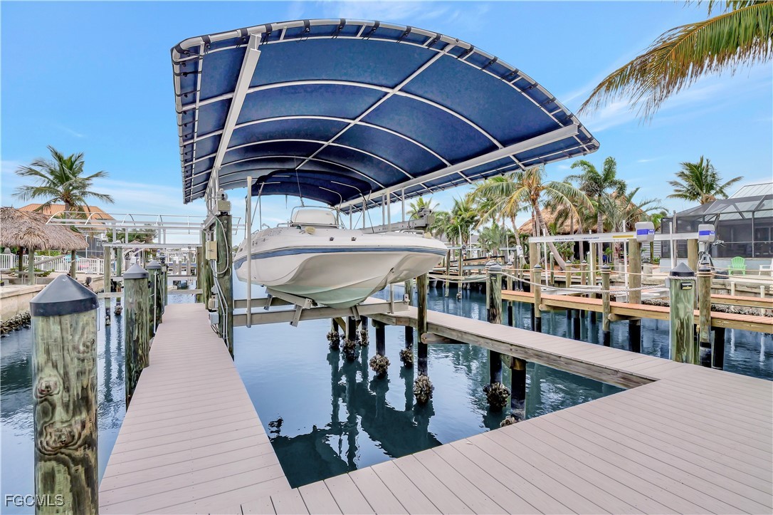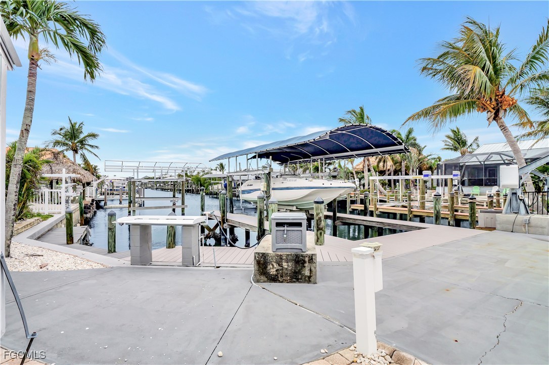 Just the perfect latitude for your new island attitude. This stunning gulf access home was completely remodeled in 2023. As you head in, the custom tile wall with inlay shelves and built-in electric fireplace sets the tone of style and island luxury. It doesn’t stop there…the custom kitchen with stainless appliances and oversized island provides plenty of space for cooking and entertaining. The split floor plan gives the primary bedroom space and privacy, while the two guest bedrooms sit on the other side of the home. Both the primary and second bathroom have been stylishly tiled and decorated, with even the little touches attended to. The luxury doesn’t end inside. Just steps away from the kitchen is the custom spa and pool with a swim-up bar and gorgeous waterfall feature. This home offers an incredible outdoor space. The Captain's walk dock has a 10000# lift and you can be in open waters in just a matter of minutes. This home has all new upgrades, all new wiring, all new plumbing, and all it needs is new owners!