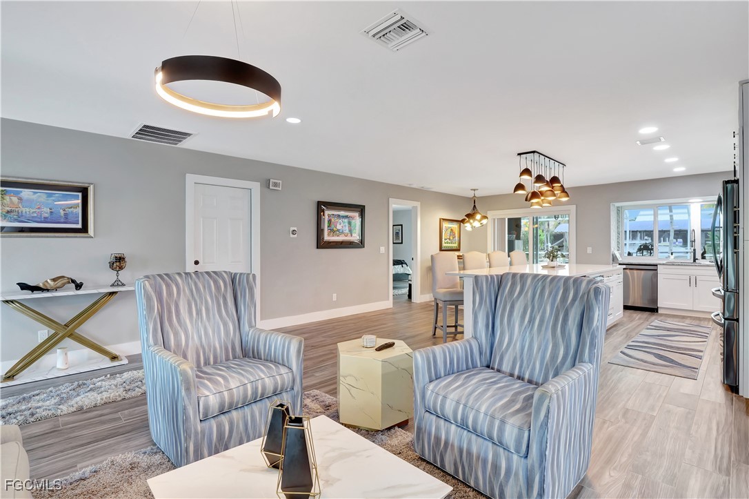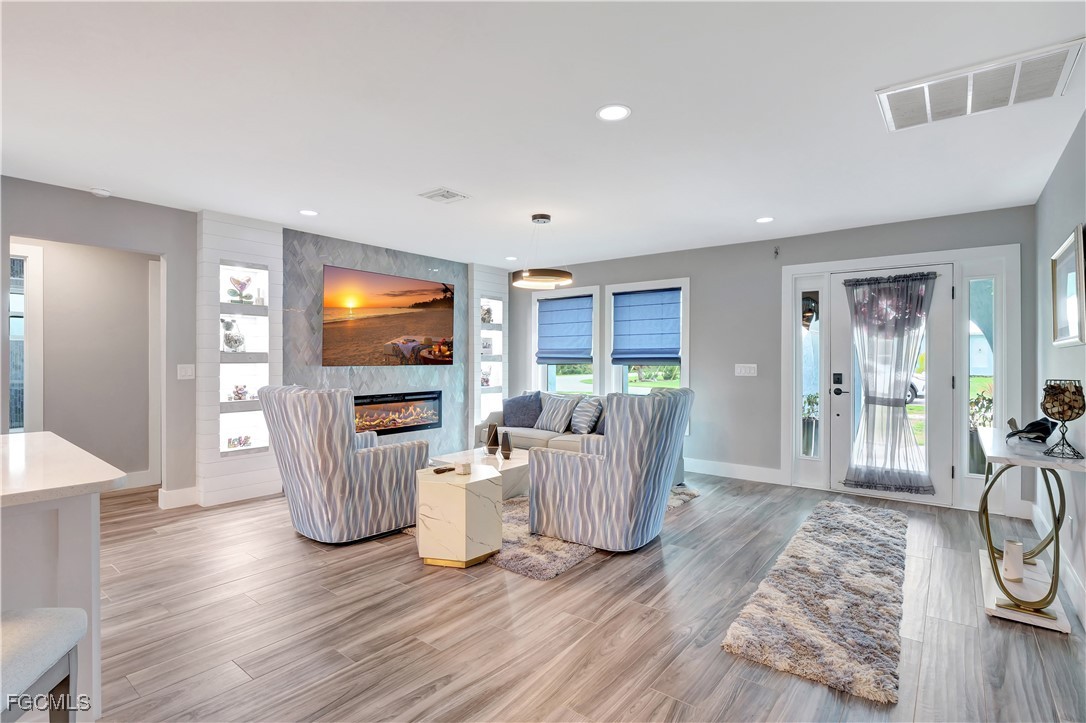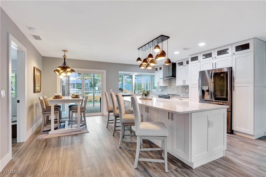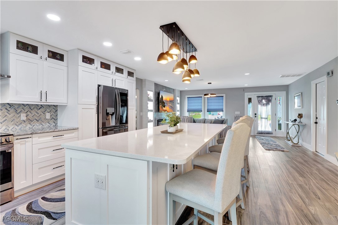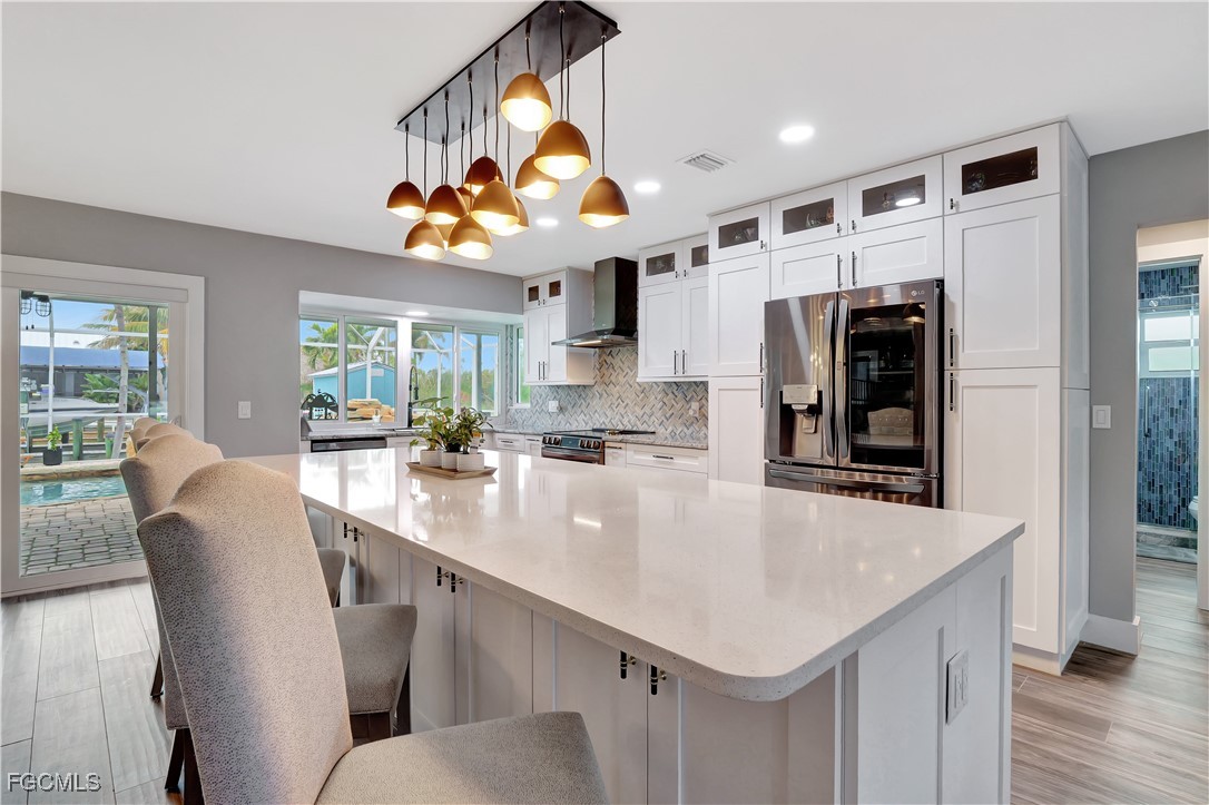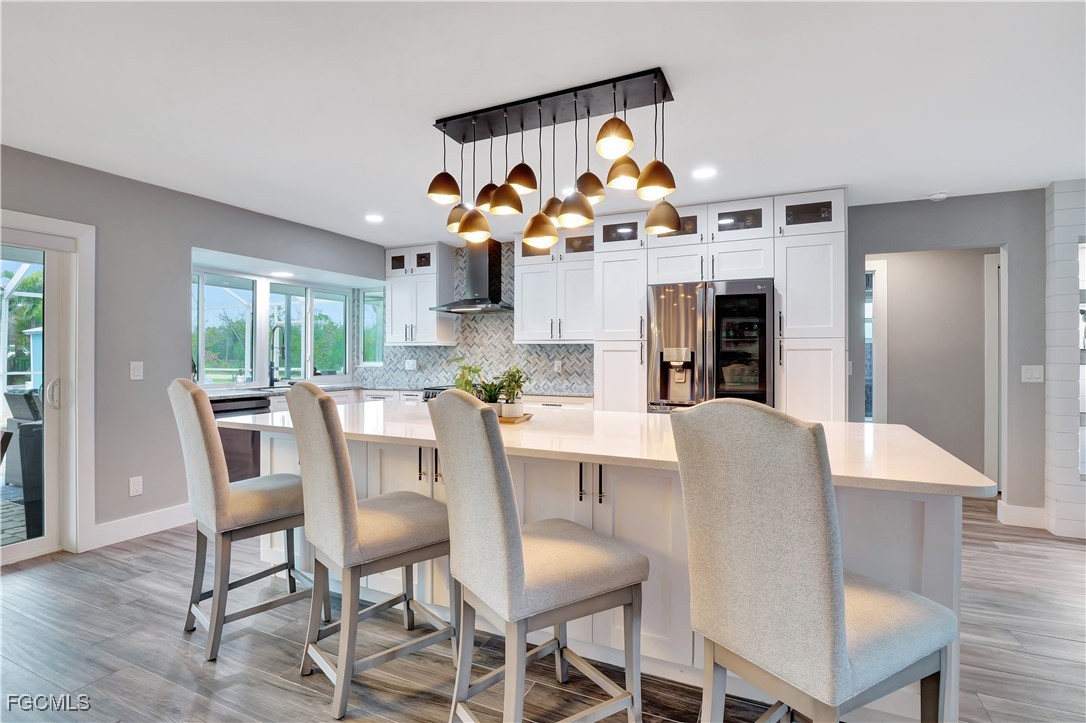 Just the perfect latitude for your new island attitude. This stunning gulf access home was completely remodeled in 2023. As you head in, the custom tile wall with inlay shelves and built-in electric fireplace sets the tone of style and island luxury. It doesn’t stop there…the custom kitchen with stainless appliances and oversized island provides plenty of space for cooking and entertaining. The split floor plan gives the primary bedroom space and privacy, while the two guest bedrooms sit on the other side of the home. Both the primary and second bathroom have been stylishly tiled and decorated, with even the little touches attended to. The luxury doesn’t end inside. Just steps away from the kitchen is the custom spa and pool with a swim-up bar and gorgeous waterfall feature. This home offers an incredible outdoor space. The Captain's walk dock has a 10000# lift and you can be in open waters in just a matter of minutes. This home has all new upgrades, all new wiring, all new plumbing, and all it needs is new owners!