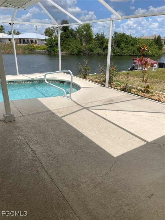 Fabulous water front pool home with an incredible view straight through to the very large lanai. There is plenty of room for a seating area, a dining table, and still space to lounge around the pool. There is 80 feet of waterfront with a concrete seawall and miles of canal. Enjoy boating, fishing, and gorgeous sunsets right from your backyard! This home has many new upgrades. this home has impact windows, or electric shutters for all windows. The great Room has beautiful tray ceilings. Relax on the lanai or down on the dock and fish on the peaceful canal.