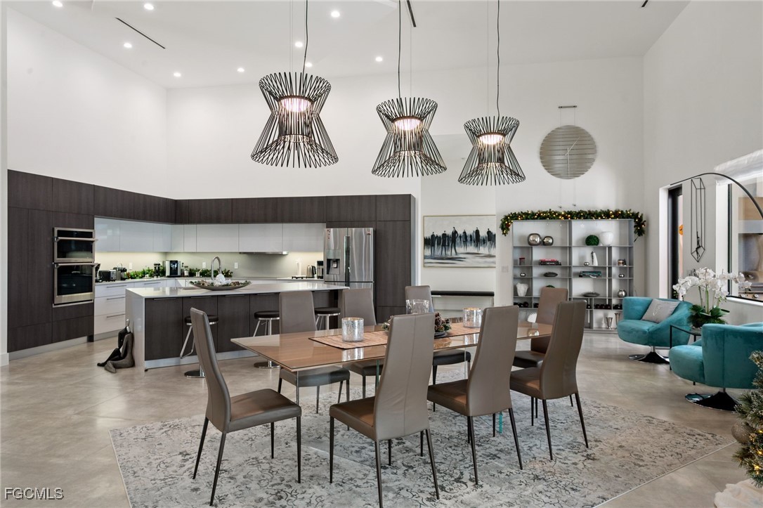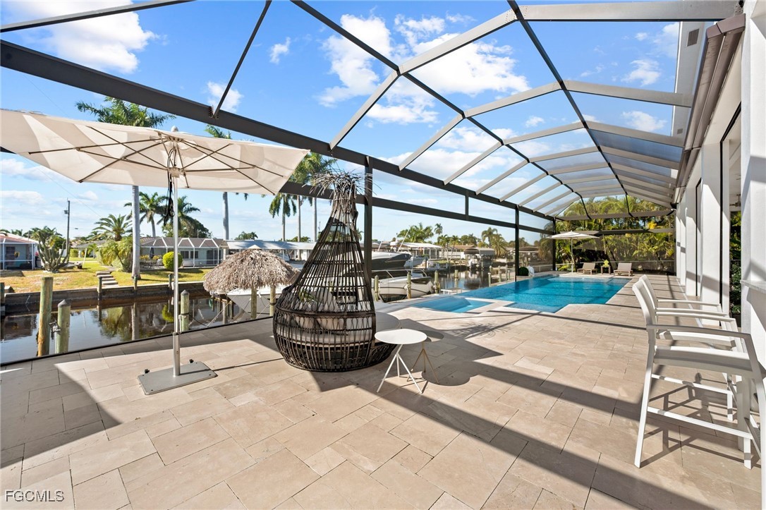 Ultra-Luxury, custom built, DIRECT GULF ACCESS pool Home. Private DOCK can accommodate a yacht, sailboat, providing effortless access, No bridges, no delays, just waterfront freedom. 4,349 Sq. ft., 3 Bedrooms, multiple en suites, Den/Office, 4 full baths including pool access & half bath. Retreat to the lavish primary suite with water views, en suite bath and attached workout room/flex space. The modern gourmet Quartz Kitchen features high-end appliances & cabinetry, an oversized island and seamless indoor/outdoor flow. Every detail of this home has been thoughtfully curated to deliver unrivaled comfort, elegance and coastal luxury. Perfectly positioned & designed for those who prefer open-concept living with 16 ft. ceilings, high-end finishes & entertaining. Impact glass throughout, electric, remote controlled shutters and custom awnings. Designer finishes, smart home features and 12-foot impact sliding glass doors throughout make this home truly one of a kind. Marble tile lines the resort-style, fully screened outdoor oasis. Enjoy a sparkling infinity-edge pool, spa, multiple lounge areas and seating with fire pit, overlooking the wide canal and stunning Western exposure sunsets. Lights will illuminate in the evening. Outdoor Granite propane-powered kitchen. Multiple A/C units, oversized, 4+ garage spaces under air & commercial grade doors. This is more than a Home. It is where modern elegance meets waterfront living. A perfectly unique design and direct water access in one of Cape Coral’s most coveted waterfront locations.