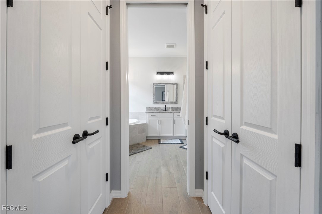 From the moment you step through the custom glass front door, the warmth and thoughtful design of the home unfold before you. The foyer leads directly to a stunning screened-in pool area featuring a tongue-and-groove ceiling, an inviting hot tub, and a full outdoor kitchen equipped with an upgraded grill, hood, TV, refrigerator and gas fireplace. Entertaining here is effortless, enhanced by an electric hurricane storm screen for peaceful enjoyment year-round.