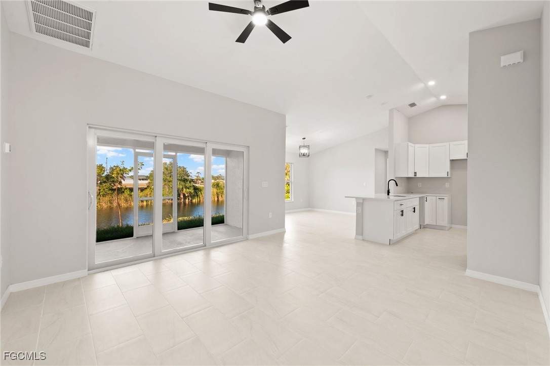 Step into this brand-new construction home in NW Cape Coral, expected to receive its Certificate of Occupancy by the end of the year. Offering 1,614 sq ft under air with 3 bedrooms, a den, and 2 bathrooms, this home sits on a peaceful canal and delivers the perfect blend of modern comfort and waterfront living. Inside, you’ll find beautiful tile throughout, soft-close cabinetry, and a thoughtfully designed split floorplan. The primary suite features his-and-hers sinks and dual closets, providing both convenience and generous storage. An open-concept layout enhances the flow of the home, while the spacious screened-in lanai offers the ideal spot to relax and enjoy the canal views. CERTIFICATE OF OCCUPANCY EXPECTED WITHIN 30 DAYS HOME IS ALSO LISTED FOR SALE UNDER2025021572