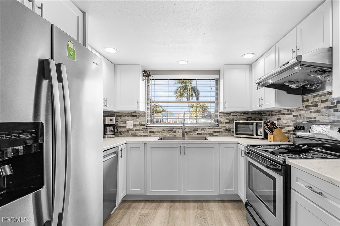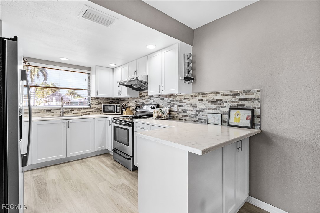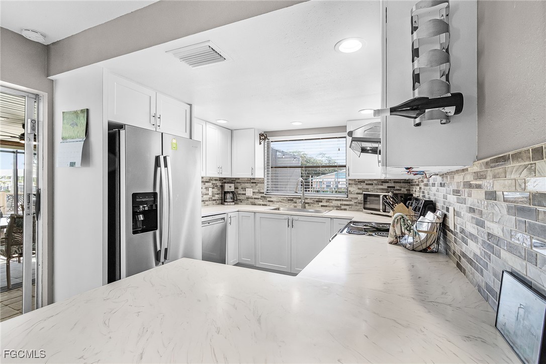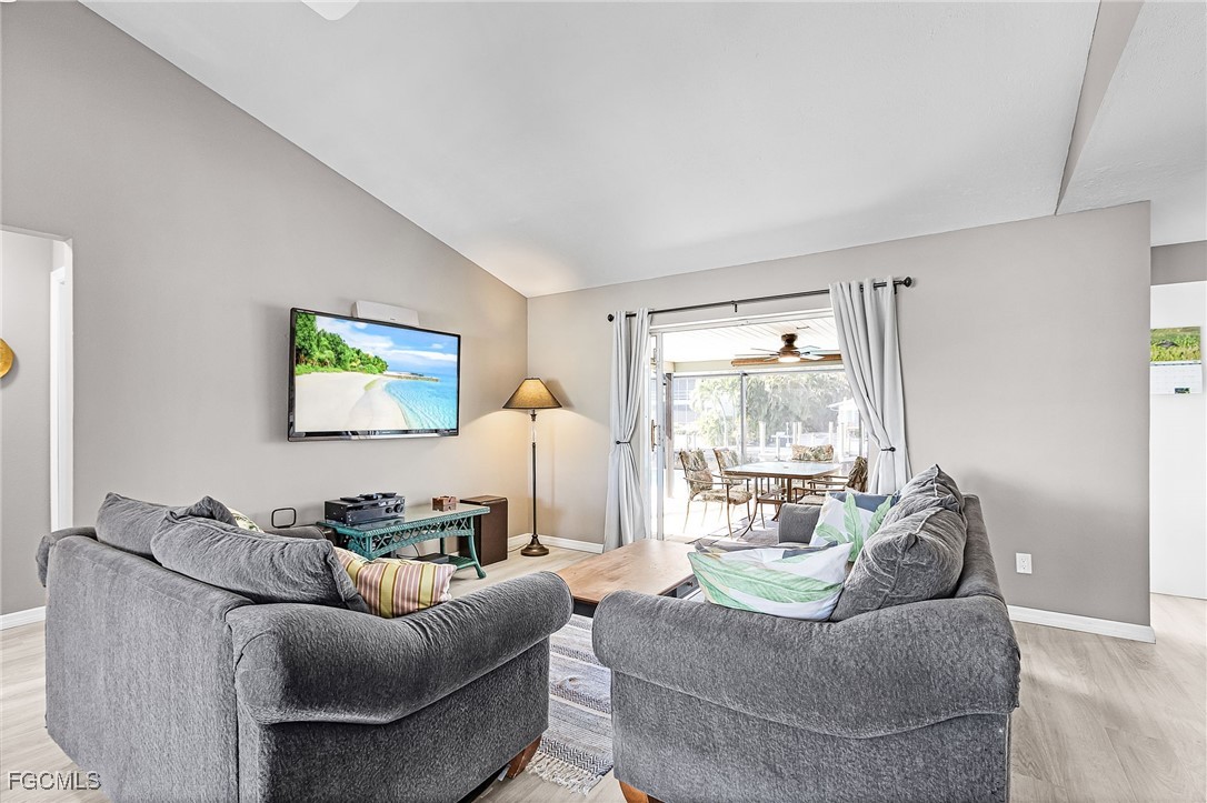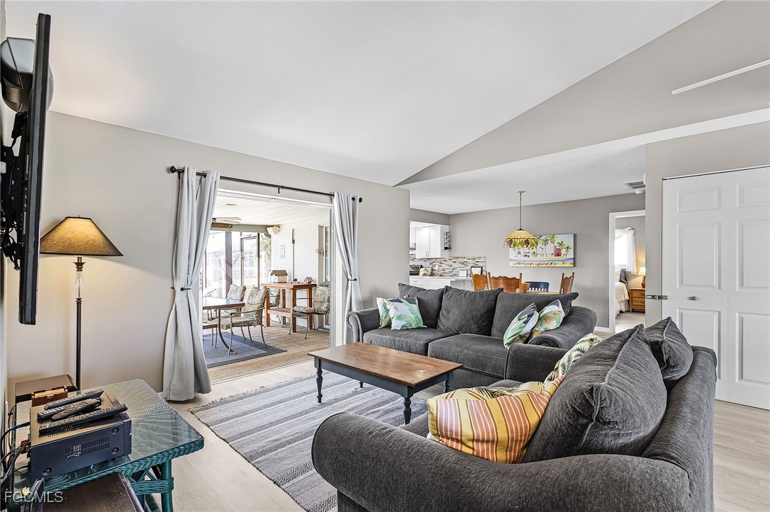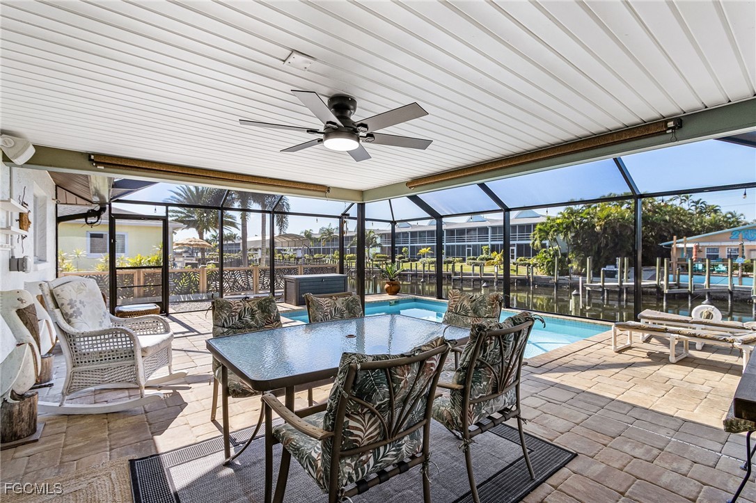 Are you tired of shoveling snow already? Then don't let this beautiful waterfront pool home with quick access to the Gulf of Mexico with no bridges or locks get away! This 3 bedroom/2 bath/2 car garage home has some furnishings that are negotiable! This home boasts: new vinyl seawall (by Honc) replaced in 2014, new screened pool in 2019, new roof in 2023, new electrical panel, new laminate flooring, no copper piping, newer almost 80' long composite dock and 7K pound lift, with water, electric and a fish cleaning station. Why wait to build, when you can move right in at closing? There is no mandatory HOA, and no restrictions, so you can leave your boat/trailer/RV next to your home. And, think of the money you will save by not having to pay for lawn maintenance with the stone yard! There are fruit trees on the property, and I hear the mangoes are delicious!