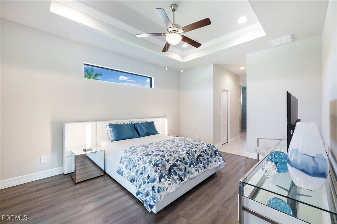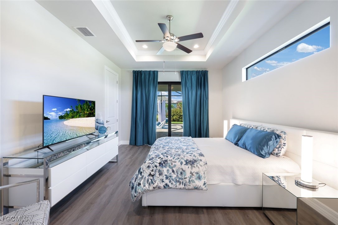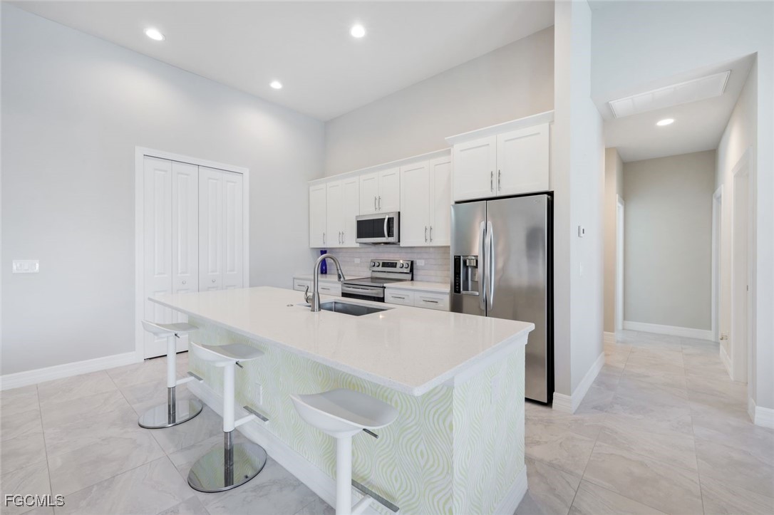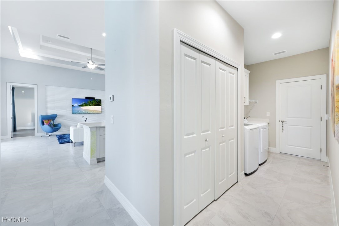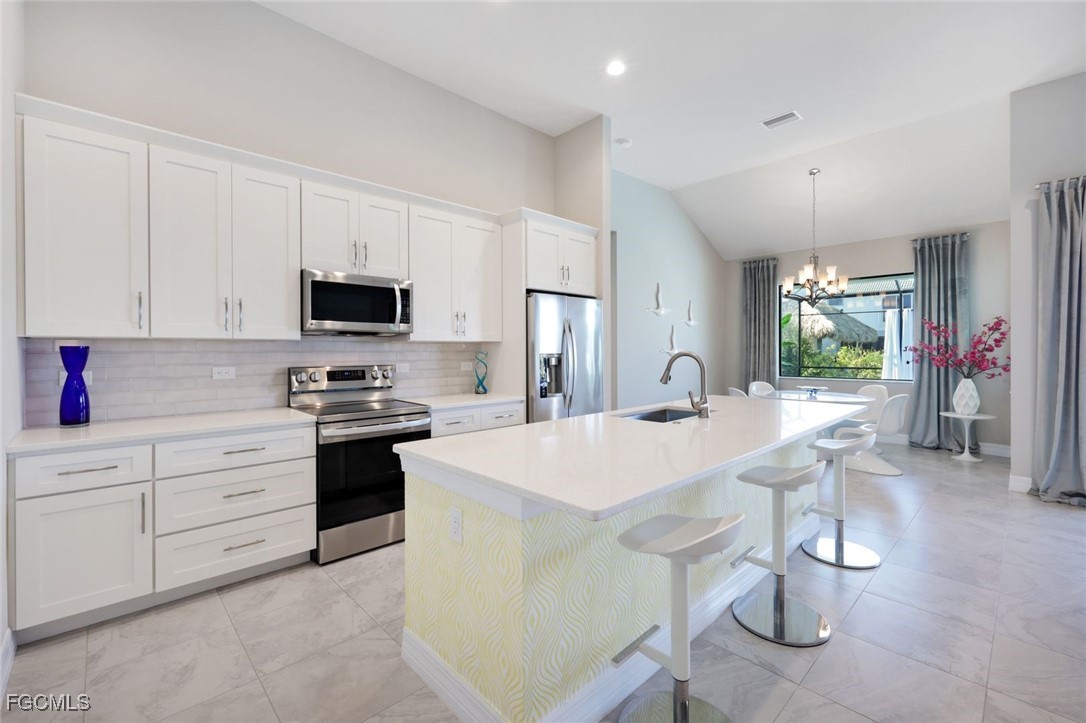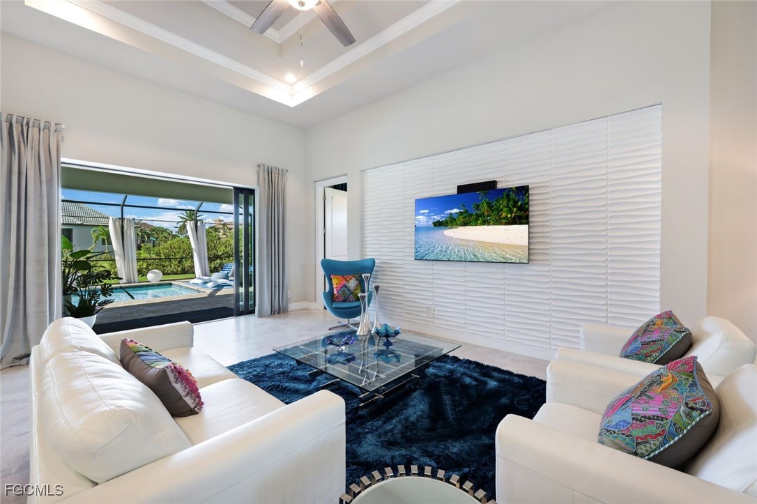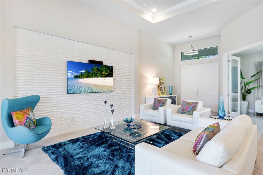 Step into luxury living w/ this stunning 2020 built residence offering an unparalleled blend of sophistication & comfort. Situated in a coveted neighborhood this meticulously crafted home boasts 3 BD +Den/2 BR just under 2000 SQ.FT. of well appointed living space. Upon entry you will be greeted by the grandeur of double entry doors into the foyer that seamlessly transitions into sun-drenched interiors & a neutral color palette creating an ambiance of warmth & sunshine! The expansive layout is accentuated by soaring double tray ceilings, oversized modern tile & 9ft pocket sliders connecting indoor & outdoor living spaces. The heart of the home awaits culinary enthusiasts w/ its quartz countertops, custom design island & ample cabinetry w/ adjacent dining area offering a picturesque backdrop for enjoying meals w/ family & friends! Retreat to the lavish oversized master suite that was updated w/ beautiful LVP flooring w/ sliders leading to the outdoor oasis. Offering a spa-like experience w/ the luxurious walk in shower, double quartz vanities & his & hers walk-in closets right at home. Step outside to your private Southern exposure outdoor sanctuary where an extended lanai w/ the oversized heated pool awaits to watch those beautiful SWFL sunsets! Entertain guests in style w/ the outdoor kitchen surrounded by lush landscaping & manicured gardens. The pool bath adds convenience & practicality to outdoor gatherings while impact windows & doors ensure peace of mind for years to come! The paved circle driveway leading to the 3 car garage provides ample parking space & curb appeal w/ an added car charging station for those w/ energy sufficient cars! Indulge in luxury living year round or as your home away from home in paradise! This property is close to downtown Cape Coral, Cape Harbour, Tarpon Pointe & world renowned beaches & restaurants! Schedule your private tour of this exceptional residence today. Don't miss the opportunity to make this modern oasis your own!