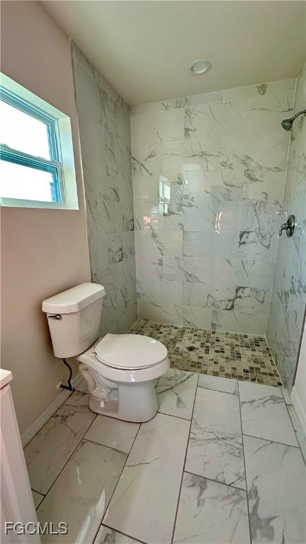 • Bright white tiled showers with a clean, modern look.